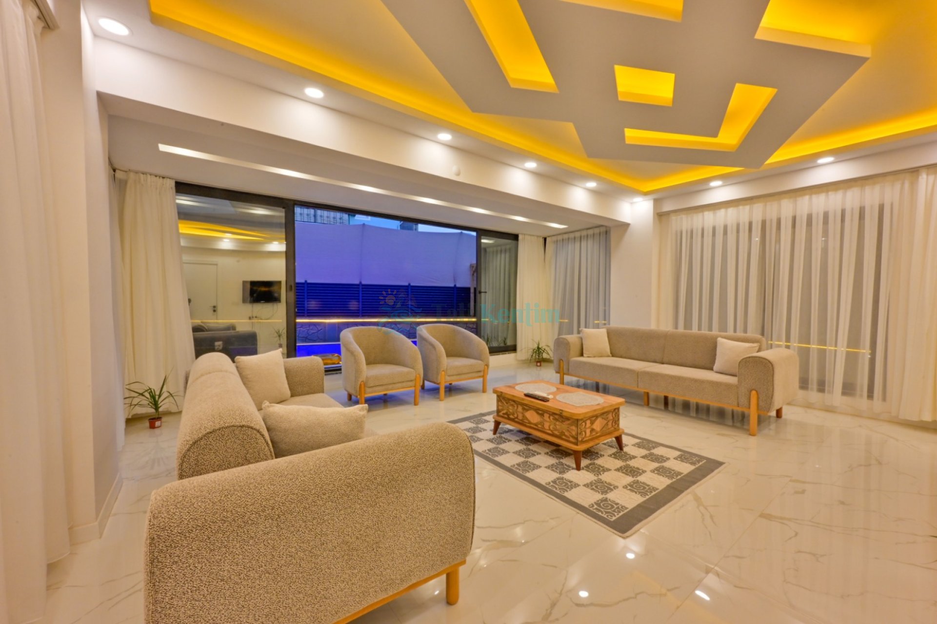 Villamızın salonu içerisinde, koltuk takımı, orta sehpa, TV, TV ünitesi, klima, uydu alıcısı yer almaktadır.