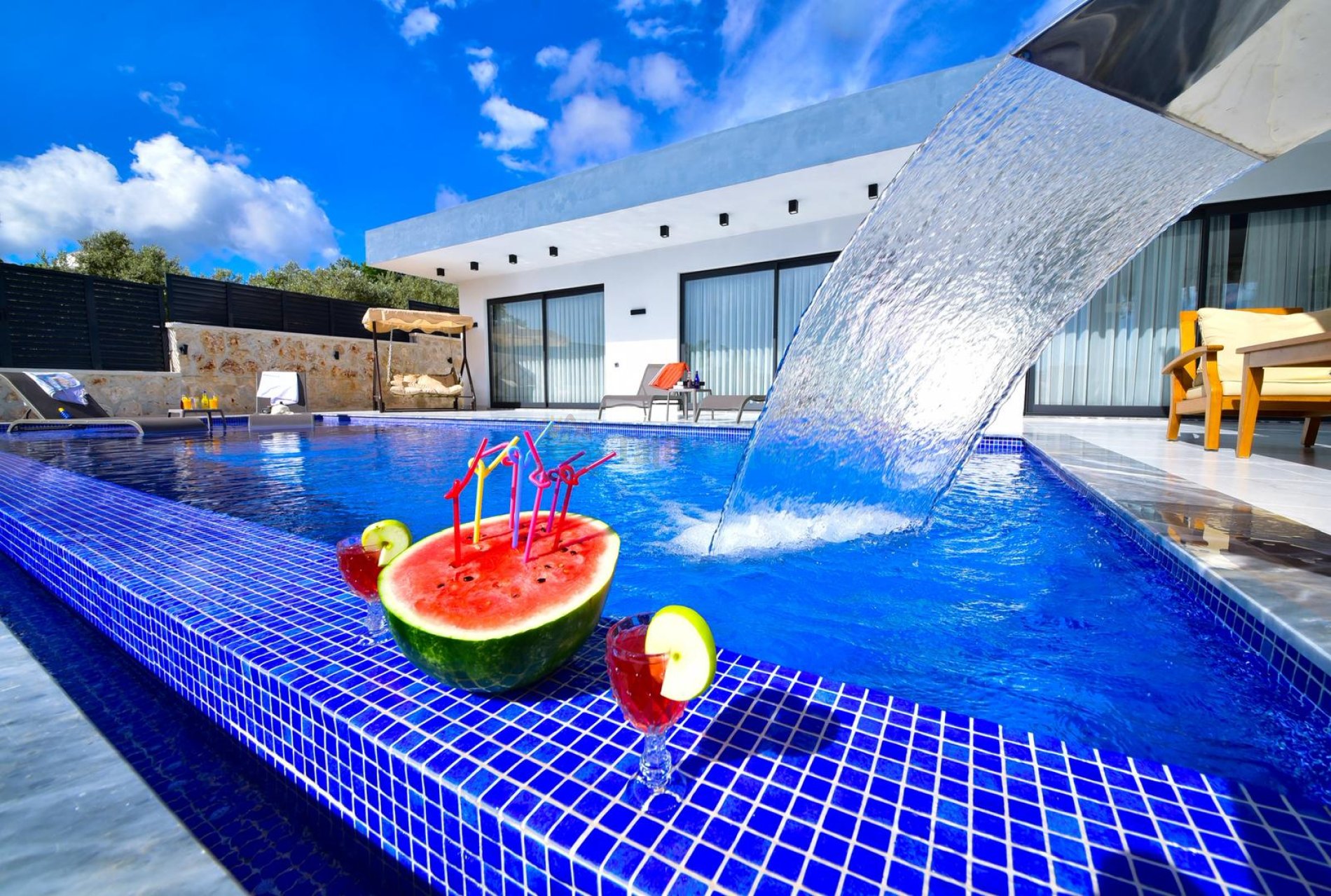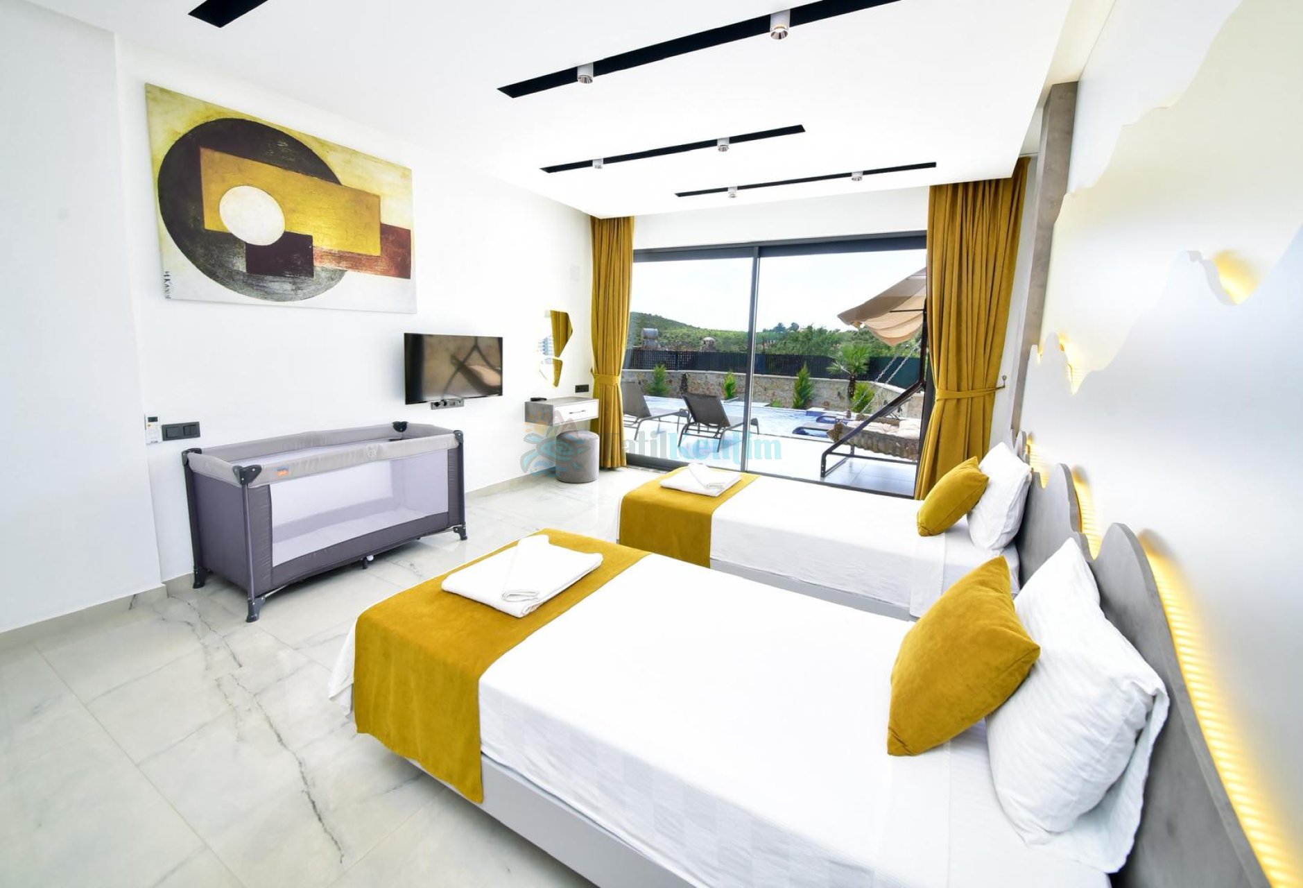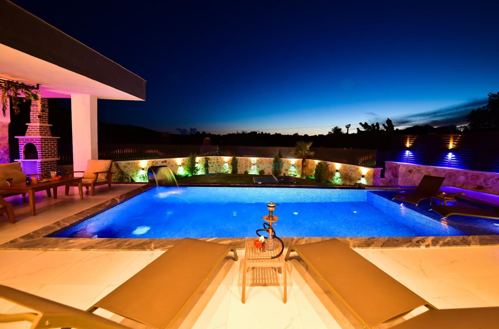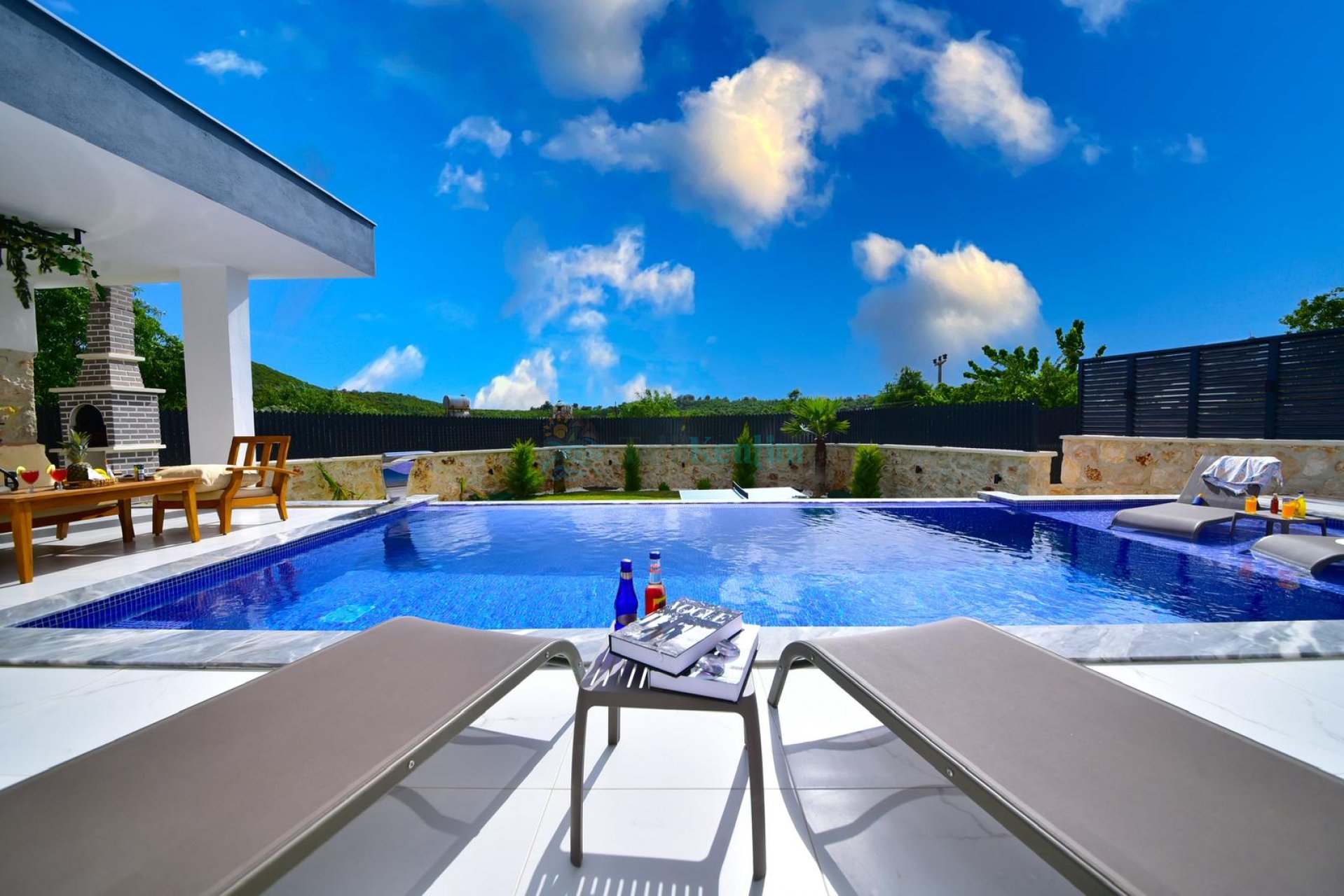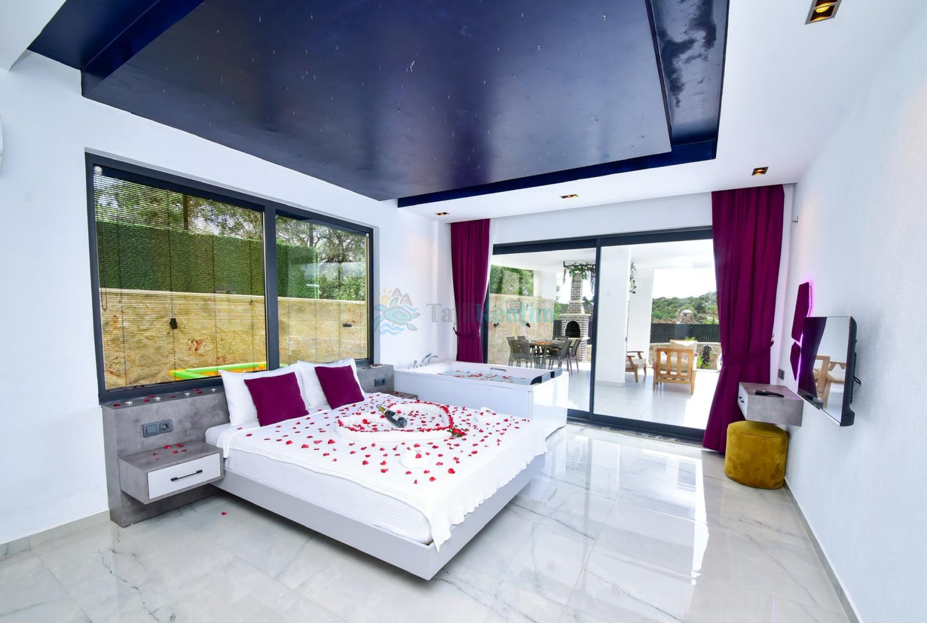 Villa Seyran Sısla, Kaş Sısla Bölgesinde, Uzaktan Deniz Manzaralı, Özel Havuzlu, Jakuzili, Korunaklı, 4 Kişilik Kiralık Tatil Villası