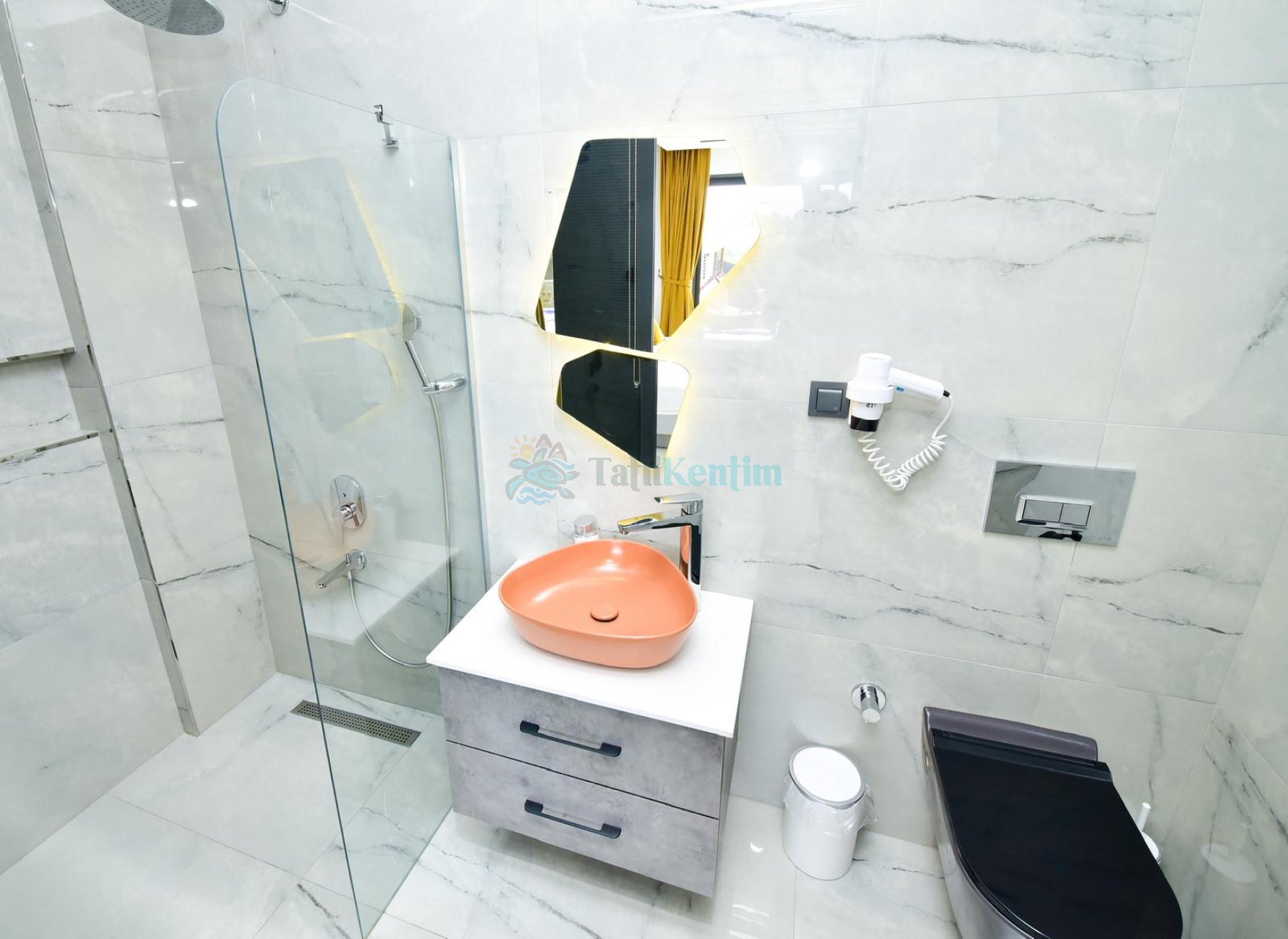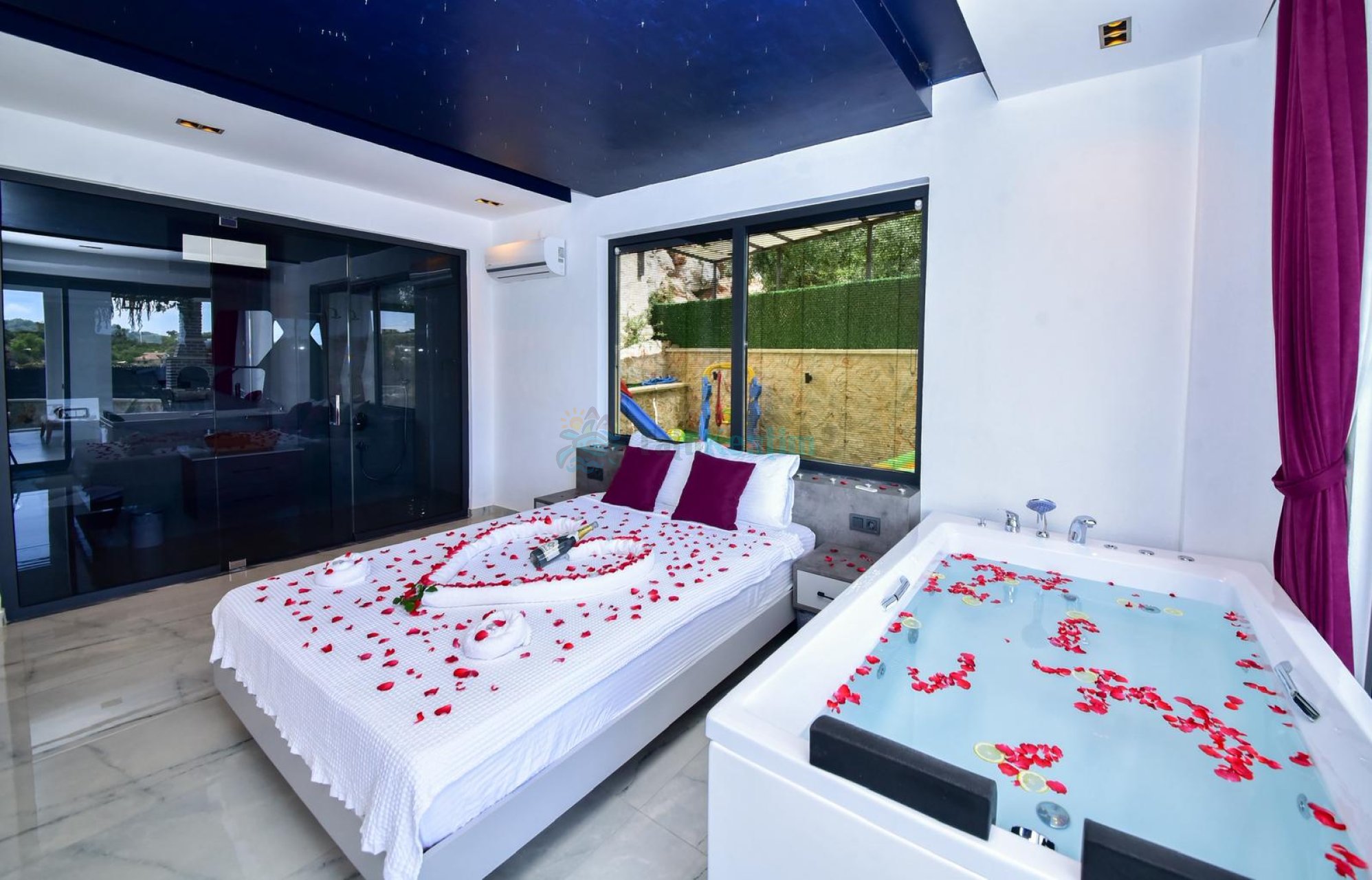 Yatak odası içerisinde, 1 adet çift kişilik yatak, klima, TV, komodin, makyaj masası, jakuzi, banyo ve tuvalet yer almaktadır.