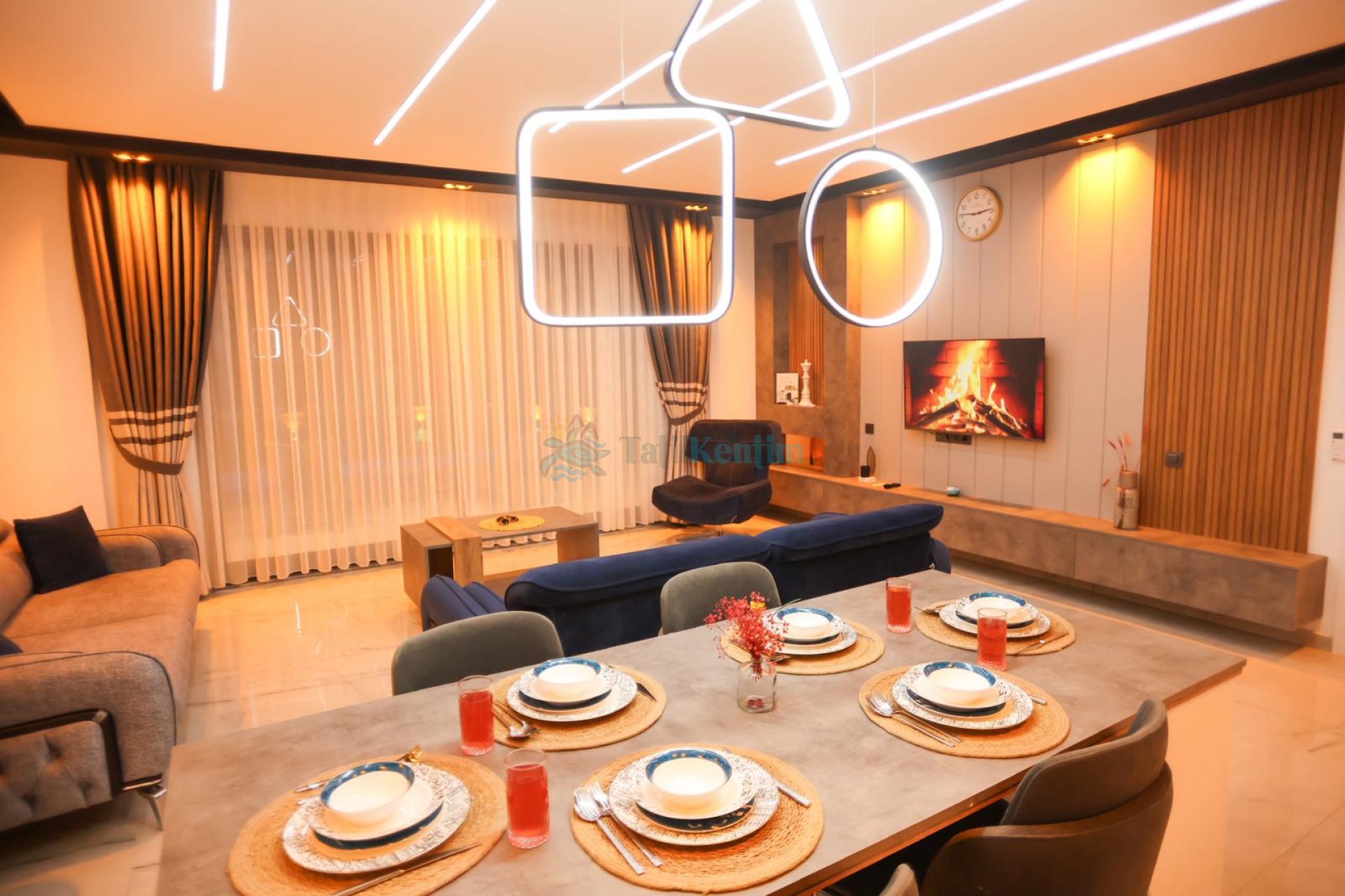 Amerikan mutfak içerisinde, buzdolabı, bulaşık makinası, yemek masası, mama sandalyesi, yemek takımı, ankastre fırın, mikrodalga fırın, tost makinası, ankastre ocak, çaydanlık, su ısıtıcısı, tava, tencere takımı ve gerekli olan tüm mutfak gereçleri yer almaktadır.