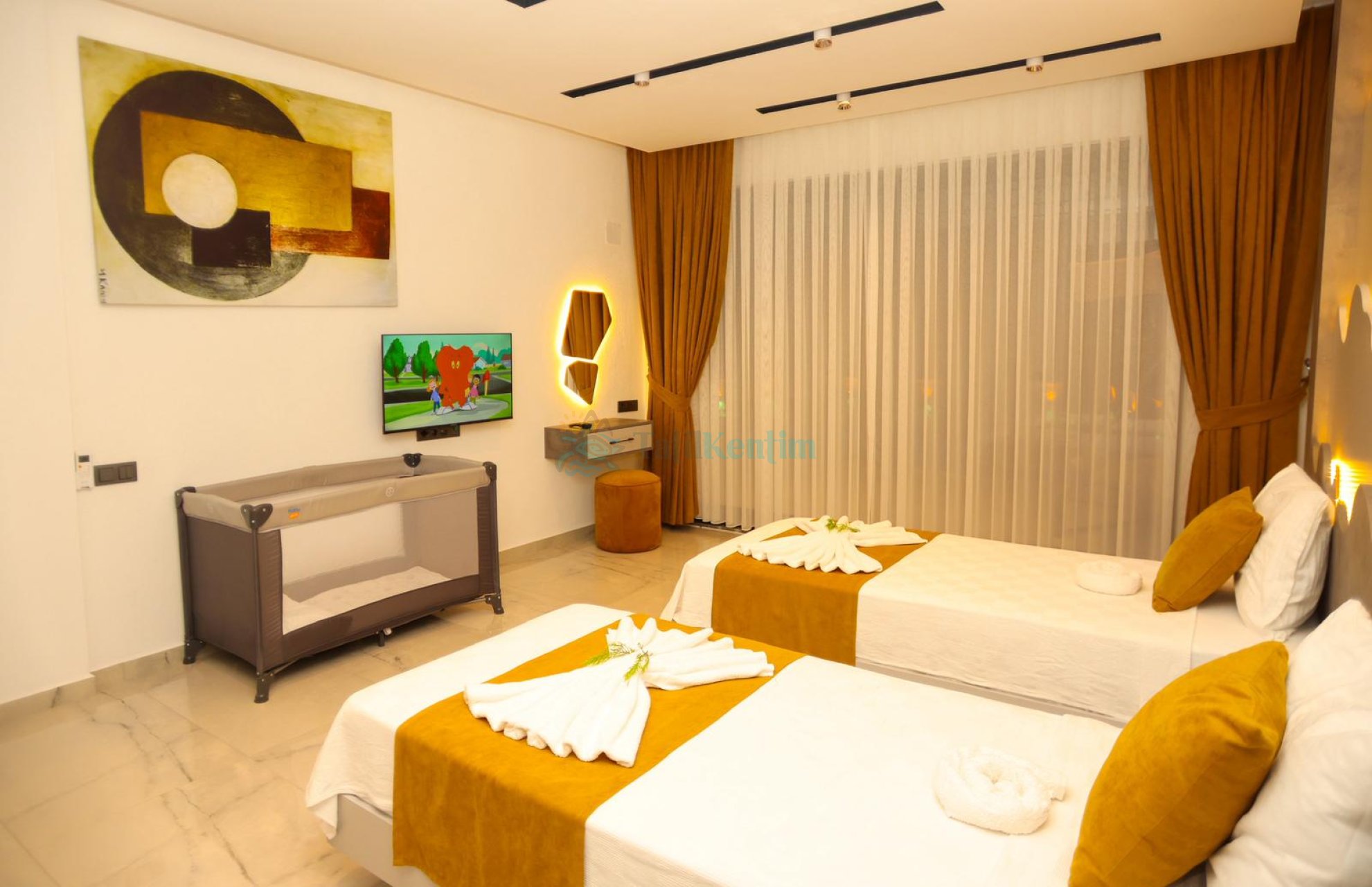 Yatak odası içerisinde, 2 adet tek kişilik yatak, klima, TV, komodin, makyaj masası, banyo ve tuvalet yer almaktadır.