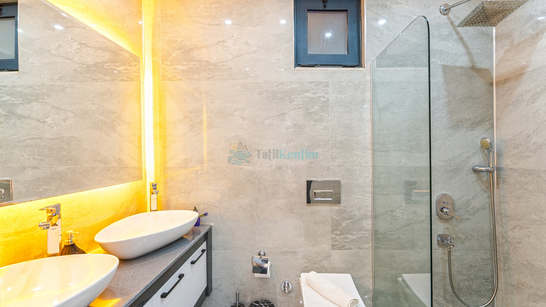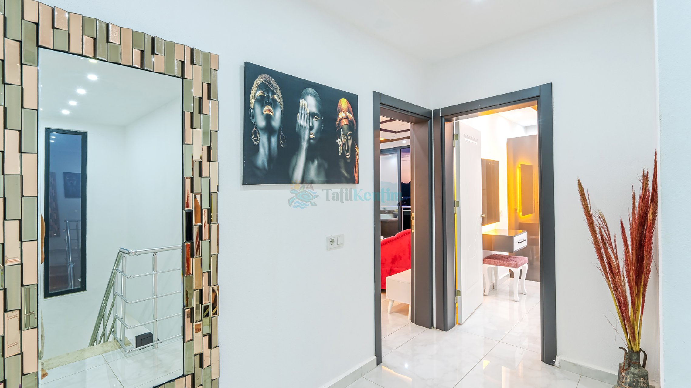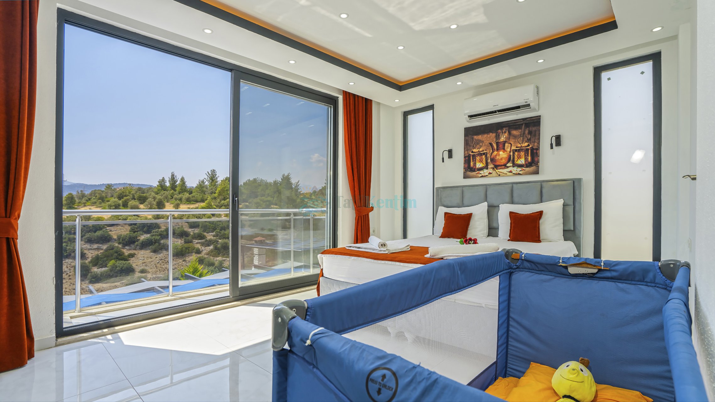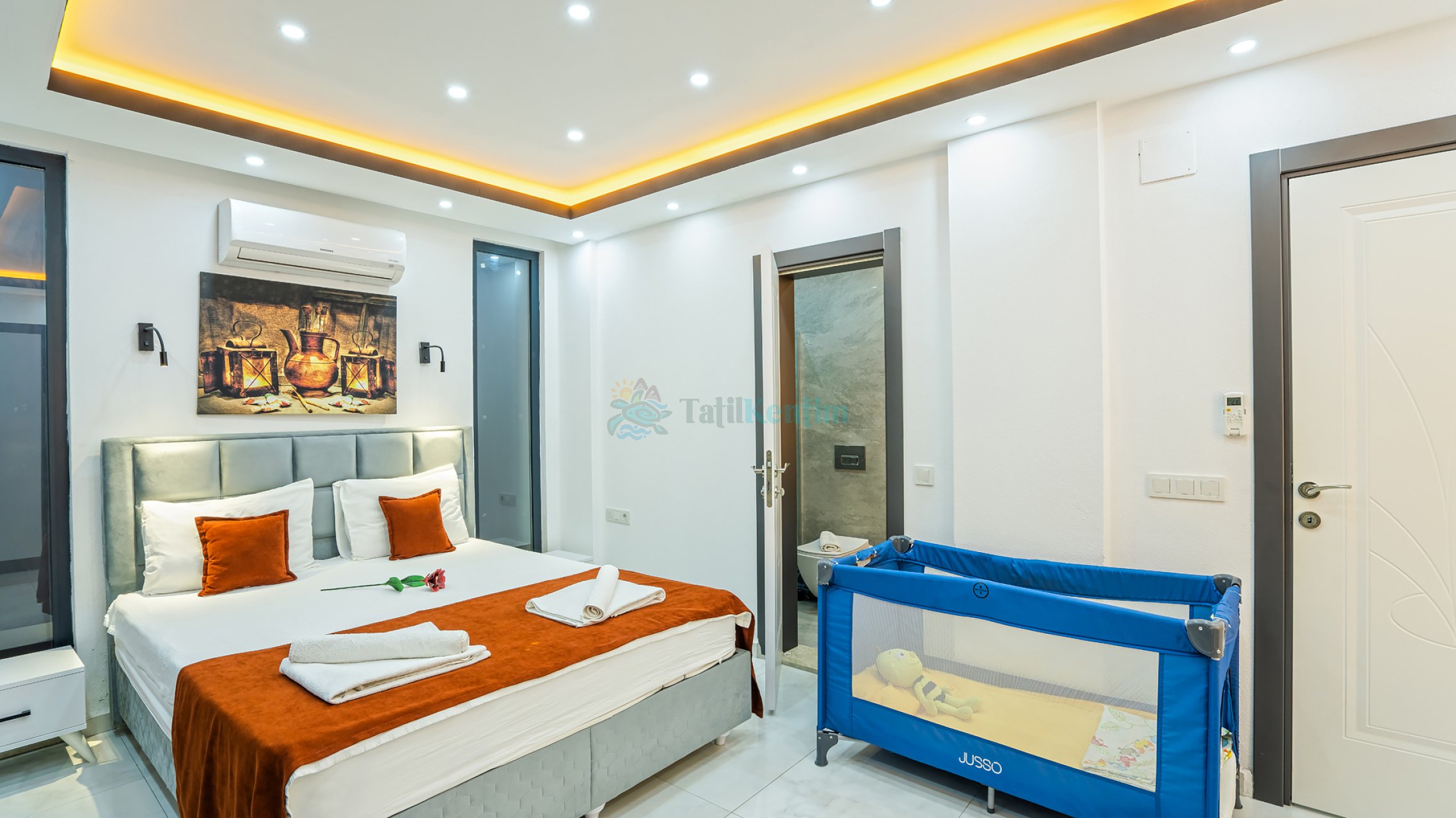 Yatak odası içerisinde, 2 adet tek kişilik yatak, klima, elbise dolabı, komodin, bebek yatağı, makyaj masası, banyo ve tuvalet yer almaktadır.