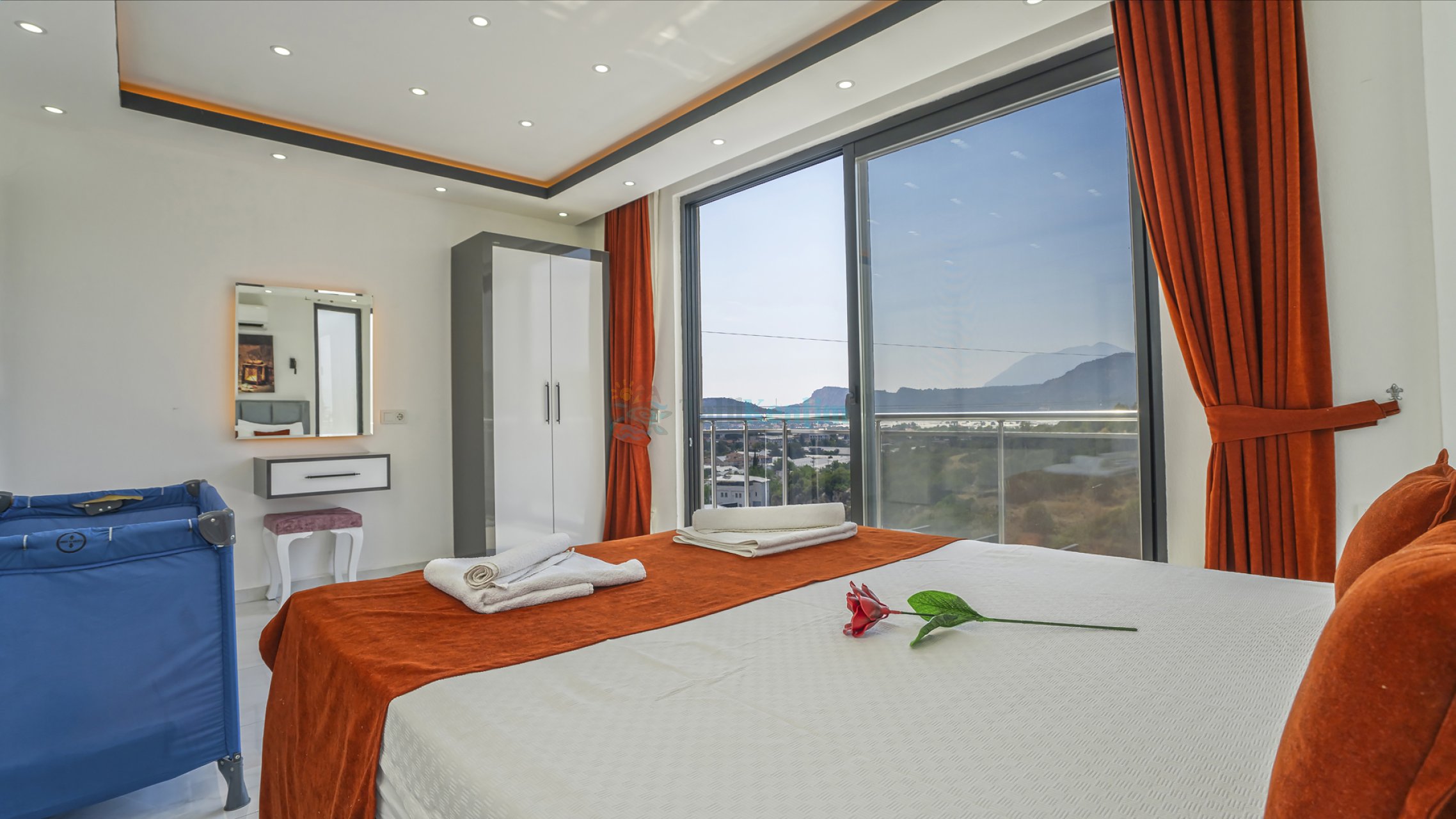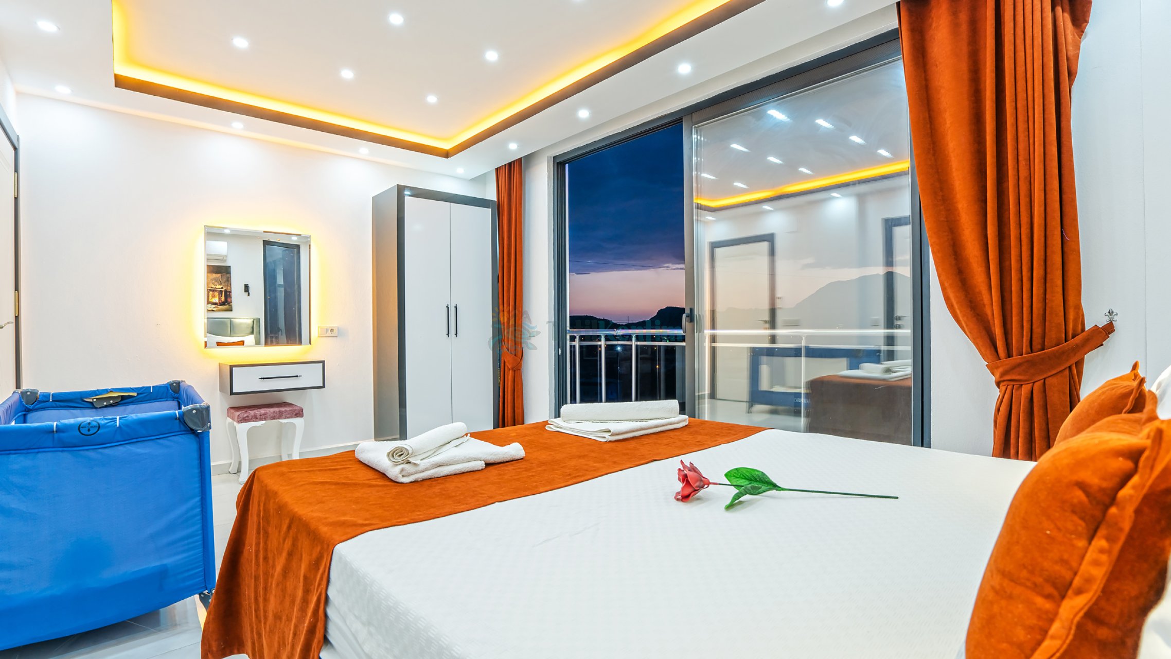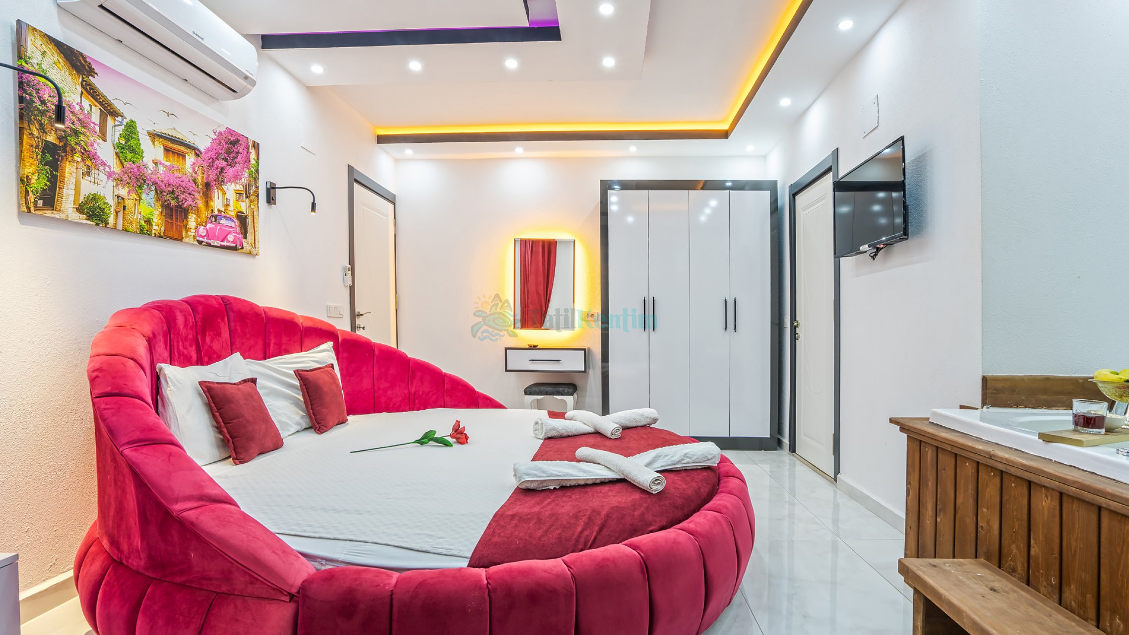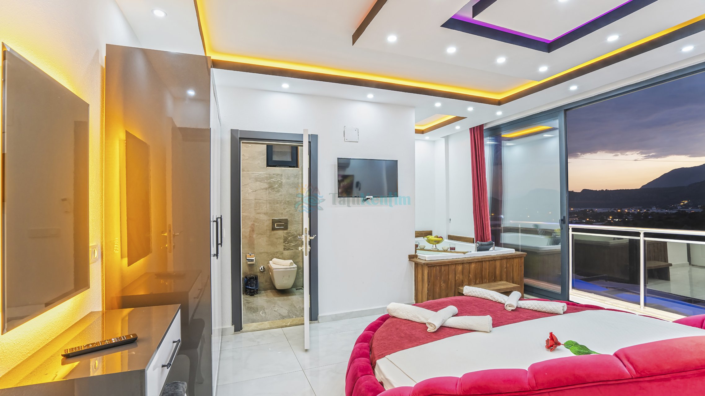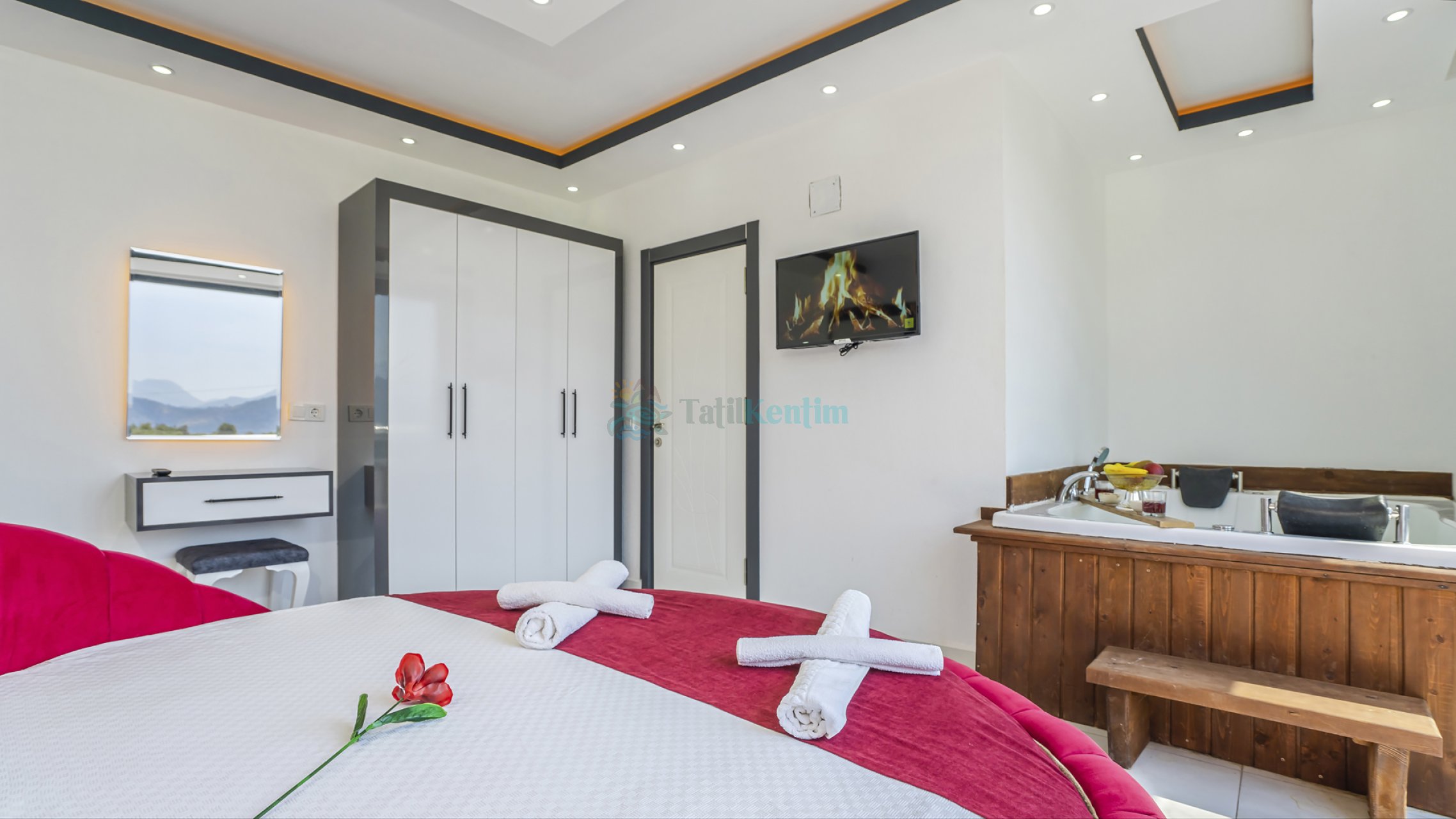 Yatak odası içerisinde, 1 adet çift kişilik yatak, klima, elbise dolabı, komodin, makyaj masası, jakuzi, banyo ve tuvalet yer almaktadır.