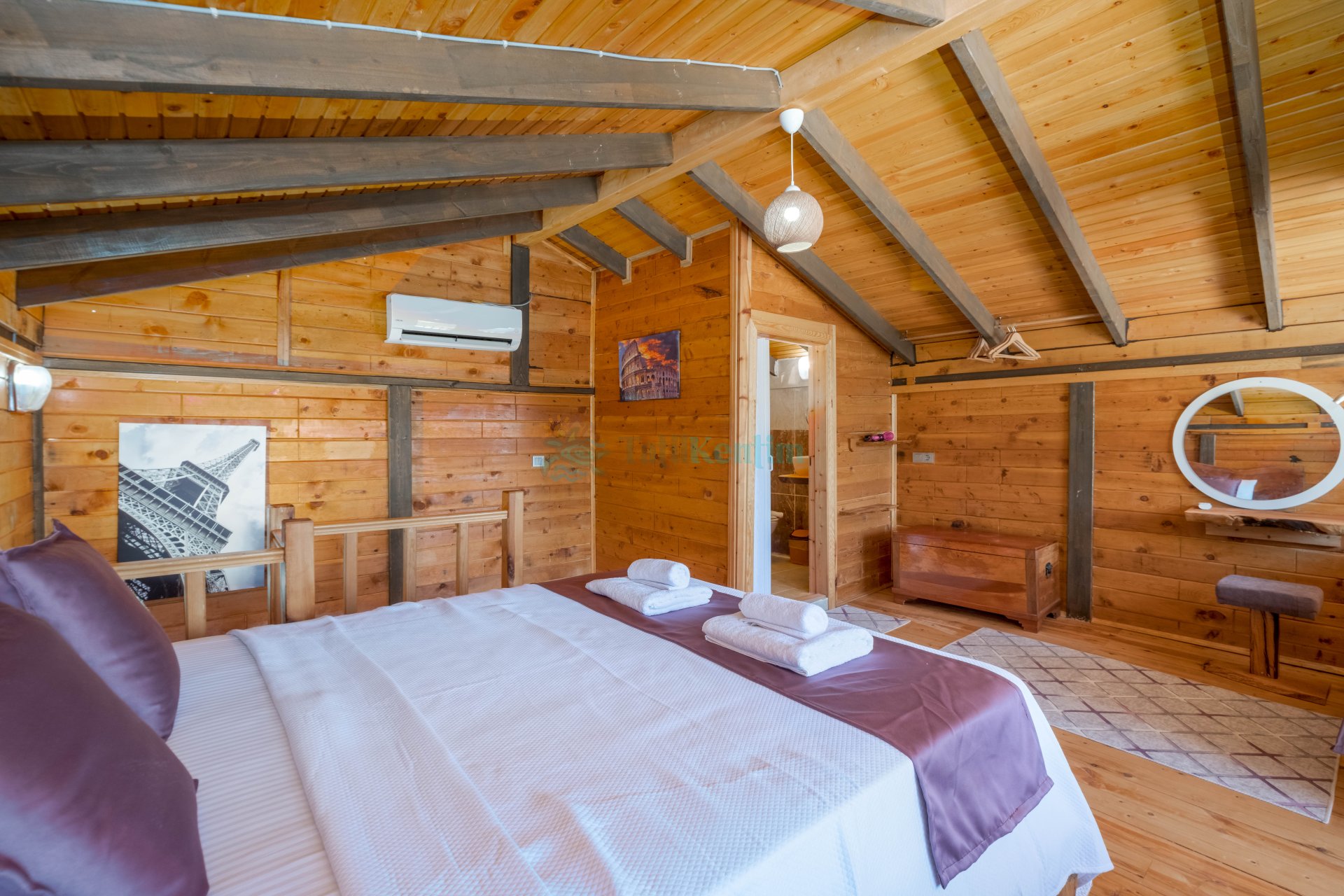 Yatak odası içerisinde, 1 adet çift kişilik yatak, klima, makyaj masası, jakuzi, banyo ve tuvalet yer almaktadır.