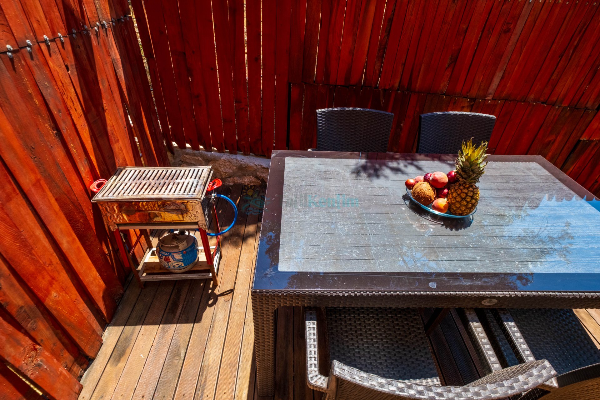 Amerikan mutfak içerisinde, buzdolabı, bulaşık makinası, çamaşır makinası, yemek masası, yemek takımı, ankastre fırın, tost makinası, ankastre ocak, çaydanlık, su ısıtıcısı, tava, tencere takımı ve gerekli olan tüm mutfak gereçleri yer almaktadır.