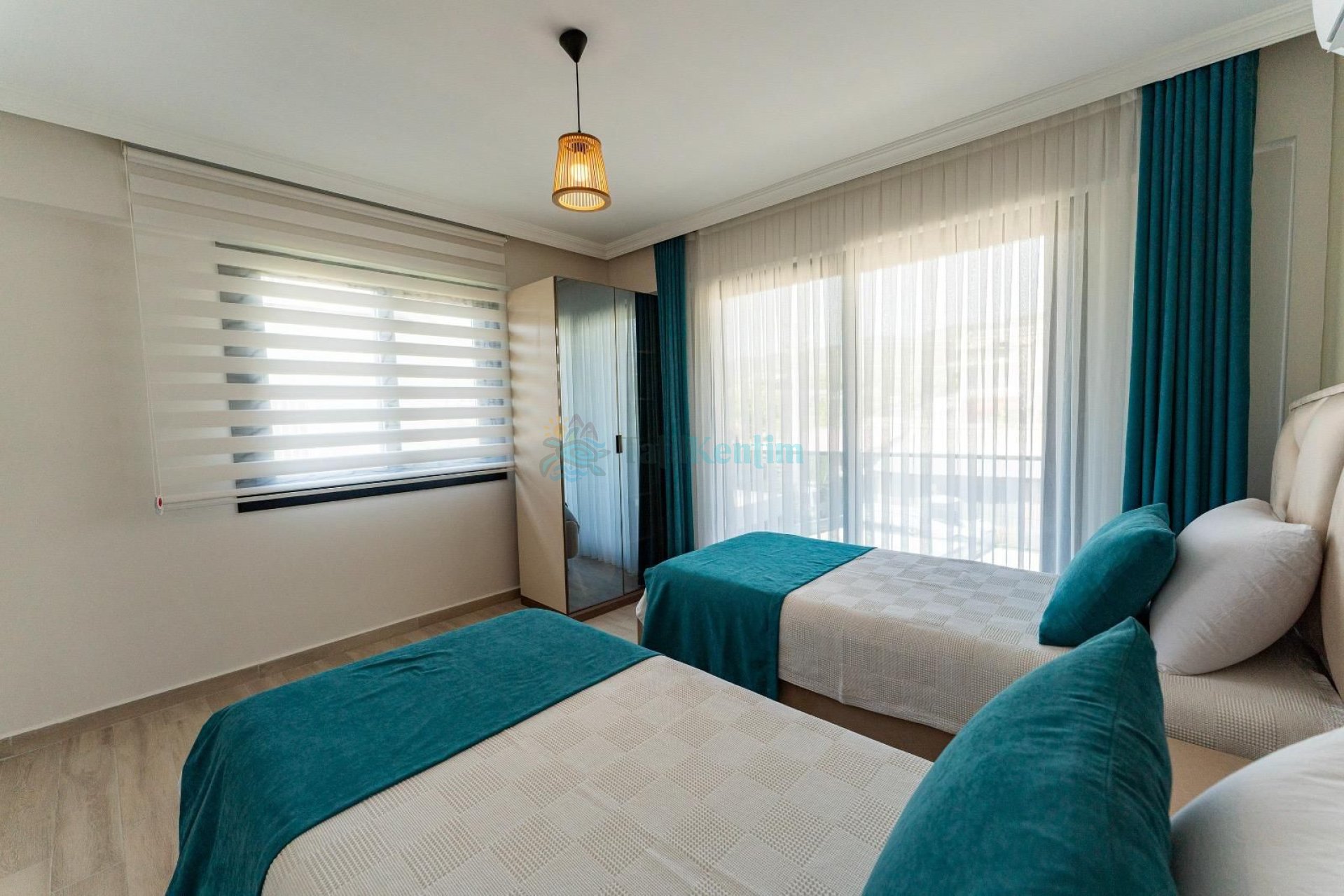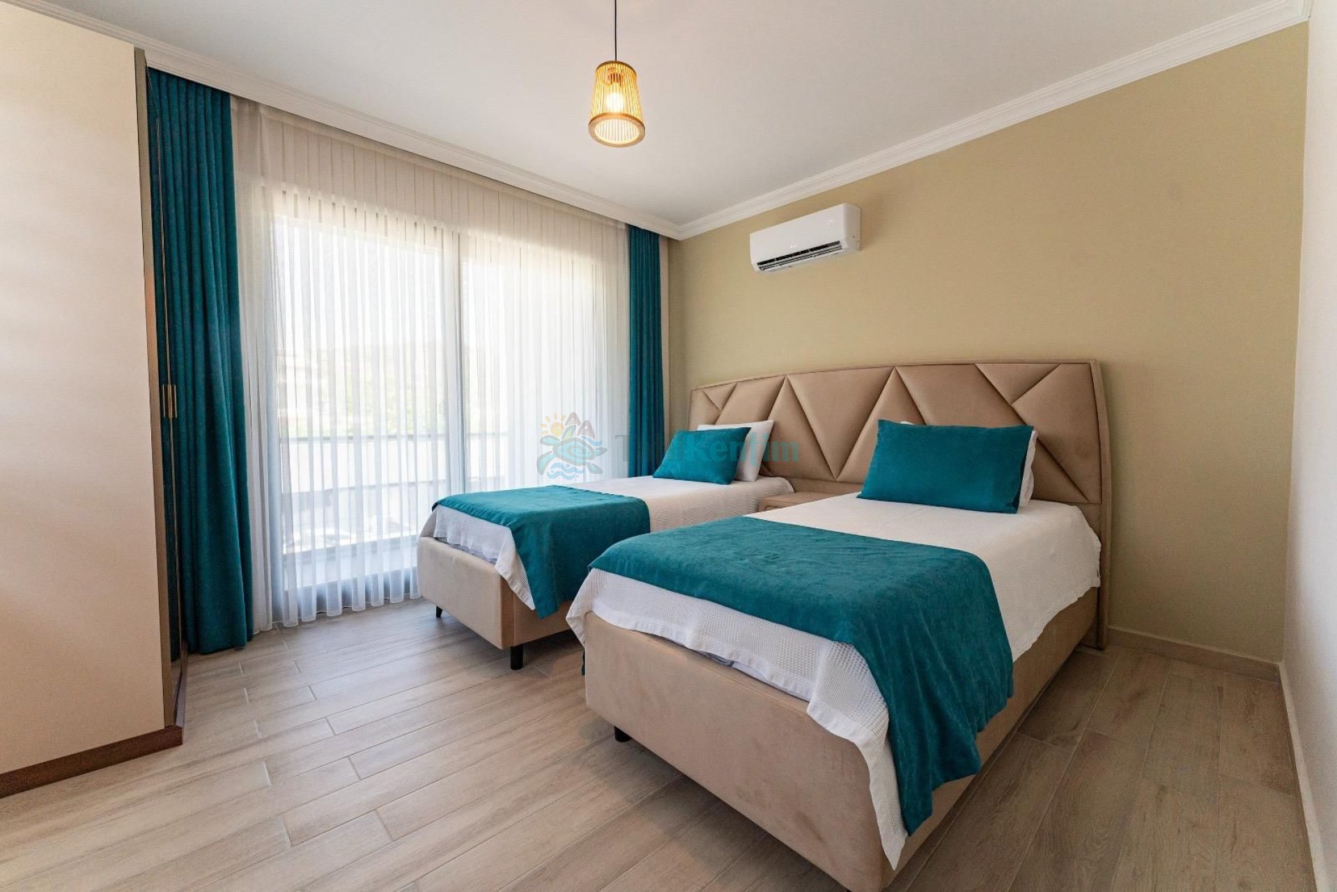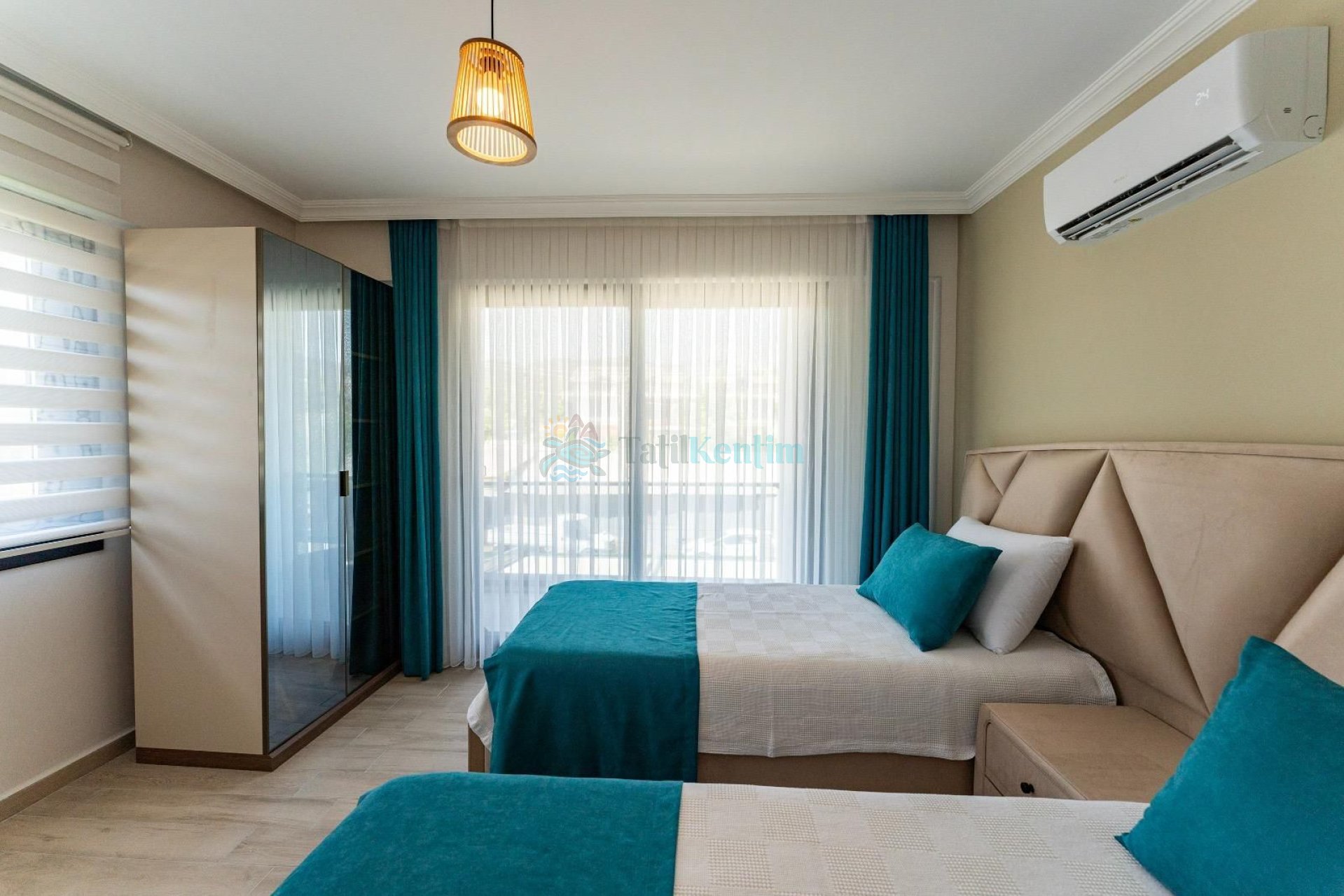 Yatak odası içerisinde, 2 adet tek kişilik yatak, klima, elbise dolabı, bebek yatağı, komodin yer almaktadır.