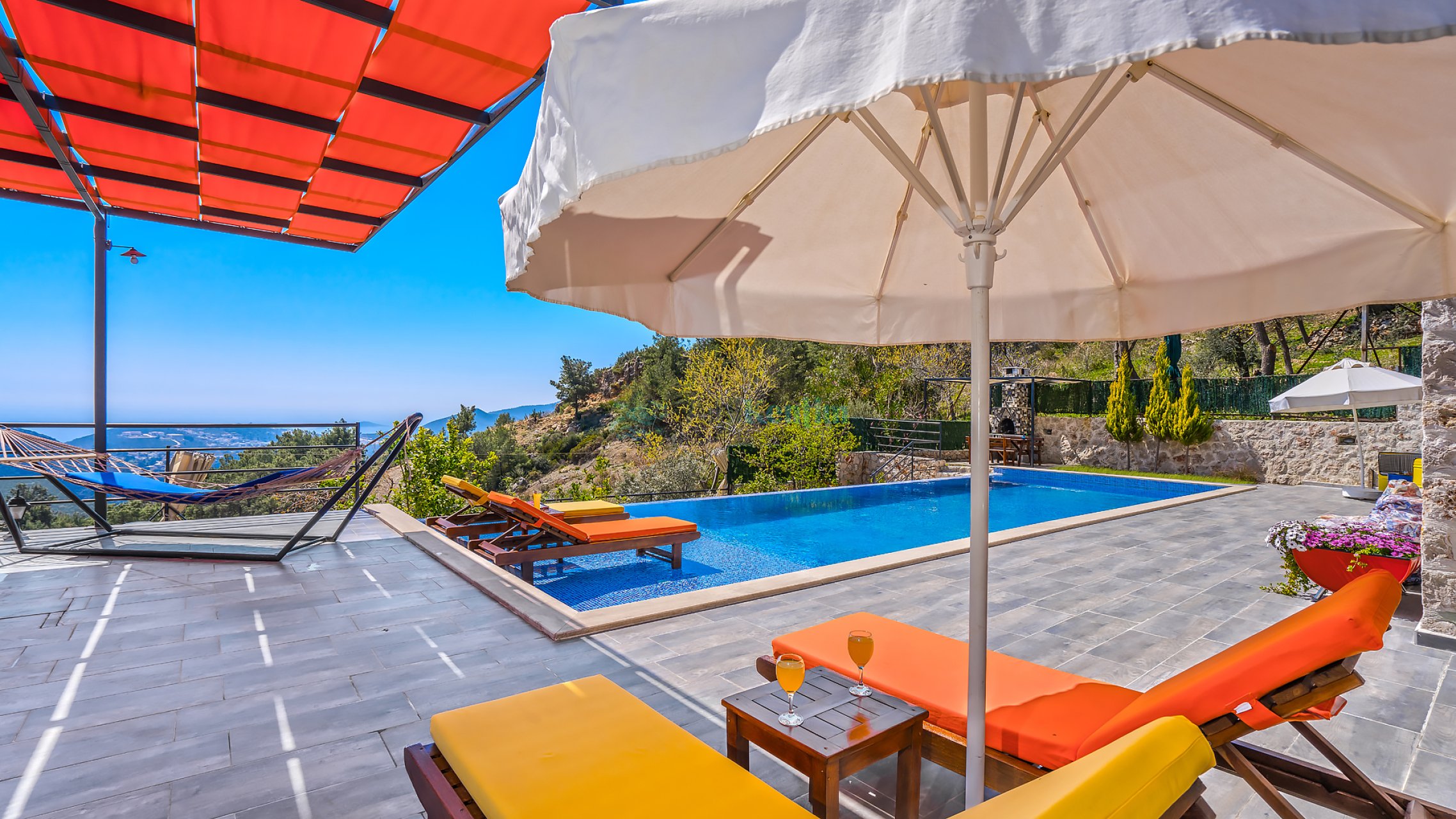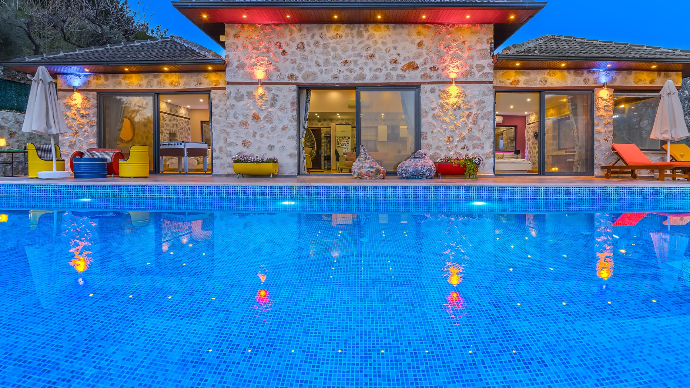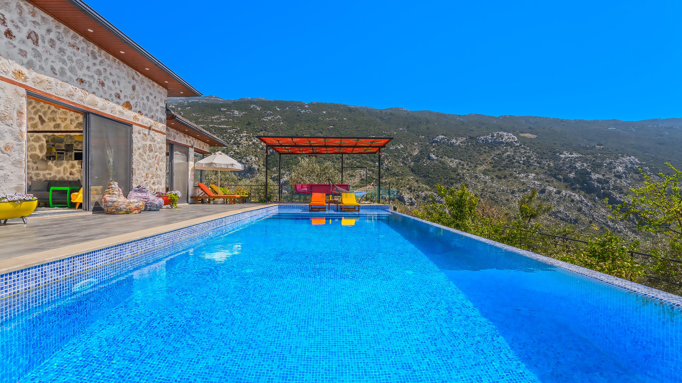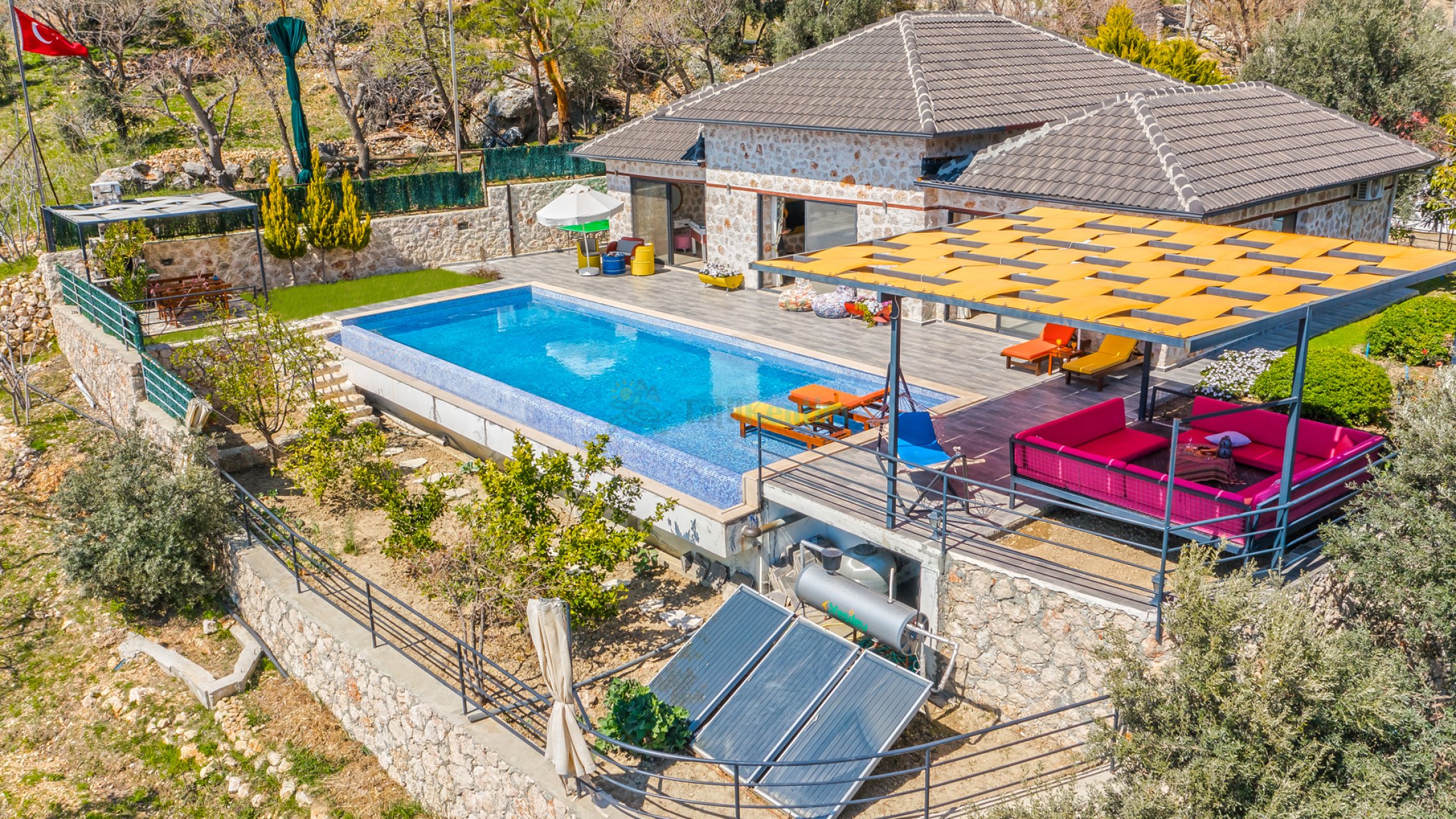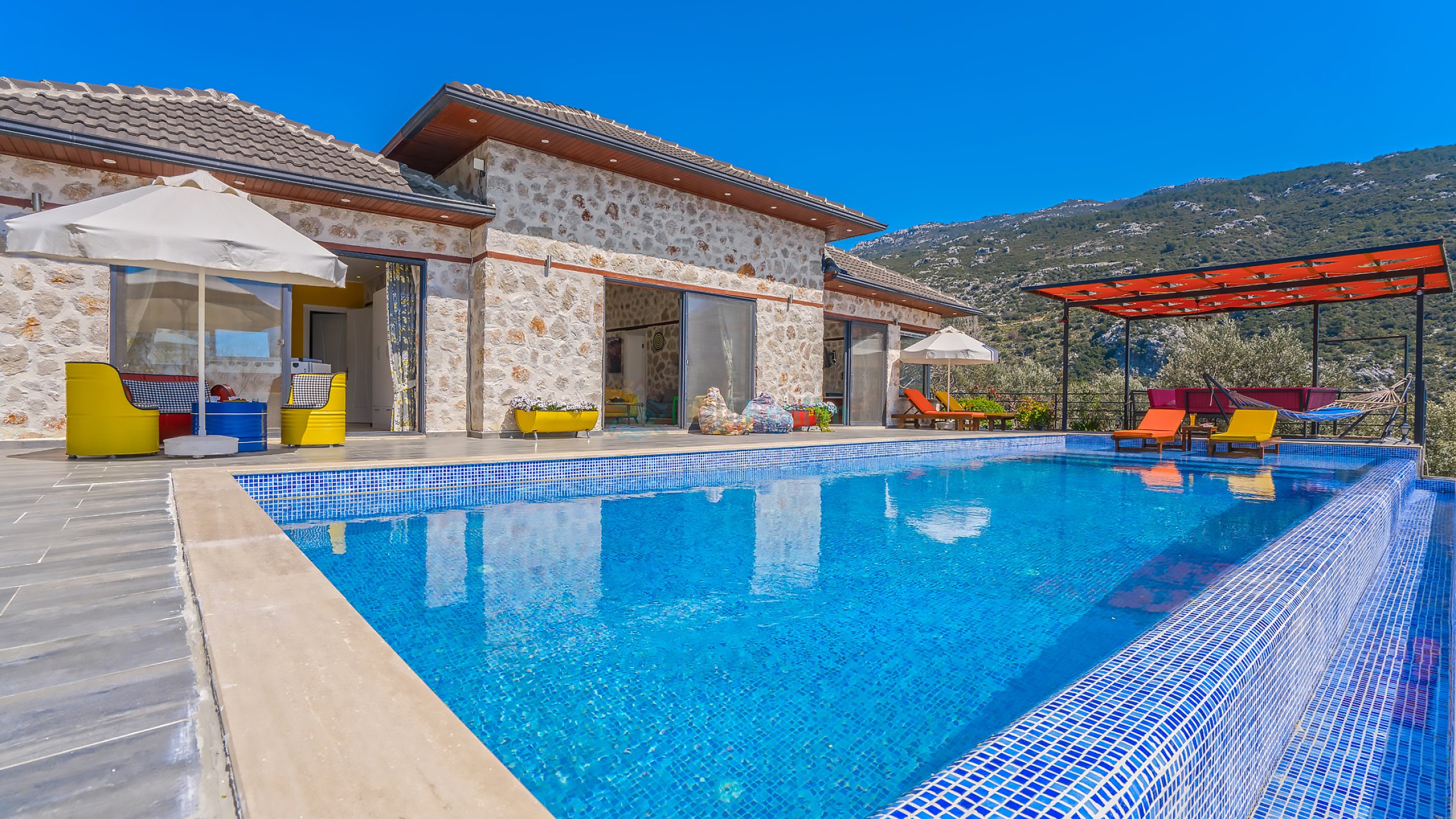 Villa Aras 2, Antalya Kaş İslamlar mevkiinde konumlanmış, panoramik deniz manzarasına hakim, doğa içinde yer alan, 2 yatak odası ile 5 kişilik konaklama kapasitesine sahip, çekirdek ailelere ve balayı çiftlerine hitap eden kiralık tatil villasıdır. Villamızda bütün bir yılın stresini atabileceğiniz özel havuzu ve jakuzisi olup, geniş terasında tatilin tadını çıkarabileceğiniz barbeküsü ile eğlenceli vakit geçirebileceğiniz masa tenisi ve langırt bulunmaktadır. Villa Aras 2, taş yapıda tasarlanmış, modern ve şık mimaride dizayn edilmiş, rahat ve konforlu bir tatil seçeneği sunmaktadır.