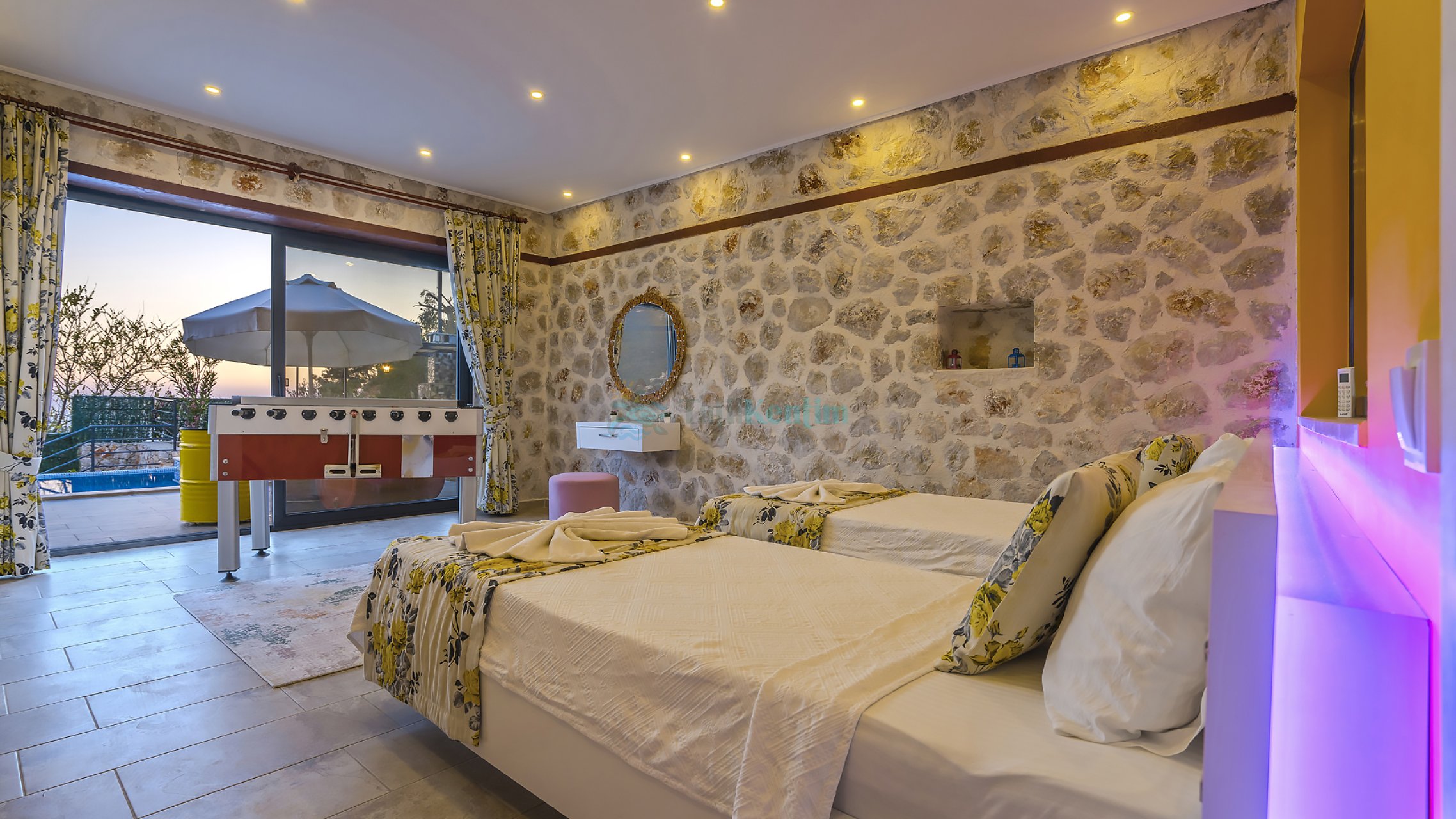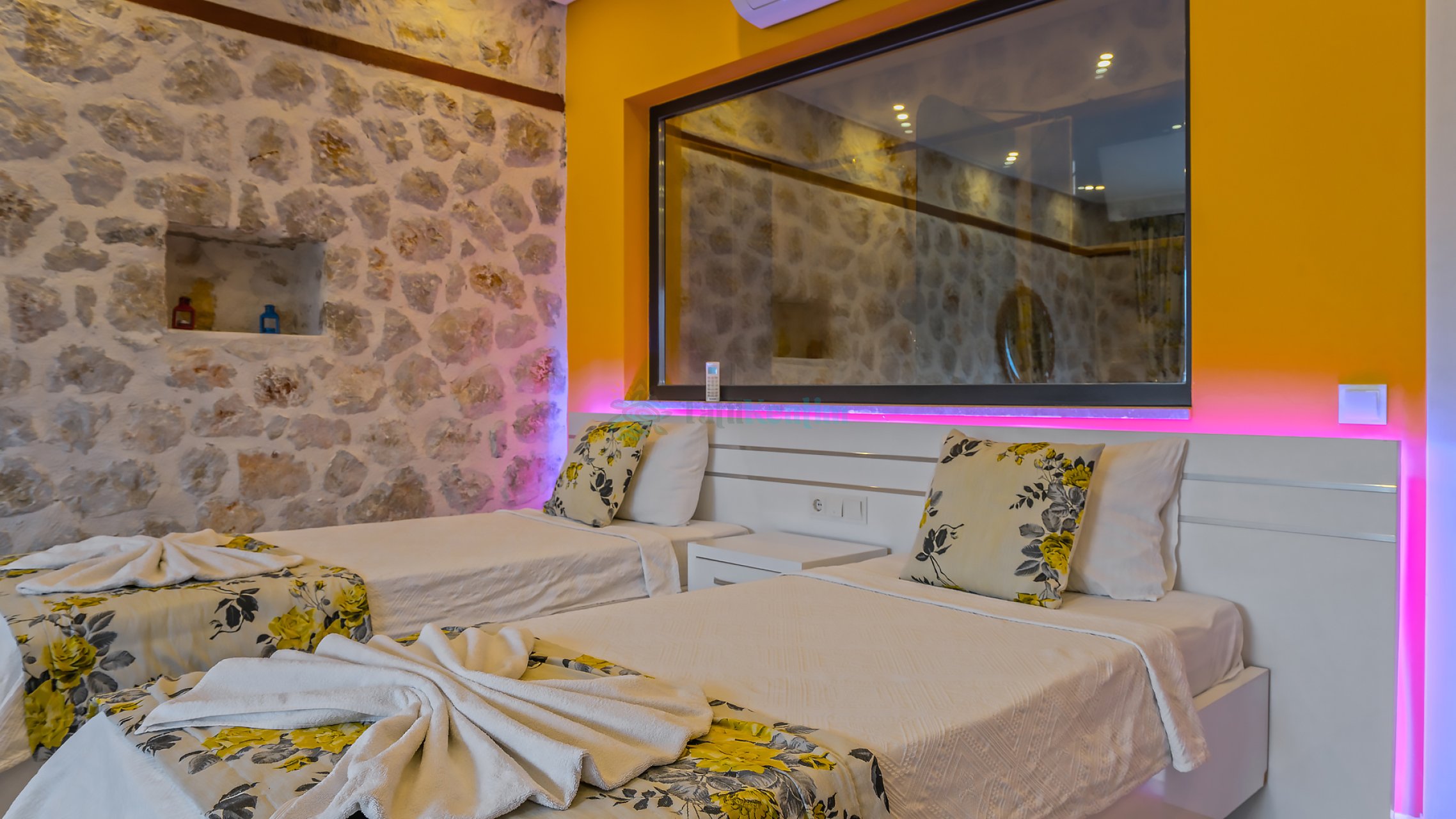 Yatak odası içerisinde, 1 adet tek kişilik yatak, 1 adet çift kişilik yatak, klima, elbise dolabı, komodin, makyaj masası, banyo ve tuvalet yer almaktadır.