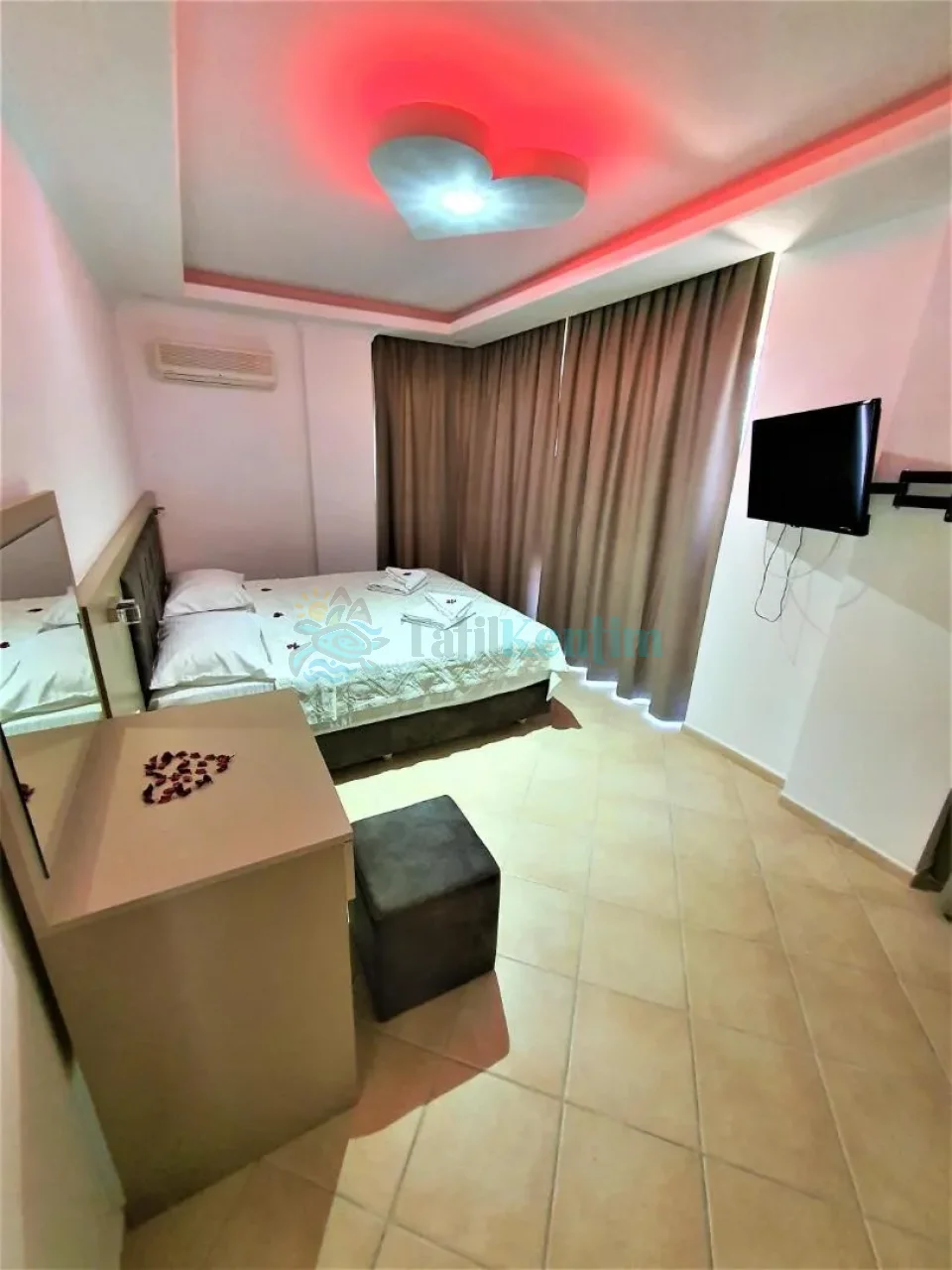 Villamızın bu yatak odasında 1 adet çift kişilik yatak, klima, elbise dolabı, komodin ve banyo bulunmaktadır.