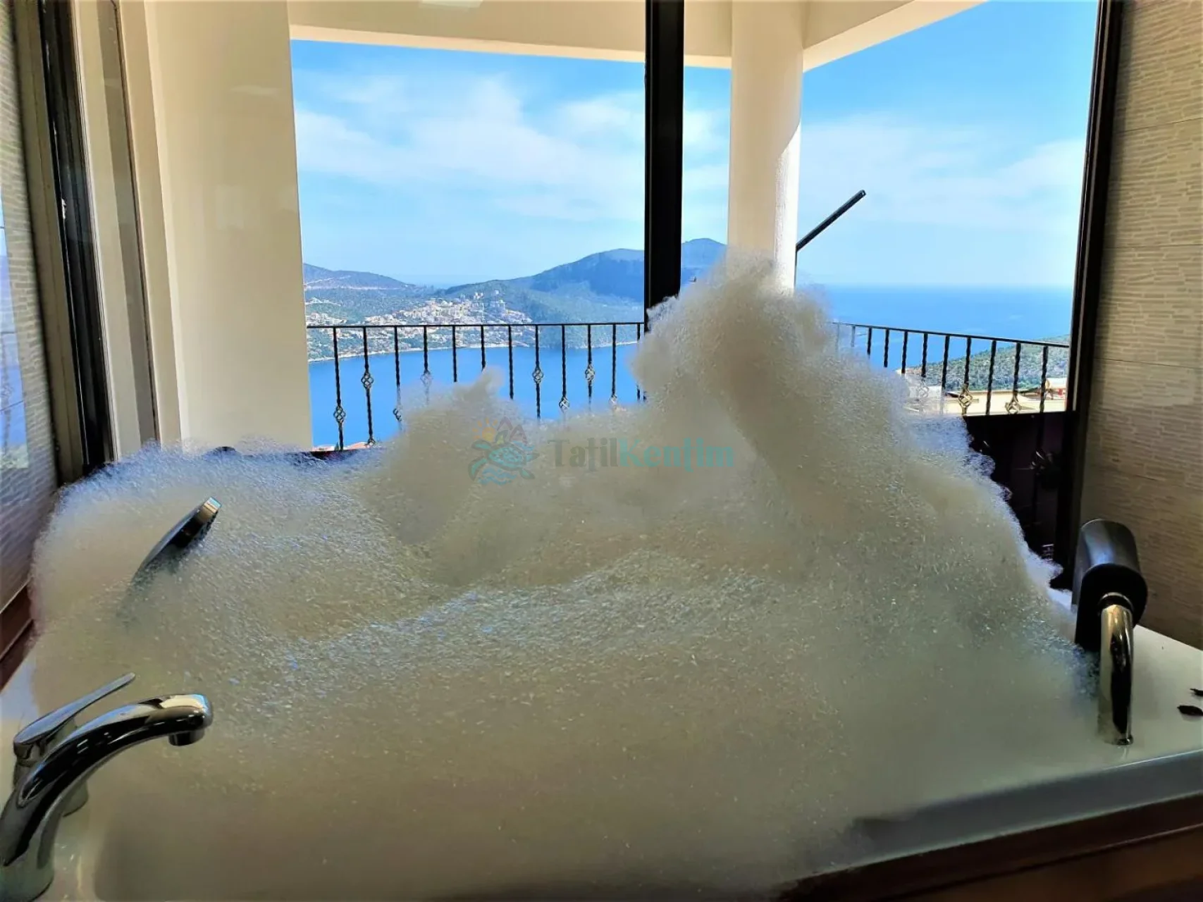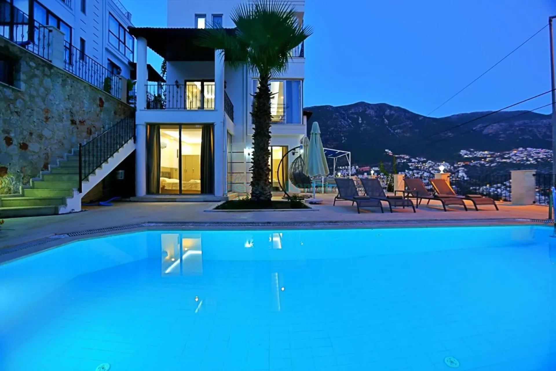 Kaş Kalkan'da Merkeze Yakın Deniz Manzaralı 5 Yatak Odalı 10 kişilik Özel Havuzlu Lüks Kiralik Tatil Villası