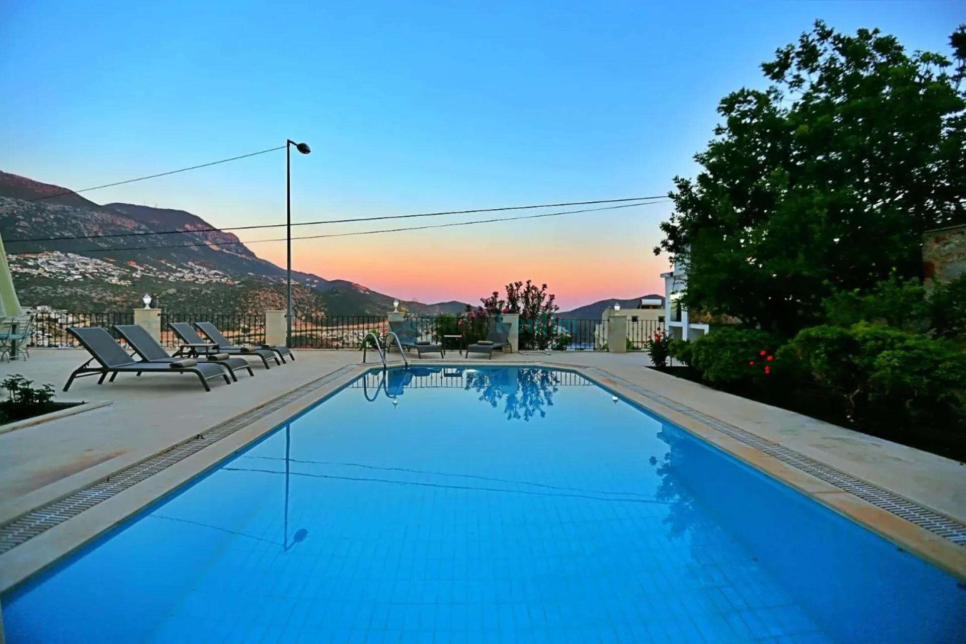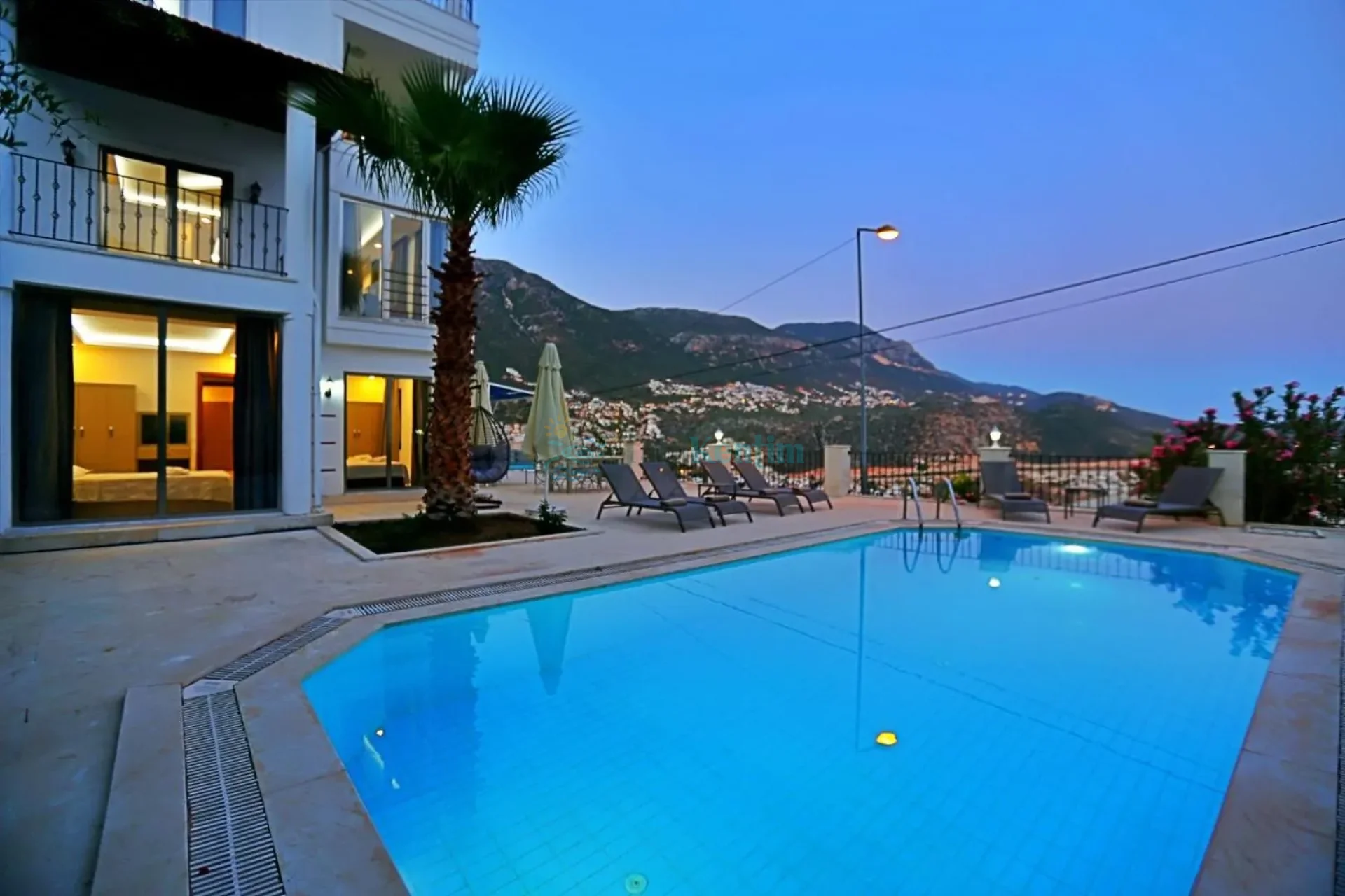 Kaş Kalkan Bölgesinde 10 Kişilik Konaklama Kapasitesine Sahip Sonsuzluk Havuzuna Sahip Kiralık Tatil Villası