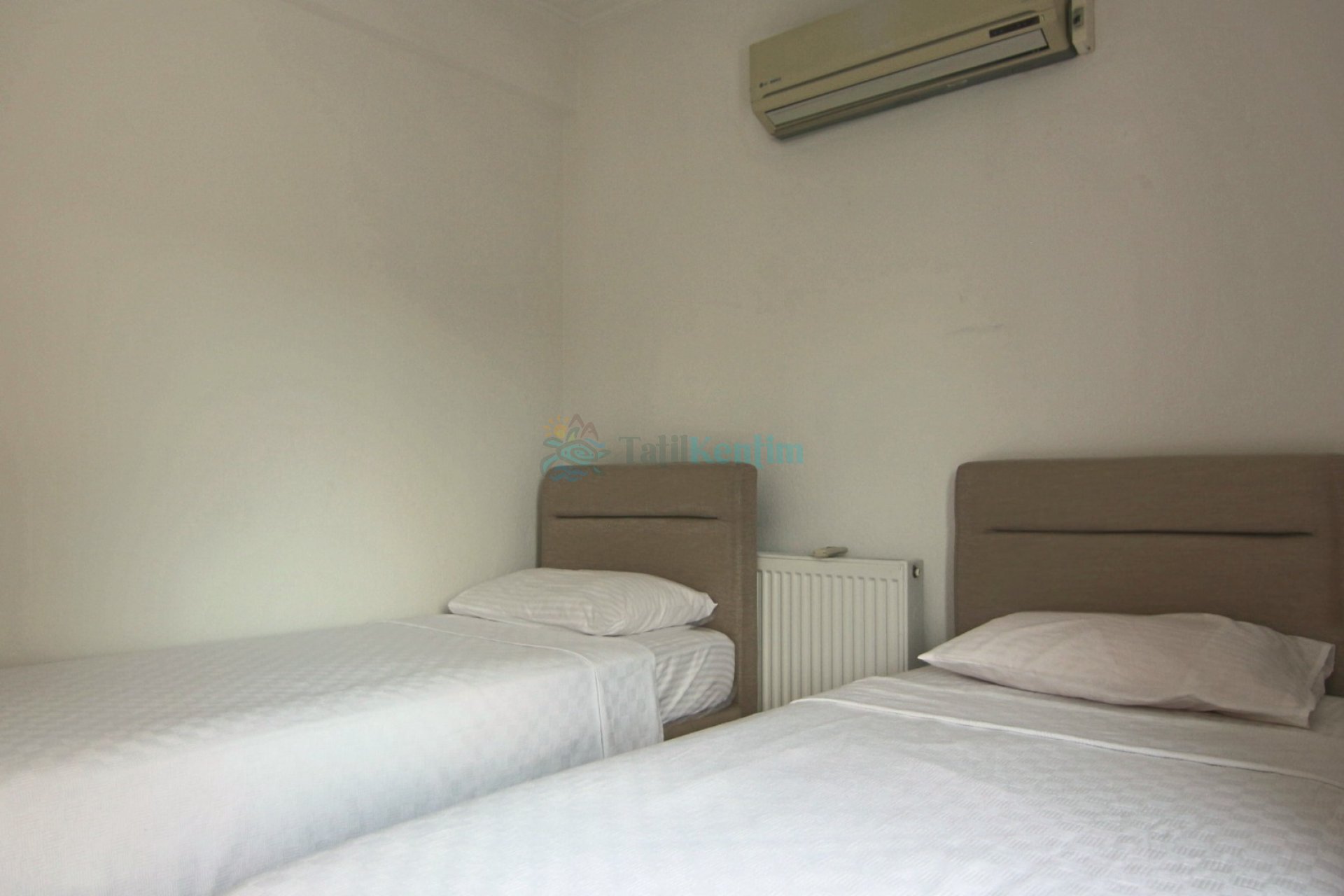 Yatak odası içerisinde, 2 adet tek kişilik yatak, klima, elbise dolabı, komodin, makyaj masası, banyo ve tuvalet yer almaktadır.