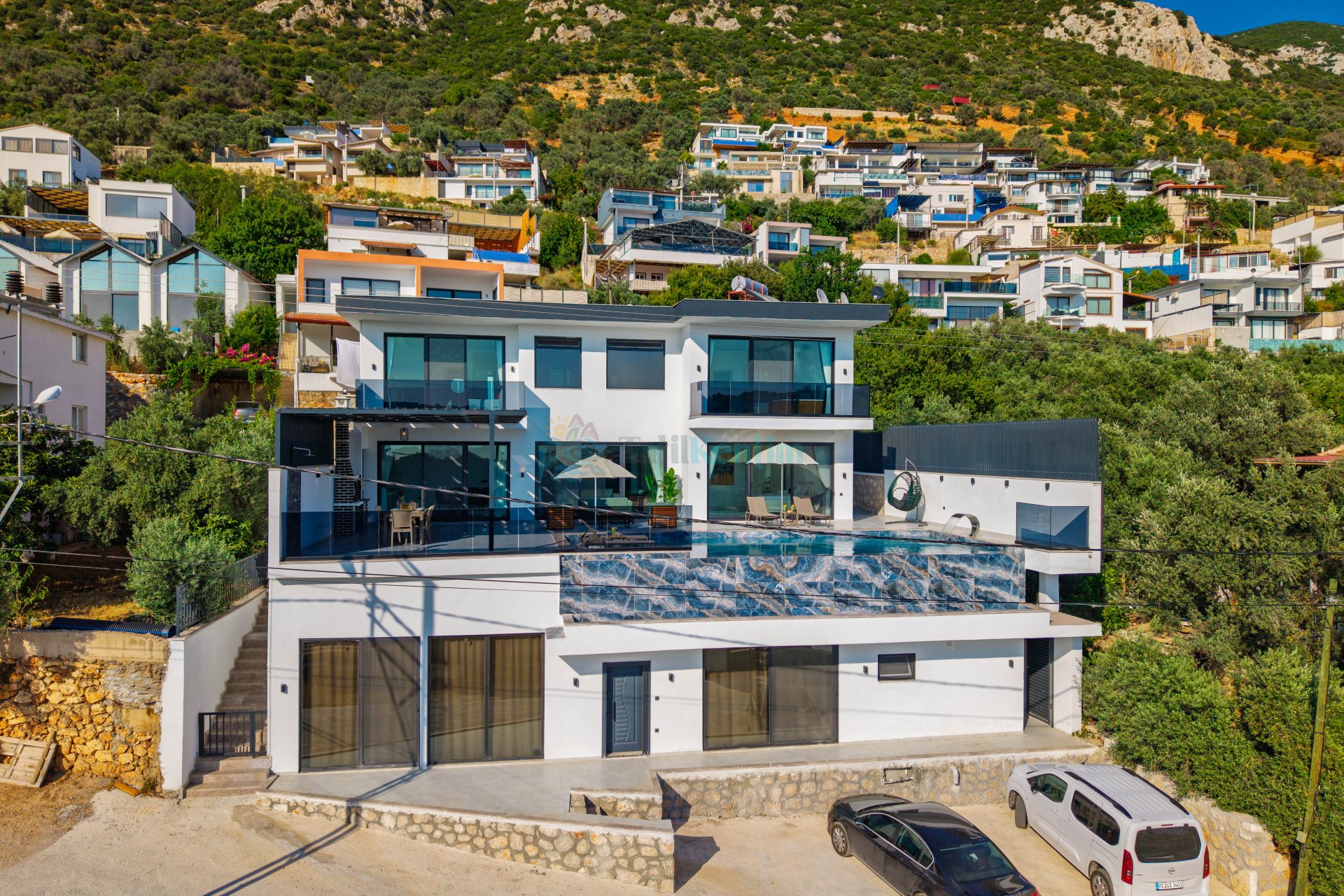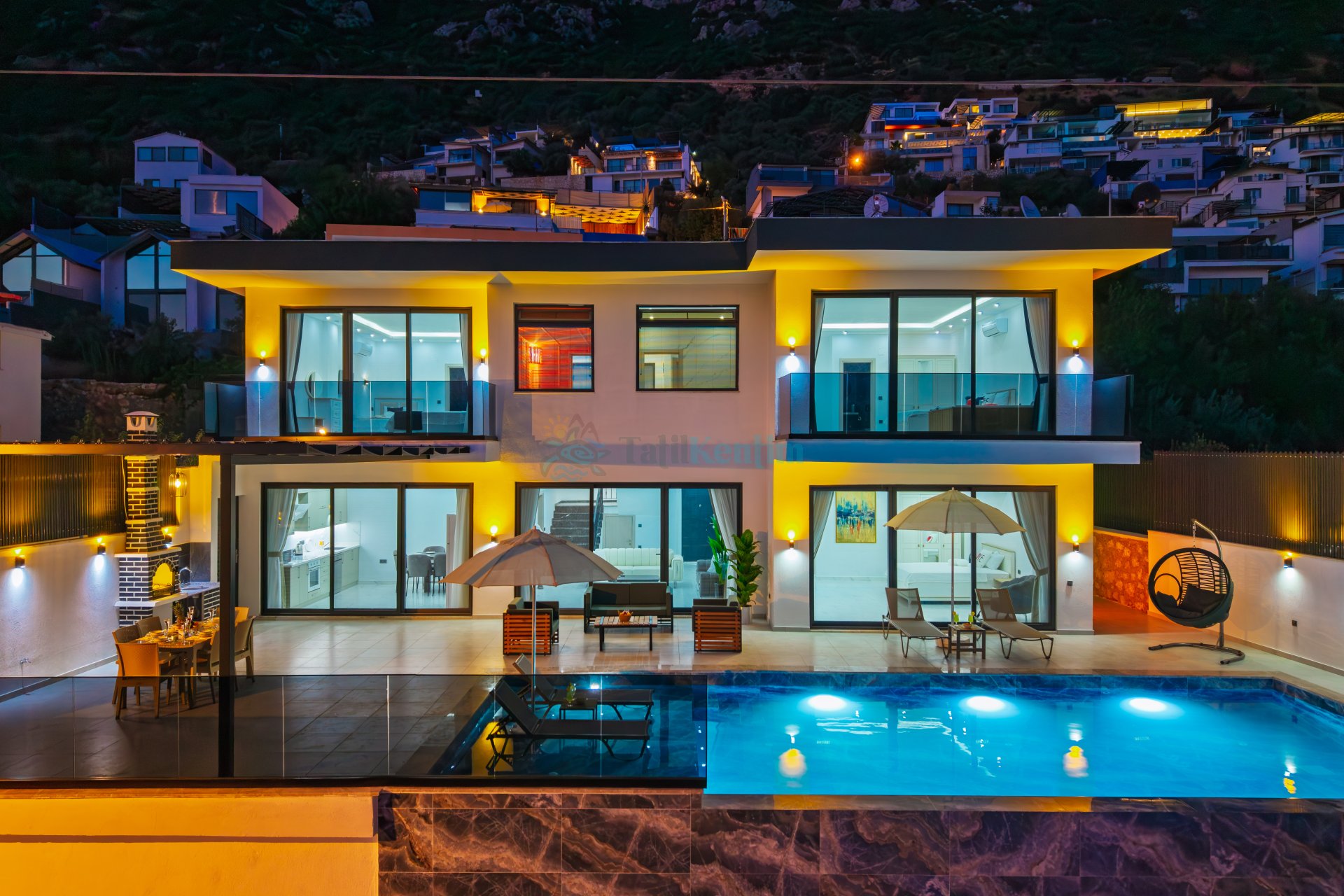 Villa Azra Gül; Kaş’ın sakin ve doğayla iç içe bölgelerinden biri olan Bezirgan mevkiinde yer alan, konforlu ve huzurlu bir tatil geçirmek isteyen misafirler için ideal bir seçenektir. Villa toplam 9 kişi konaklama kapasitesine sahip olup 4 yatak odası ve 4 banyo ile geniş aileler ve arkadaş grupları için rahat bir konaklama imkanı sunmaktadır. 2 katlı olarak tasarlanan villada modern ve kullanışlı bir iç mimari bulunmaktadır. Villanın odalarından birinde jakuzi bulunmakta olup misafirlere ekstra konfor sunmaktadır. Ayrıca villada sauna ve hamam gibi dinlenme alanları da yer almakta ve tatiliniz boyunca keyifli vakit geçirmenize olanak sağlamaktadır. Villa bahçesinde ise özel yüzme havuzu, yemek masası, salıncak ve oturma grubu bulunmaktadır. Geniş havuz terası sayesinde misafirler gün boyunca güneşin ve doğanın tadını çıkarabilir, akşam saatlerinde ise sevdikleriyle keyifli vakit geçirebilirler. Doğayla iç içe konumu ve sunduğu konforlu imkanlarıyla Villa Azra Gül, şehir gürültüsünden uzak, huzurlu ve unutulmaz bir tatil deneyimi sunmaktadır.