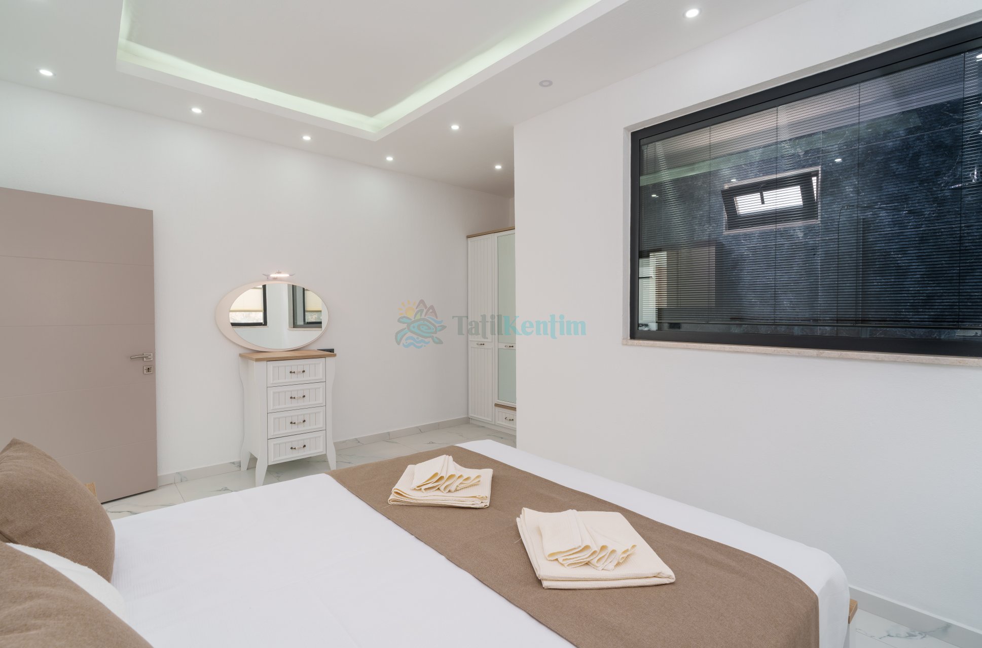 3.Yatak Odası: 1 Adet çift kişilik yatak, komodin, klima, TV, makyaj masası, elbise dolabı, banyo ve tuvalet bulunmaktadır.