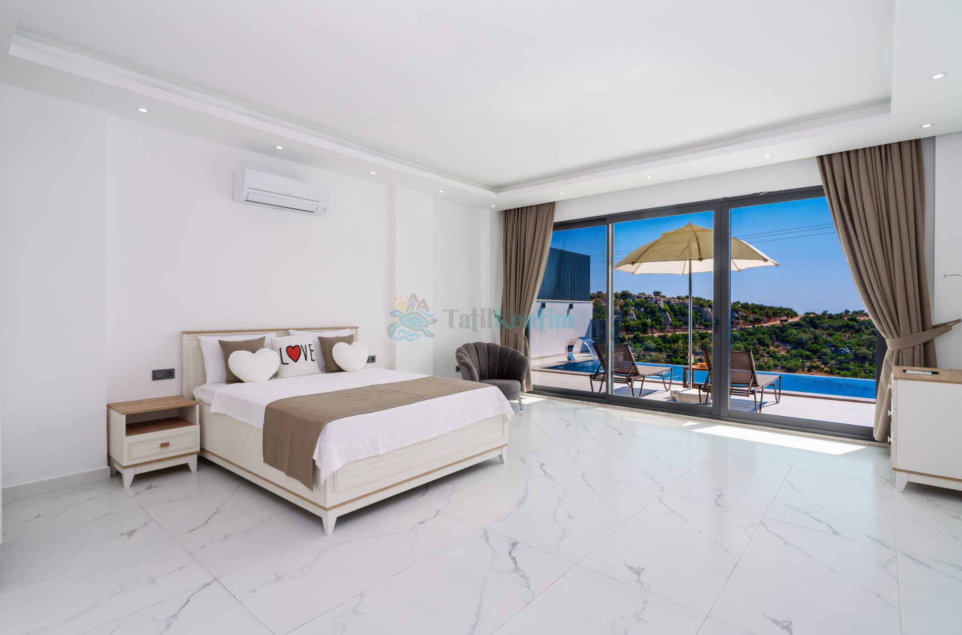 Muhafazakar, Kapalı Sıcak Havuz, Deniz Manzaralı, Merkeze Yakın Kiralık Balayı Villası