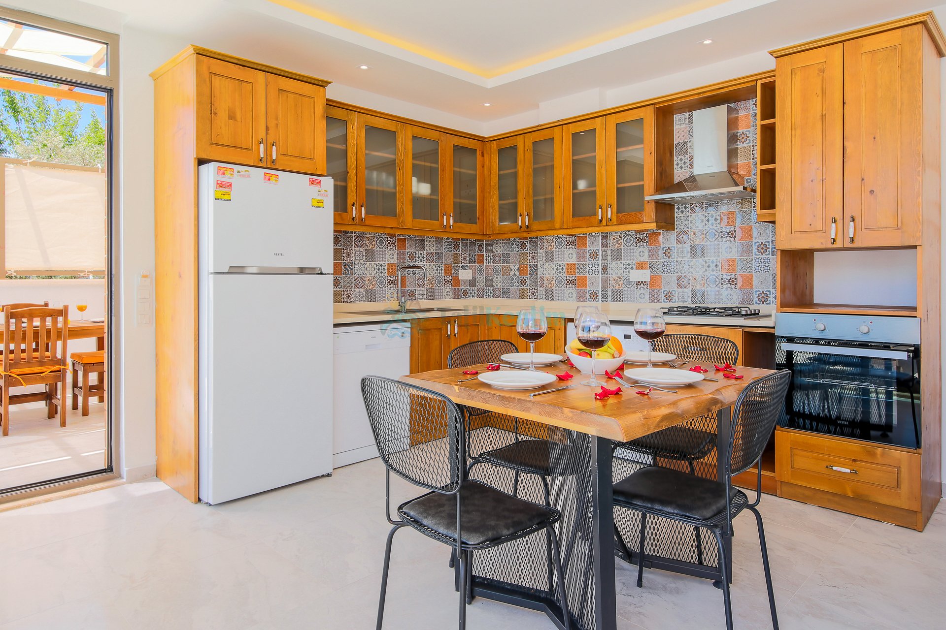 Amerikan mutfak içerisinde, buzdolabı, bulaşık makinası, çamaşır makinası, yemek masası, yemek takımı, ankastre fırın, ankastre ocak, çaydanlık, su ısıtıcısı, tava, tencere takımı ve gerekli olan tüm mutfak gereçleri yer almaktadır.