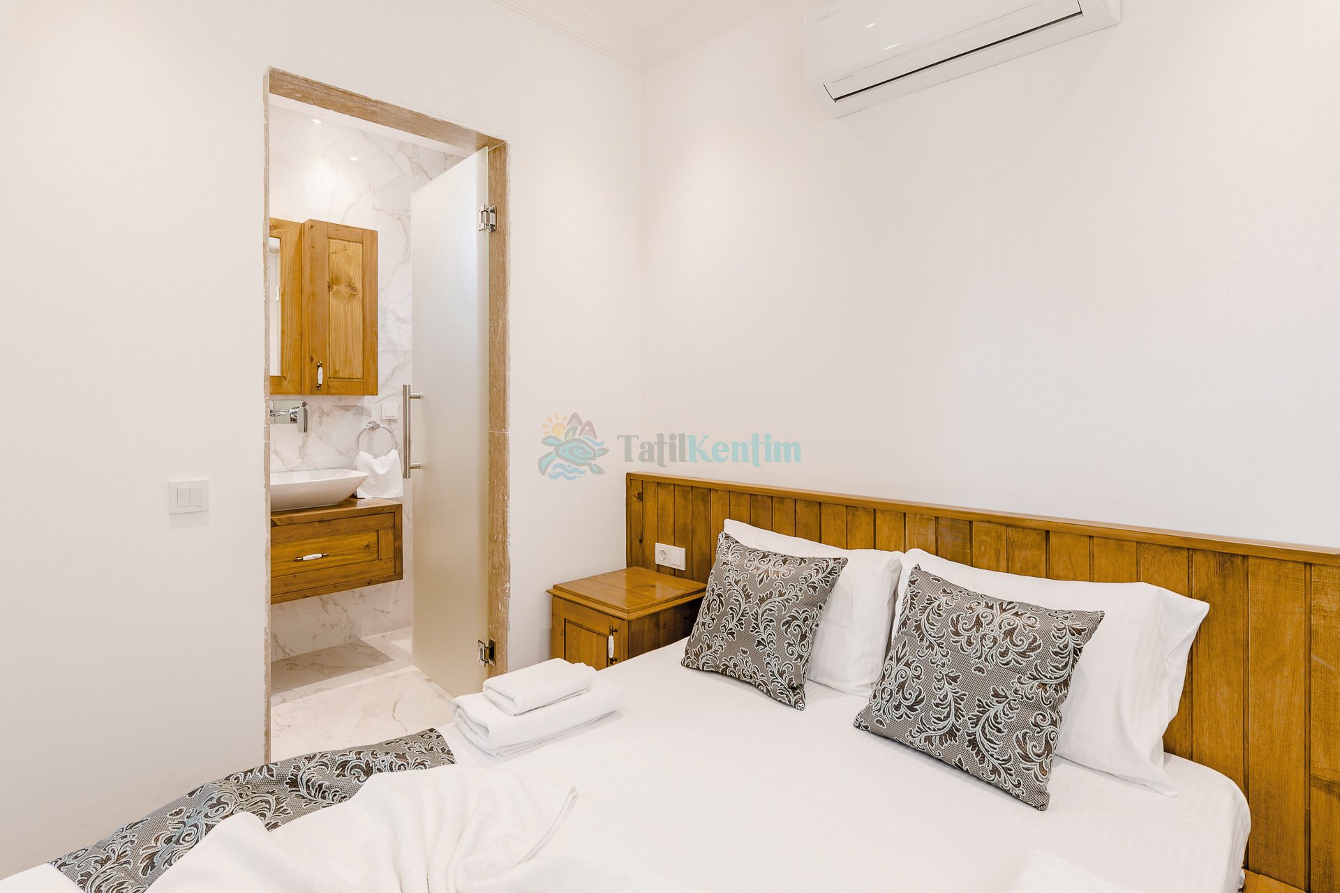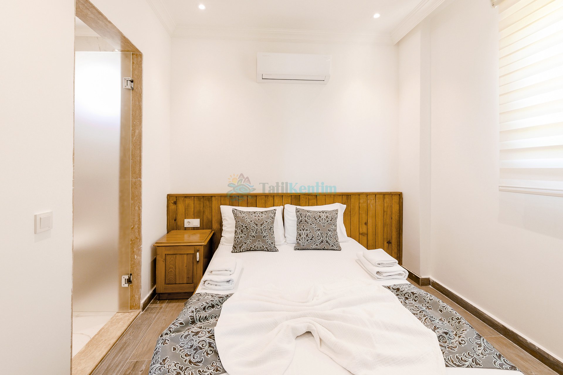 Yatak odası içerisinde, 1 adet çift kişilik yatak, klima, elbise dolabı, komodin, banyo ve tuvalet yer almaktadır.
