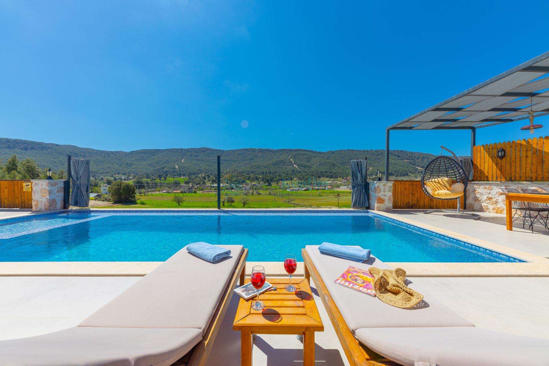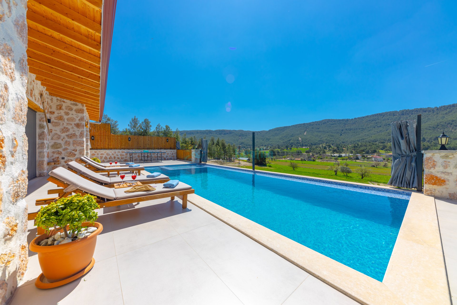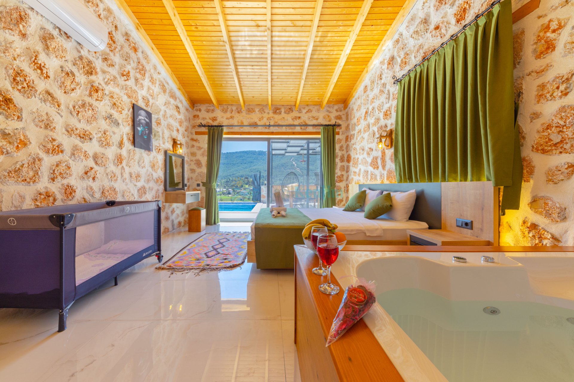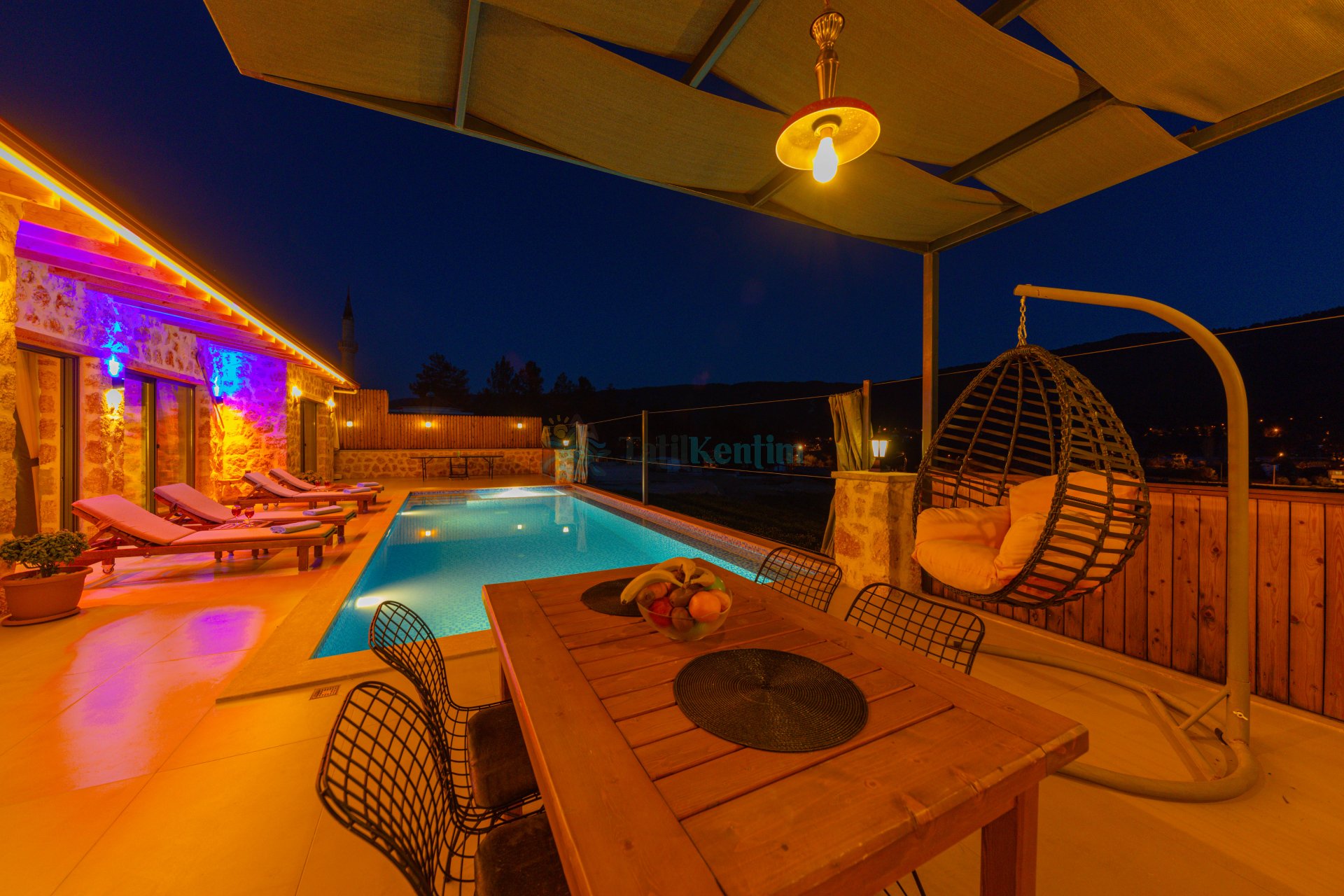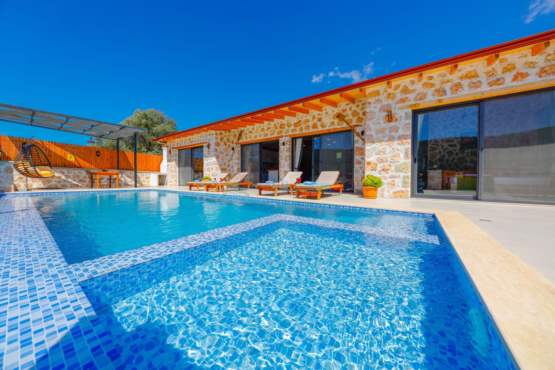 Villa Berceste, Antalya Kaş Kalkan'ın Sarıbelen mevkiinde konumlanmış, 2 yatak odası ile 4 kişilik konaklama kapasitesine sahip, çekirdek ailelere ve balayı çiftlerine hitap eden, keyifli vakit geçirebileceğiniz özel havuzu, jakuzi ve çocuklara özel çocuk havuzu bulunan, muhafazakar yapıda tasarlanmış, taş ve otantik mimaride dizayn edilmiş, rahat ve konforlu bir seçenek sunan kiralık lüks tatil villasıdır.