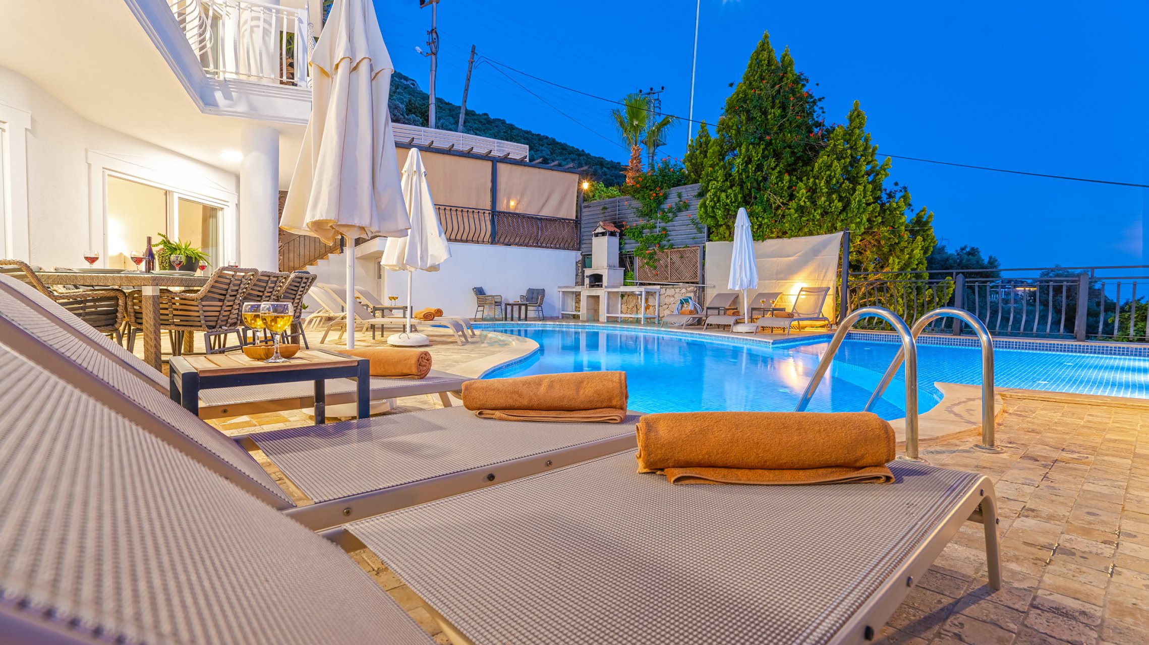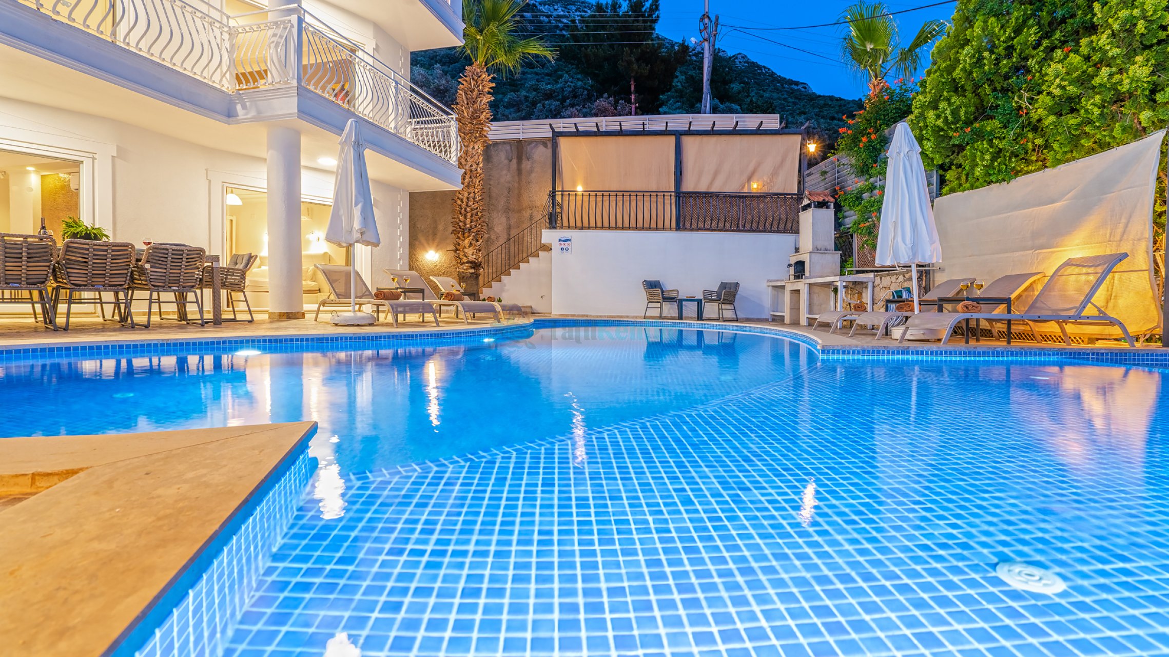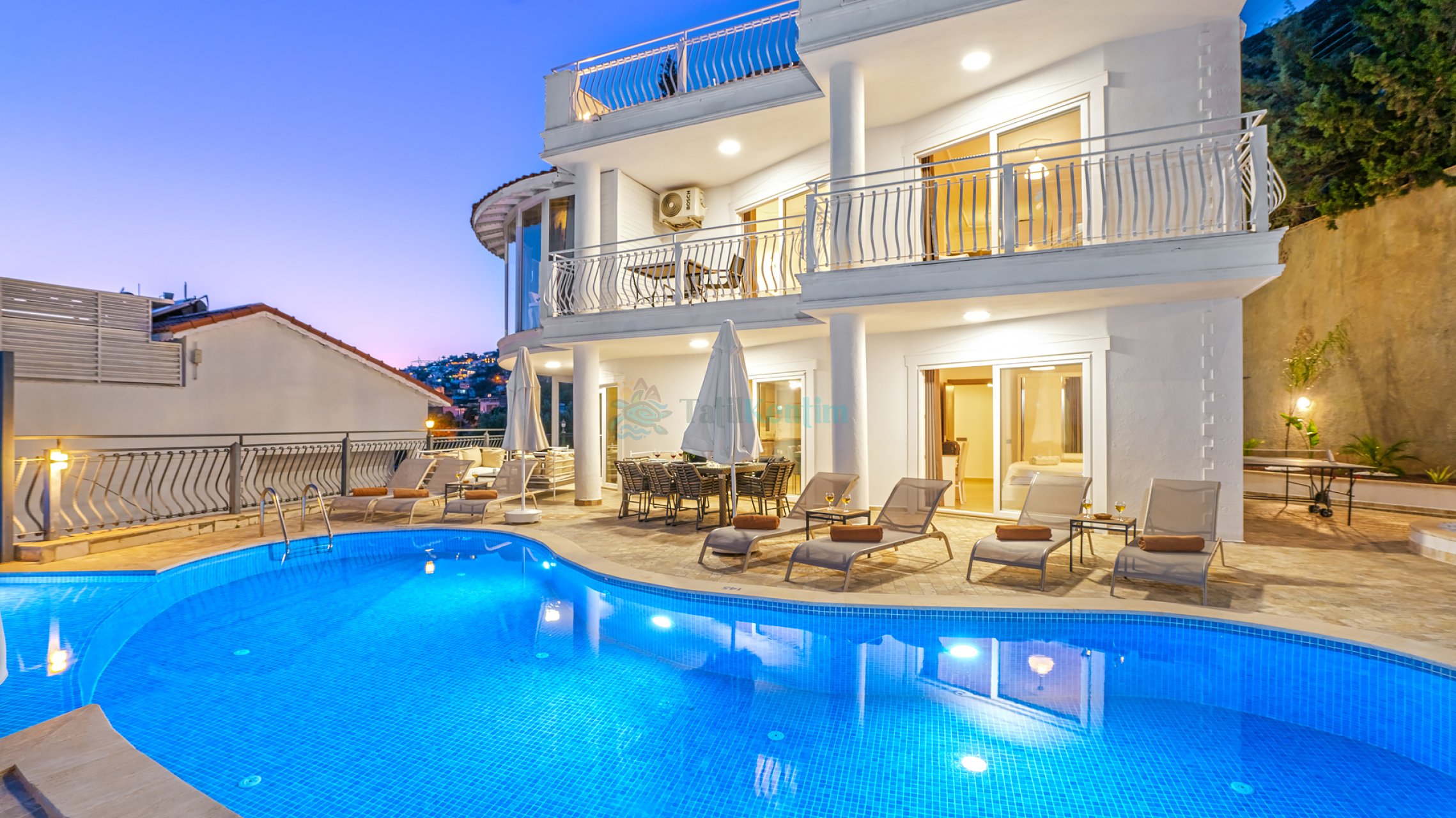 Villa Beyaz, Antalya Kaş Kalkan mevkiinde merkeze ve denize yakın konumlanmış, muazzam deniz manzarasına hakim, 5 yatak odası ile 10 kişilik konaklama kapasitesine sahip, geniş ailelere ve kalabalık arkadaş gruplarına hitap eden kiralık lüks tatil villasıdır. Villamızda bütün bir yılın stresini atabileceğiniz özel havuzu ve jakuzisi olup, kış aylarında da konaklama yapabileceğiniz ısıtmalı kapalı havuzu bulunmaktadır. Geniş terasında tatilin tadını çıkarabileceğiniz barbeküsü bulunmaktadır. Villa Beyaz, modern yapıda tasarlanmış, şık mimaride dizayn edilmiş, rahat ve konforlu bir tatil seçeneği sunmaktadır.