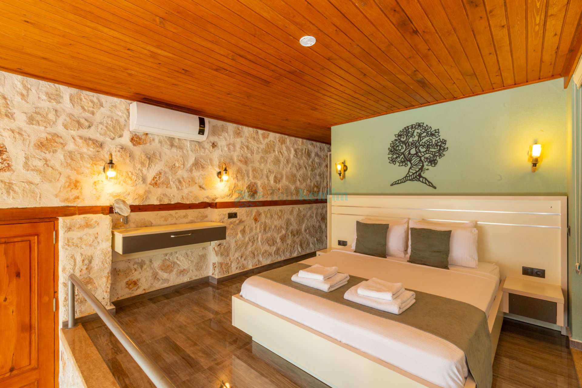 Yatak odası içerisinde, 1 adet çift kişilik yatak, klima, bebek yatağı, komodin, jakuzi, ısıtmalı kapalı iç havuz, banyo ve tuvalet yer almaktadır.