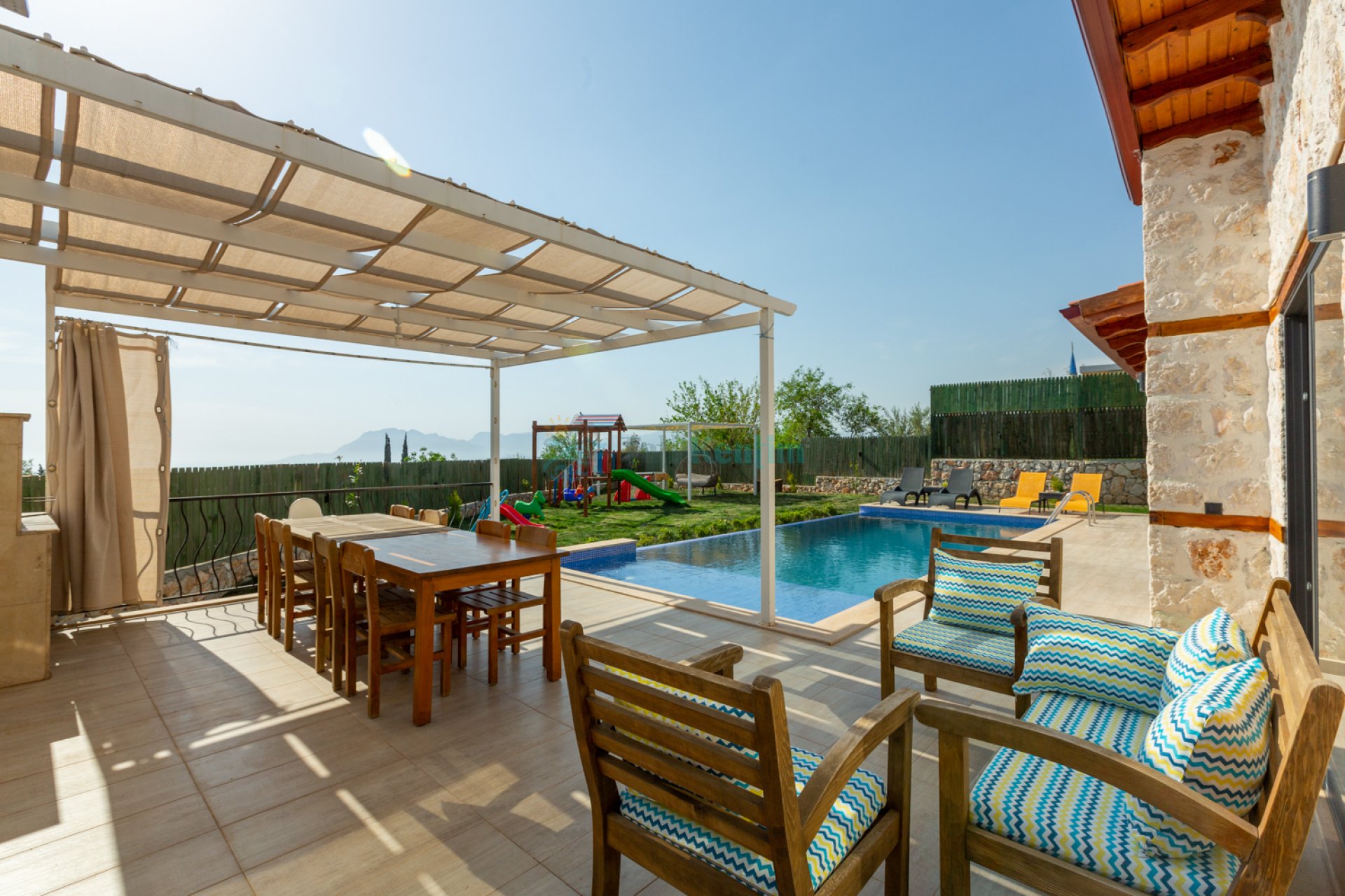 Villa Chakra, Kalkan Üzümlü mevkiinde konumlanan, doğa ile iç içe ve muhafazakar konseptte tasarlanmış özel bir tatil villasıdır. 4 Kişilik konaklama kapasitesine sahip olan villamızda 2 yatak odası ve 2 banyo bulunmaktadır. Konforlu ve şık detaylarla dekore edilen odalar, misafirlerimize rahat ve keyifli bir tatil sunar. Yatak odalarından birinde kapalı yüzme havuzu ve jakuzi yer almakta olup, dört mevsim ayrıcalıklı bir konaklama imkanı sağlamaktadır. Geniş ve korunaklı bahçesinde özel yüzme havuzu, yemek masası, oyun alanı ve langırt bulunmaktadır. Aileniz ve sevdiklerinizle hem eğlenceli hem de huzurlu vakit geçirebileceğiniz şekilde tasarlanmıştır. Doğa manzarası eşliğinde, gözlerden uzak ve konforlu bir tatil arayan misafirler için Villa Charka İdeal bir seçenektir.