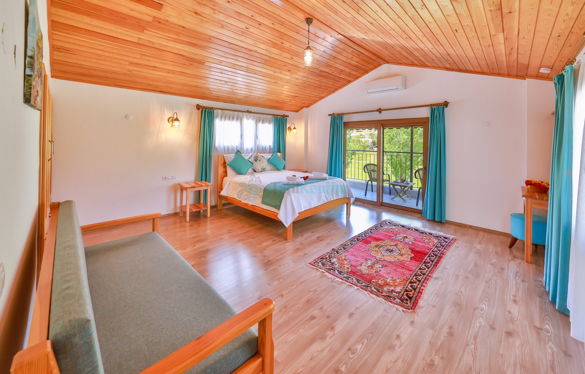 Villamızın bu odasında 1 adet çift kişilik yatak , klima , elbise dolabı, komodin, makyaj masası, banyo ve tuvalet bulunmaktadır.