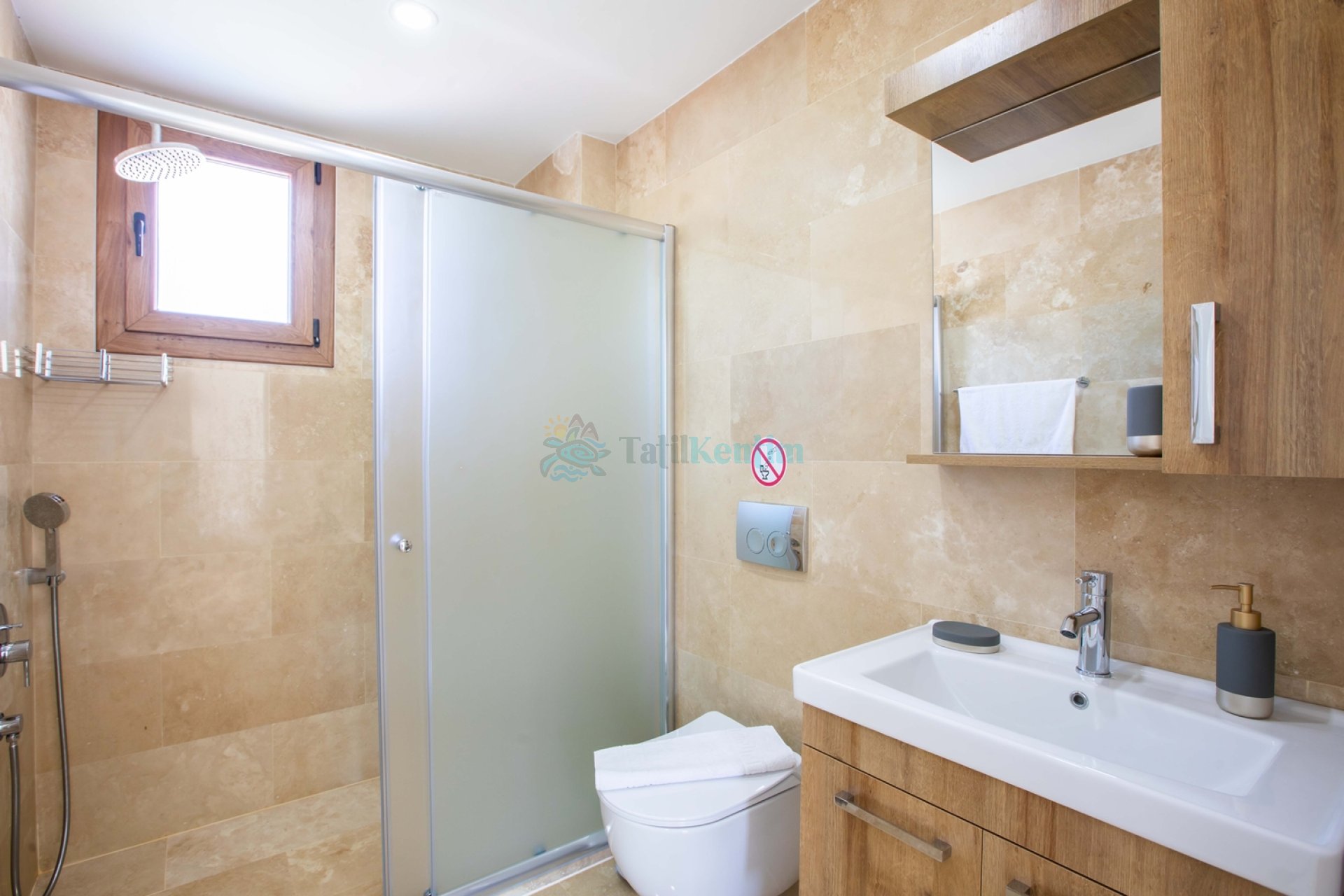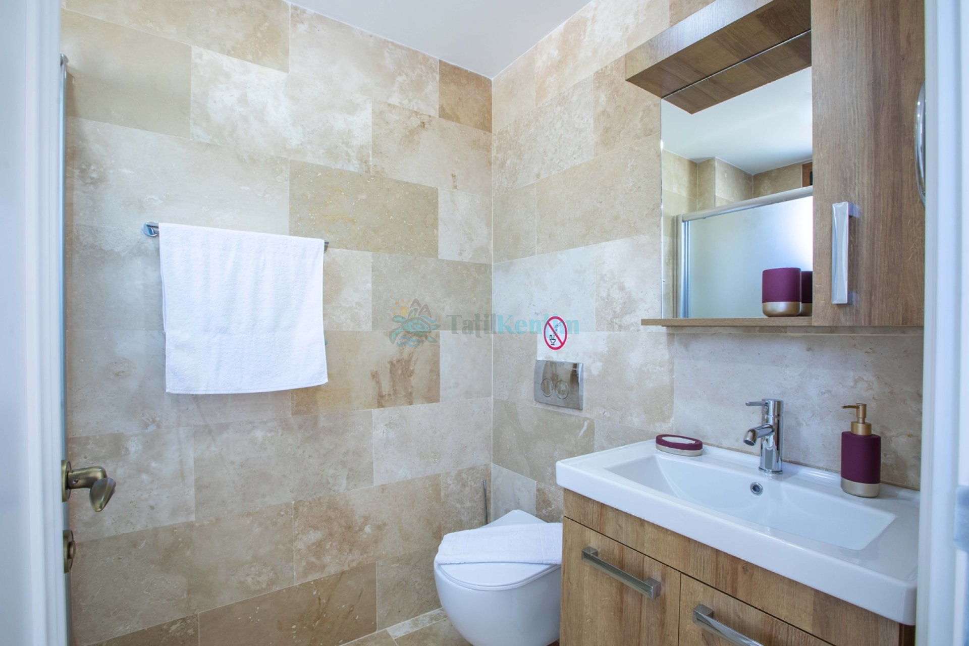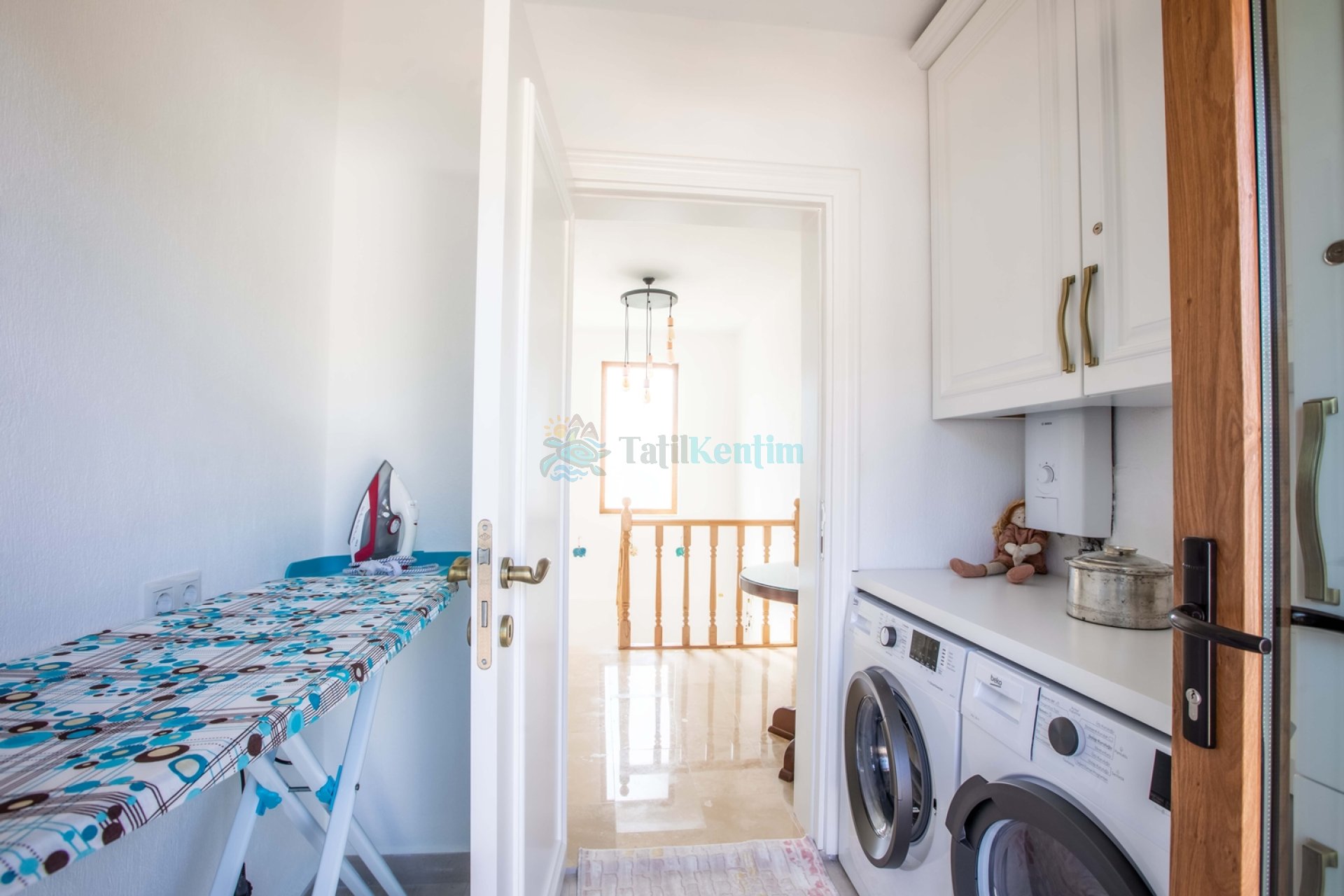 Mutfak: Amerikan mutfak içerisinde, buzdolabı, bulaşık makinesi, çamaşır makinesi, yemek masası, yemek takımı, ankastre fırın, tost makinesi, ankastre ocak, çaydanlık, su ısıtıcısı, tava, tencere takımı ve gerekli olan tüm mutfak gereçleri yer almaktadır.