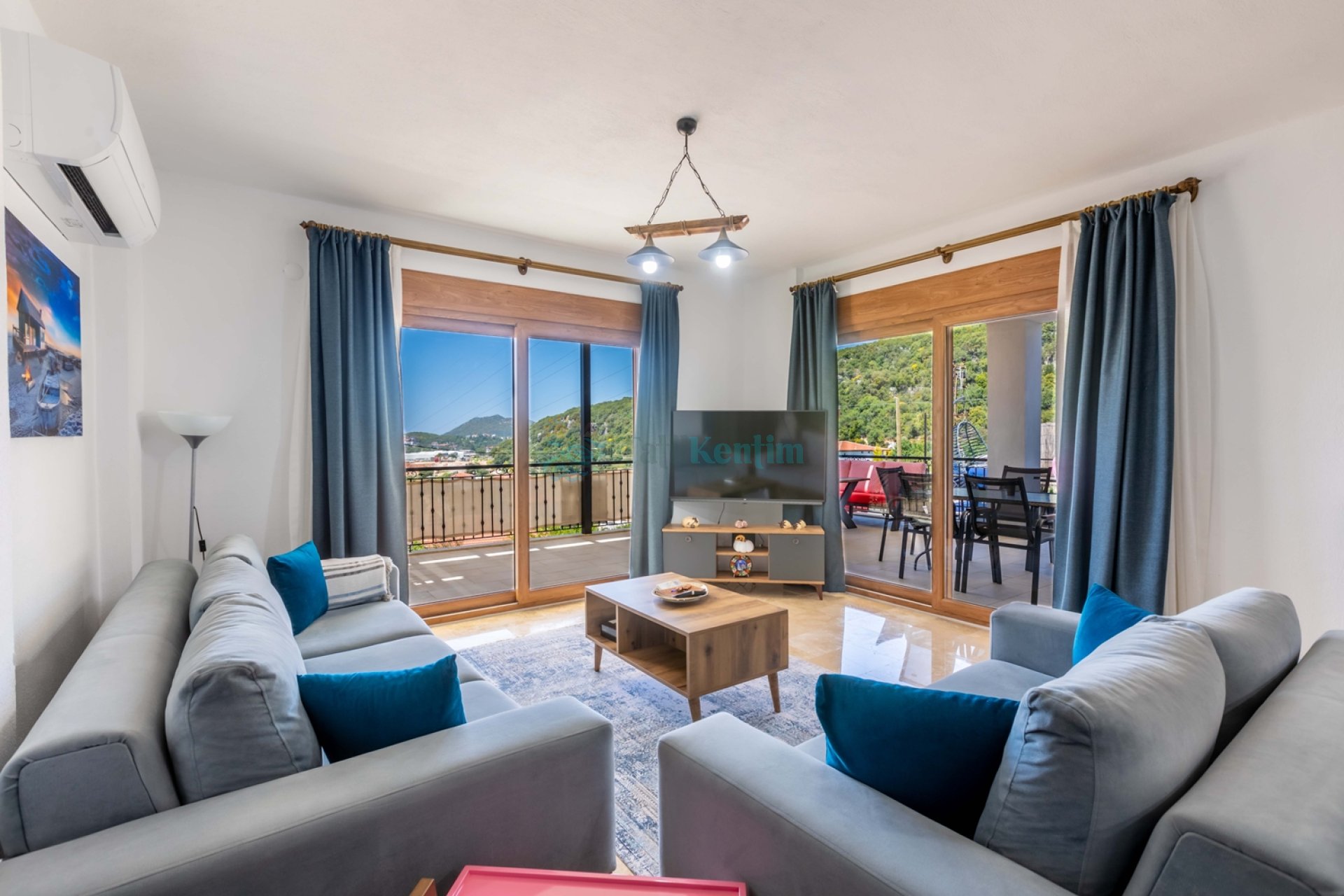 Salon: Koltuk takımı, orta sehpa, TV, TV ünitesi, klima, uydu alıcısı yer almaktadır.
