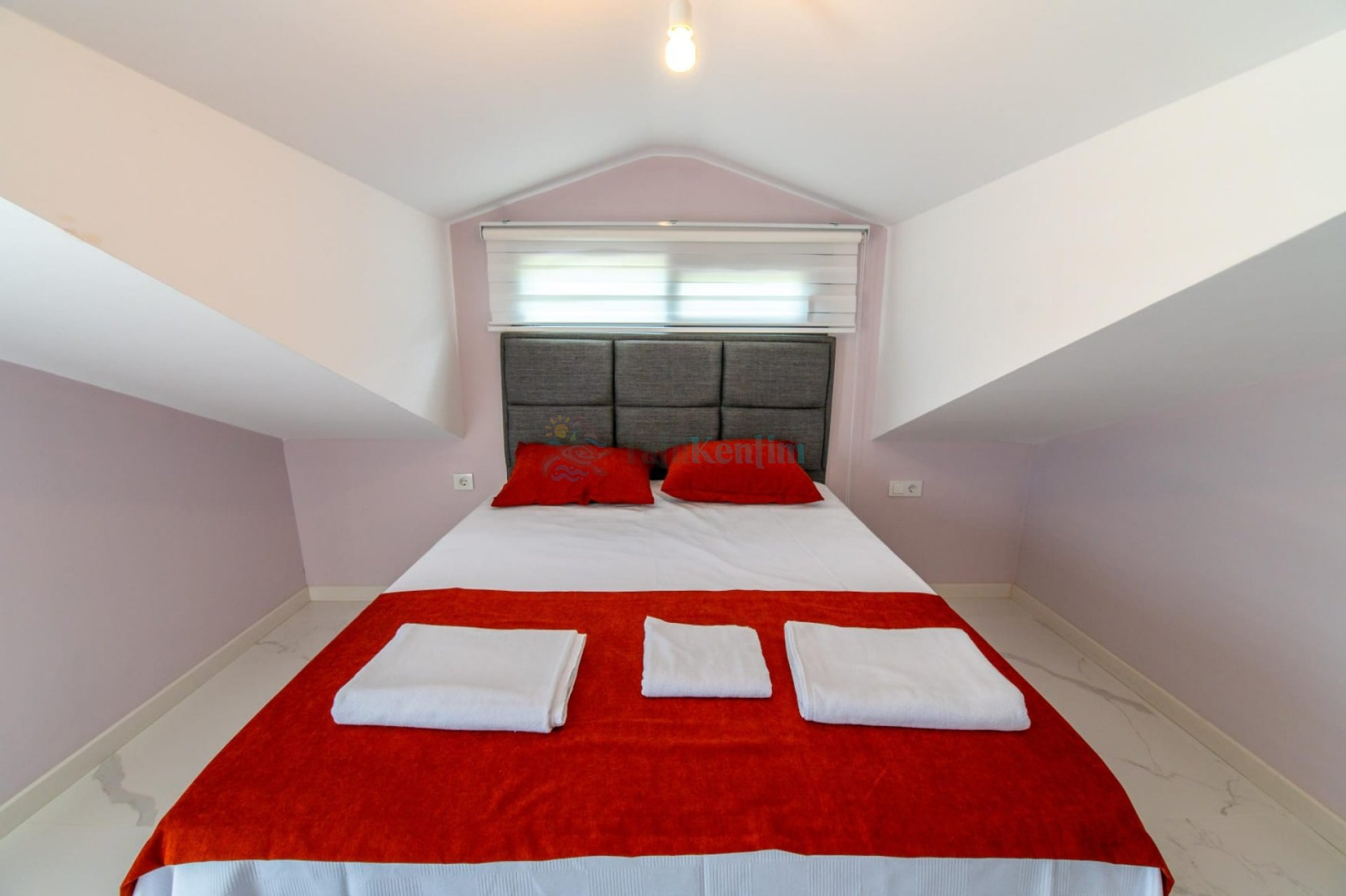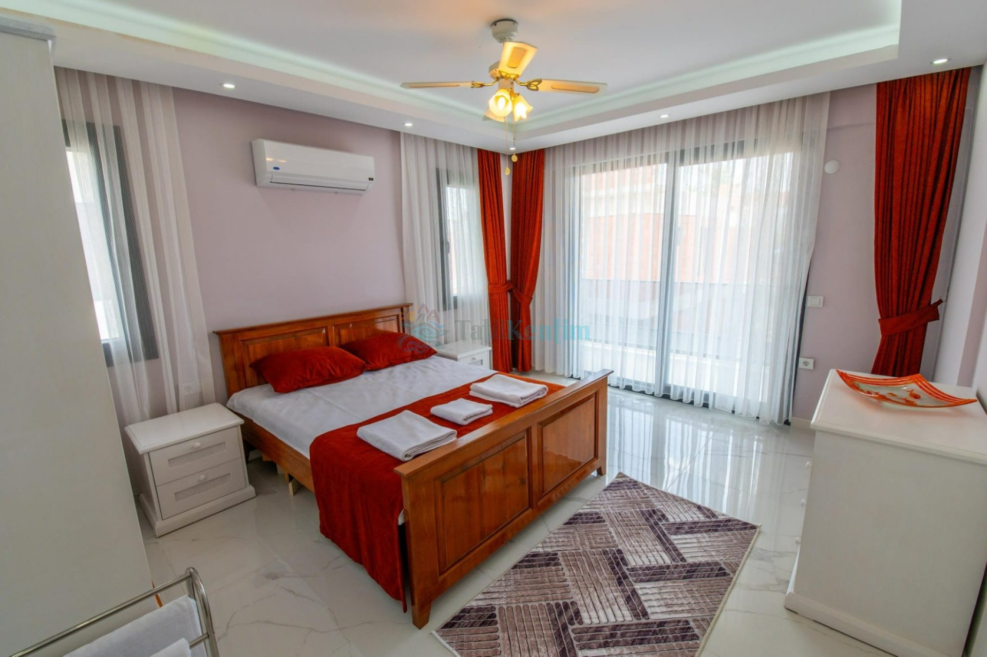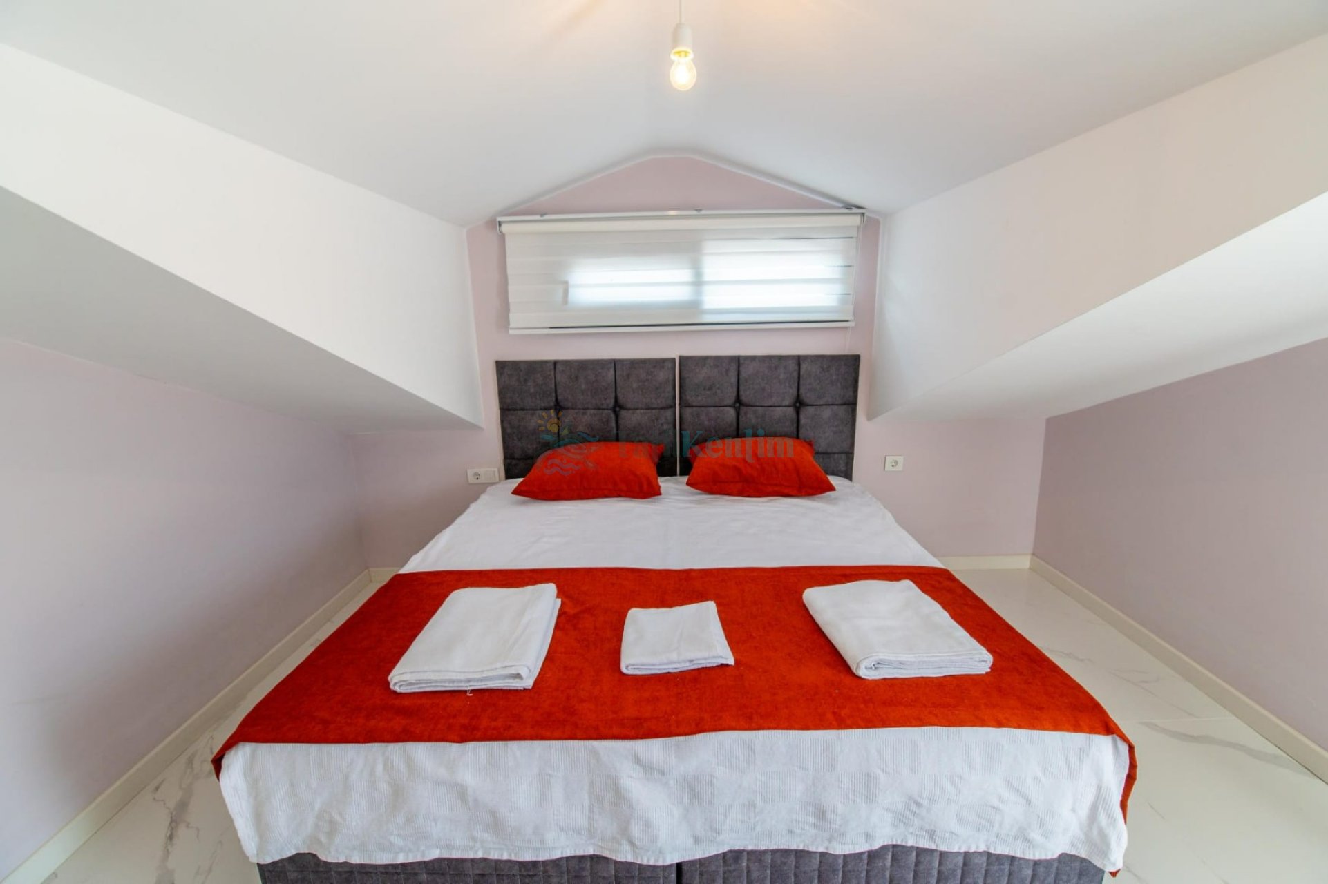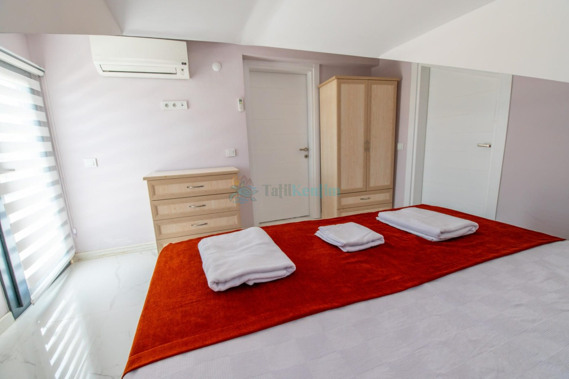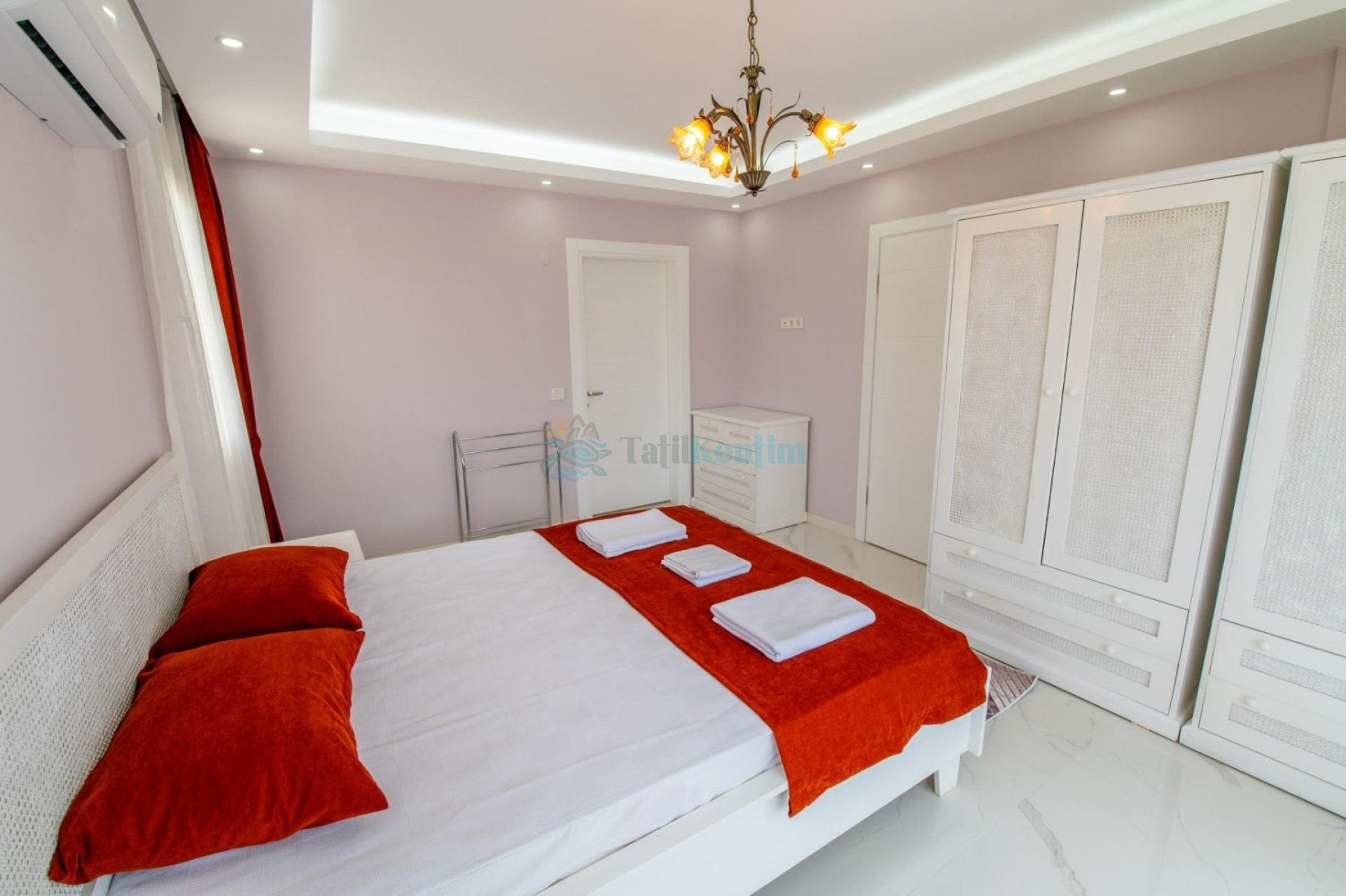 3. Yatak Odası: 1 çift kişilik yatak, komodin, elbise dolabı, makyaj masası, klima, banyo ve tuvalet yer almaktadır.