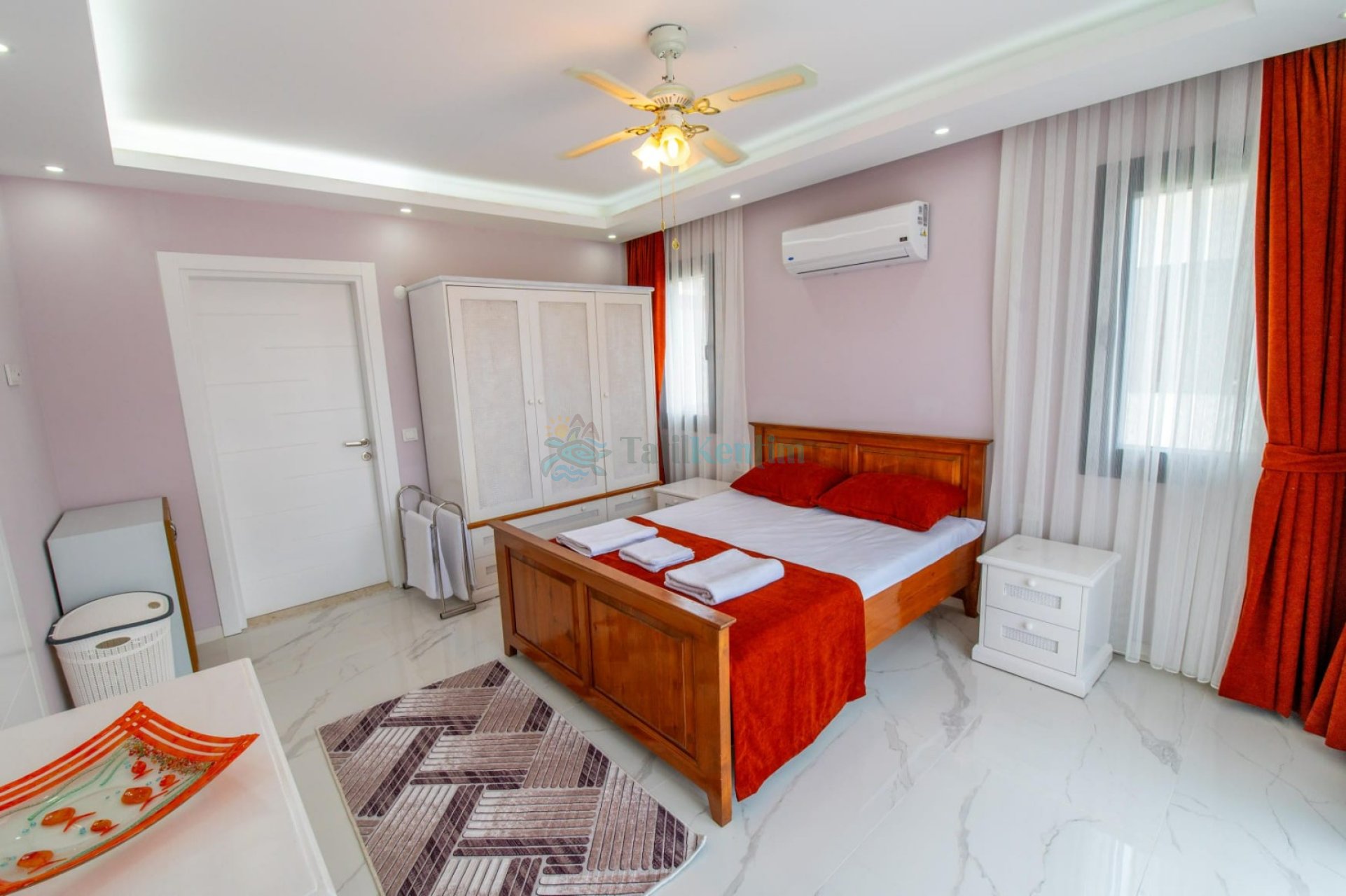 4. Yatak Odası: 1 çift kişilik yatak, komodin, elbise dolabı, makyaj masası, klima, banyo ve tuvalet yer almaktadır.