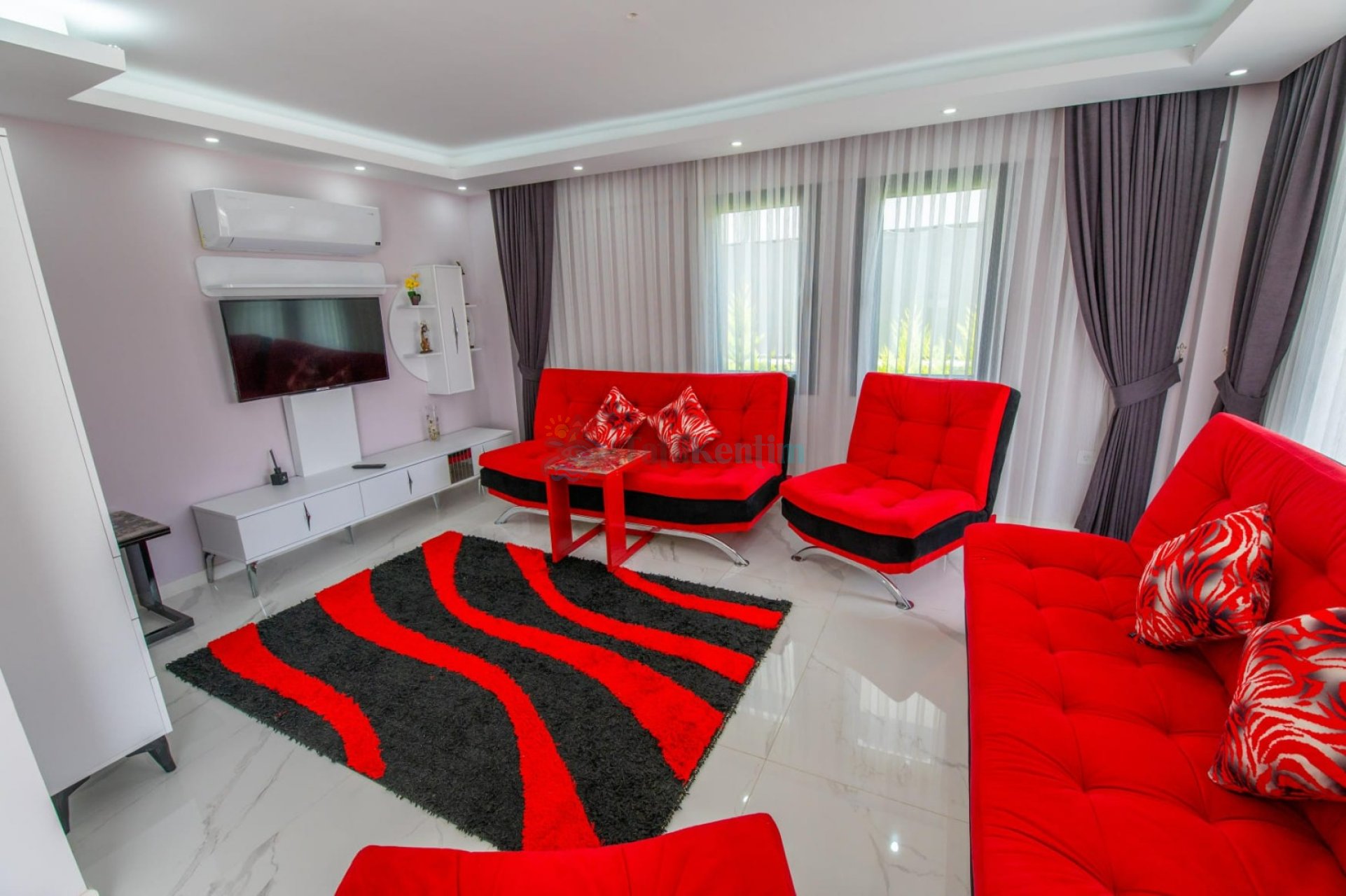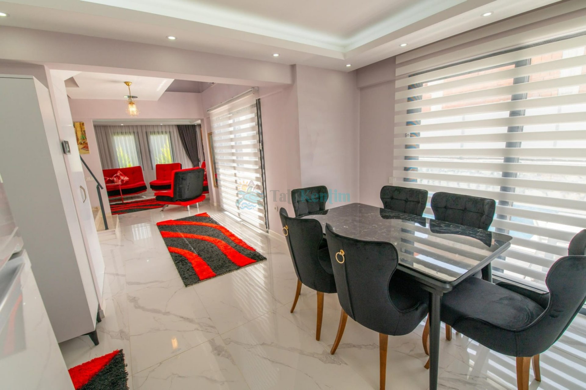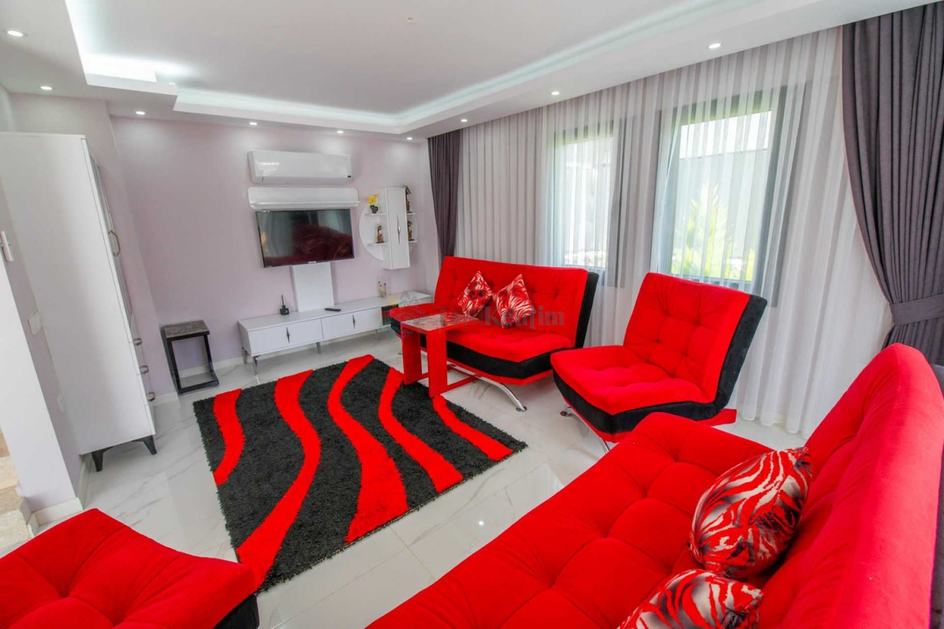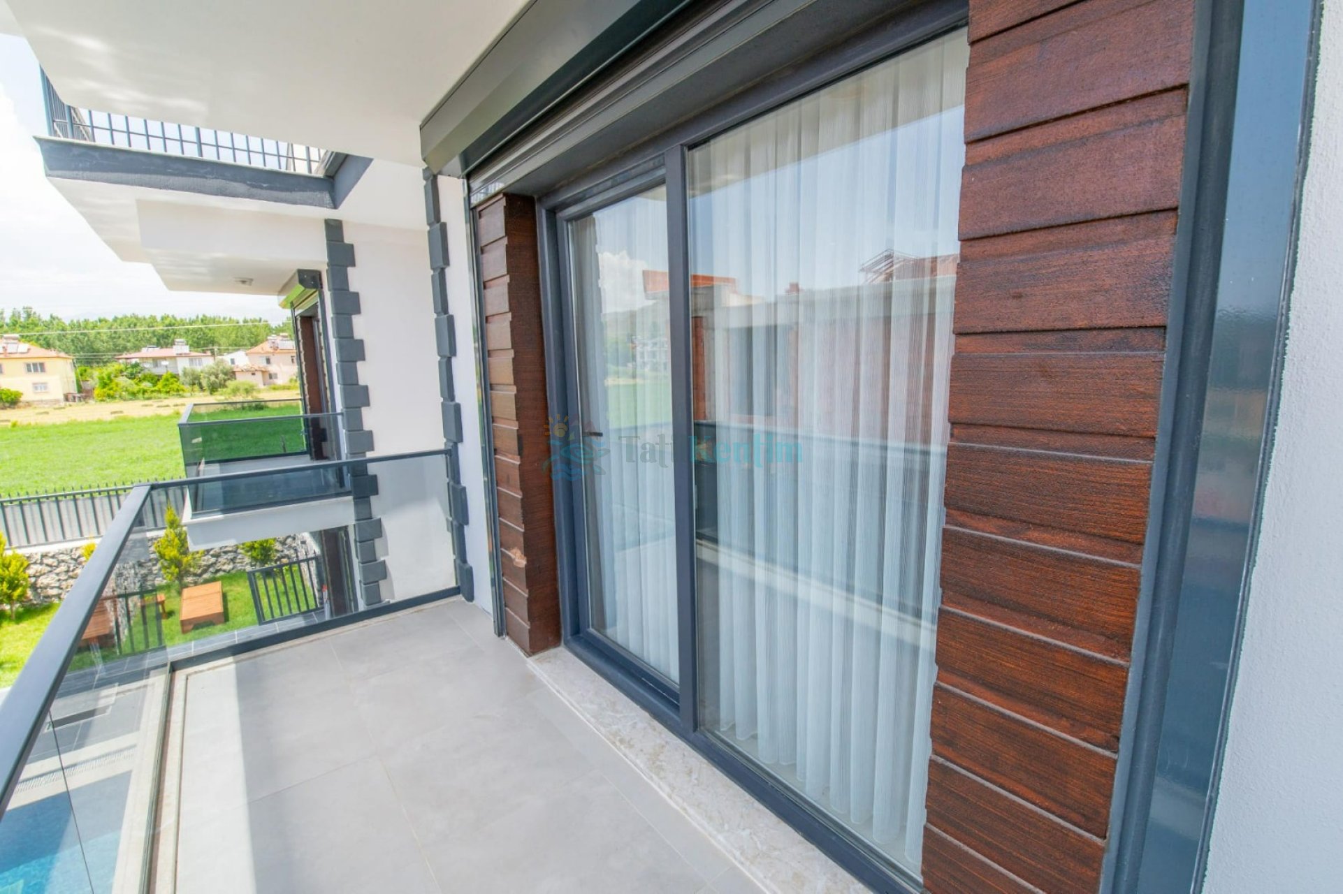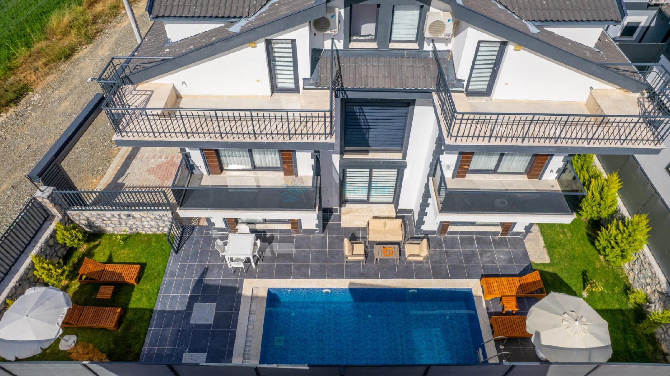 Salon : Modern ve lüks dizayna sahip salon içerisinde konforlu oturma grubu, TV, klima ve internet yer almaktadır. Salondan havuz terasına geçiş vardır.