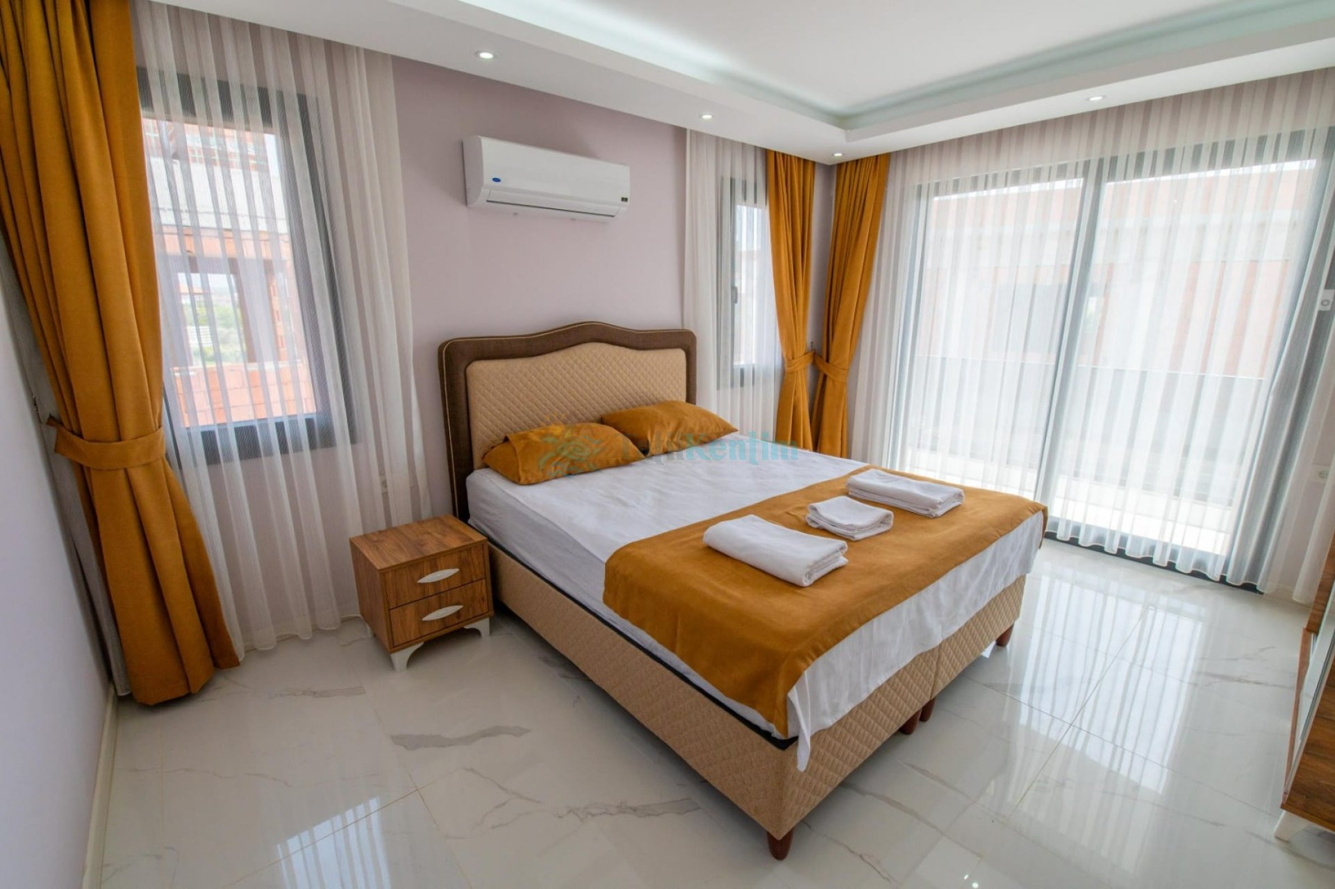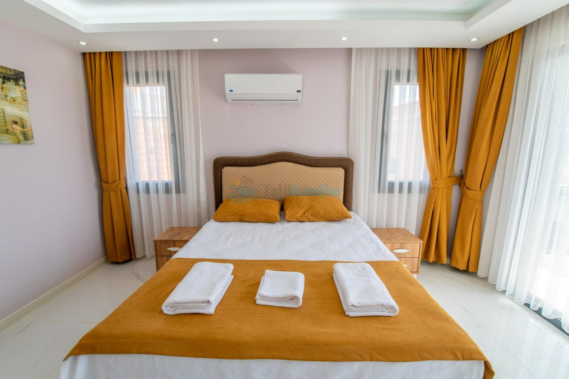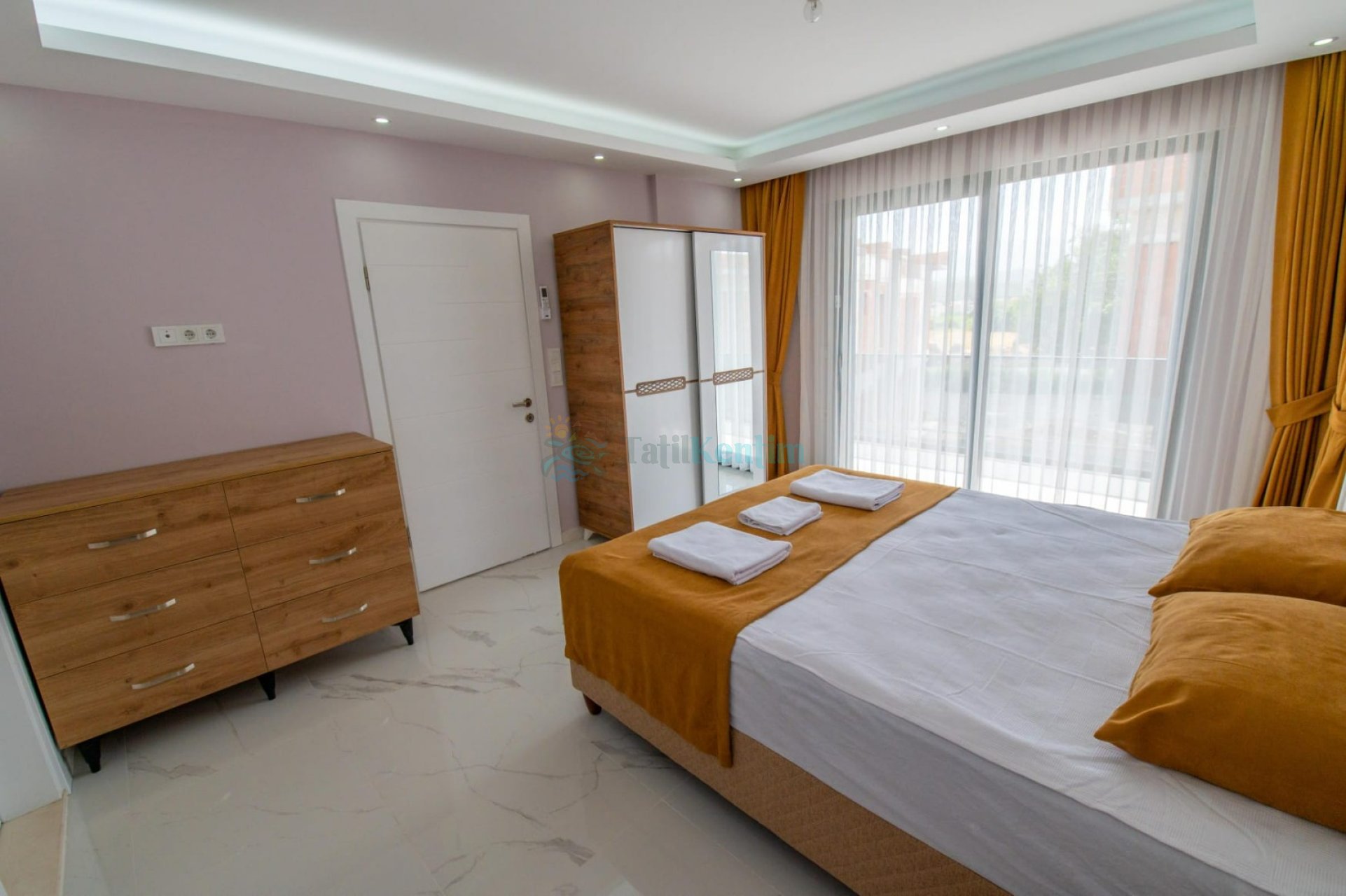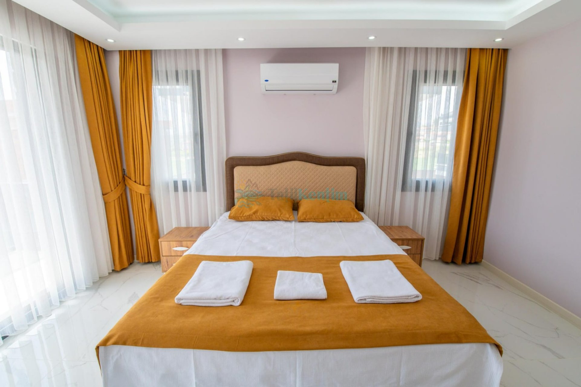 3. Yatak Odası: 1 çift kişilik yatak, komodin, elbise dolabı, makyaj masası, klima, banyo ve tuvalet yer almaktadır.