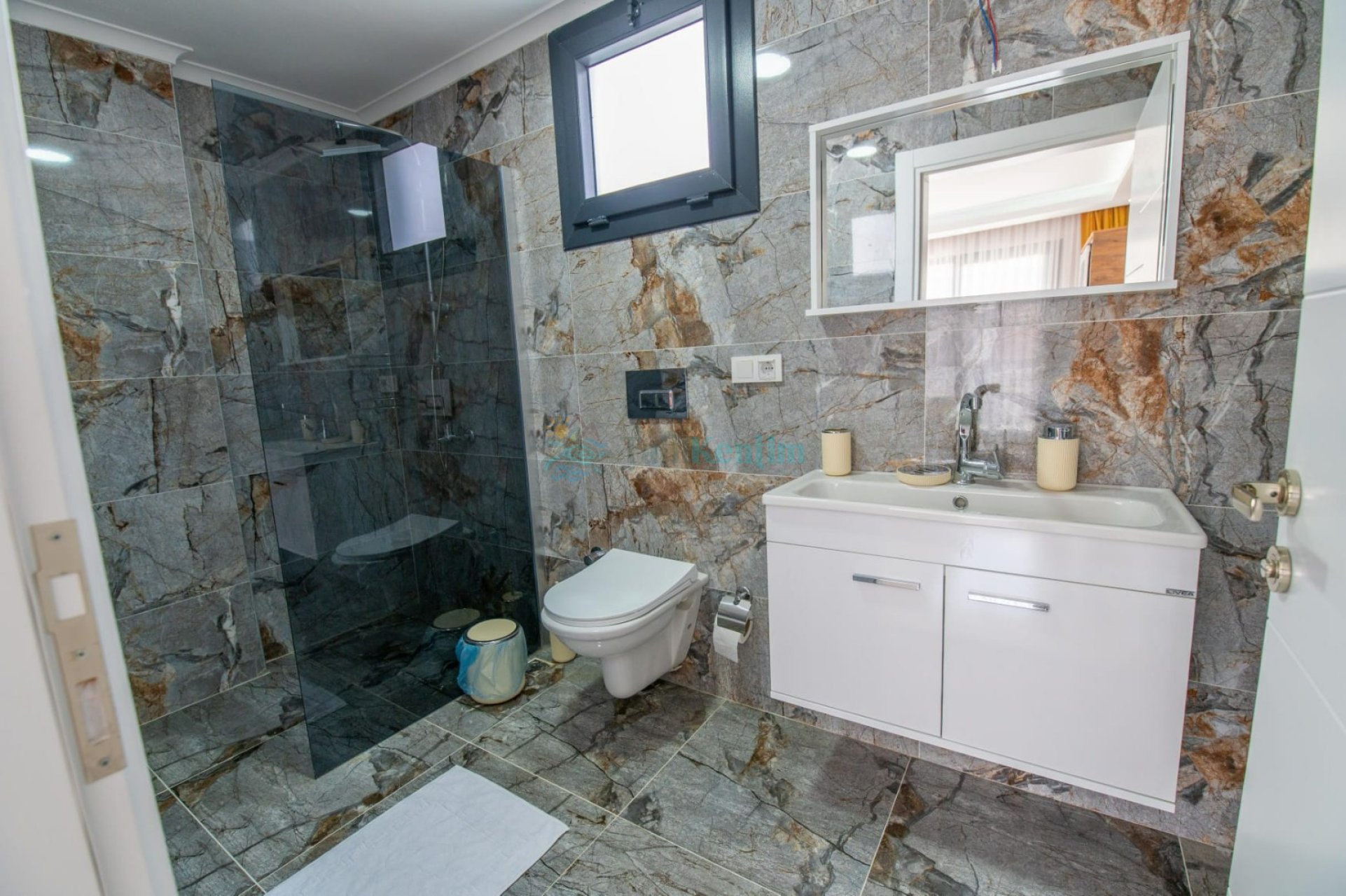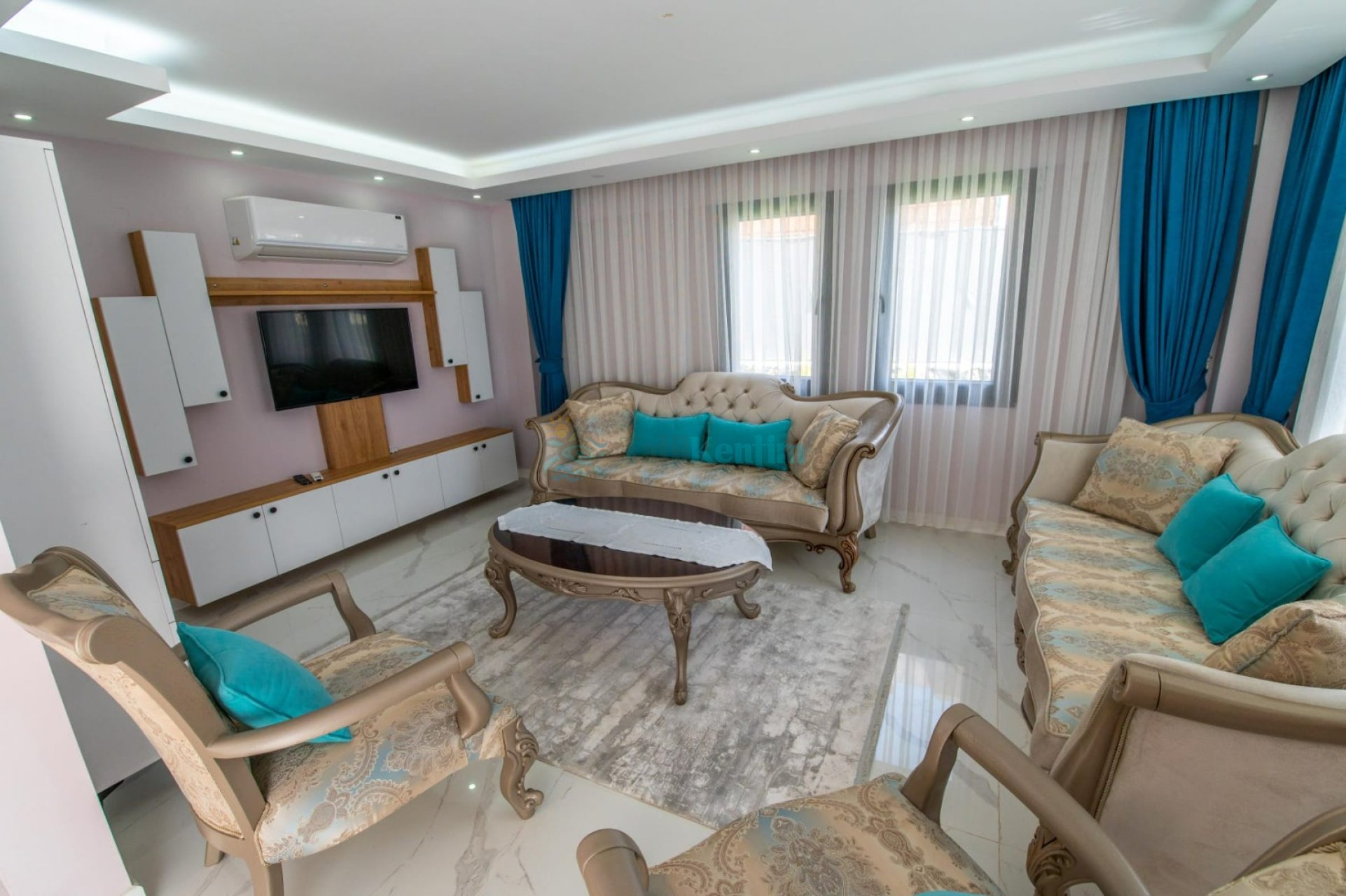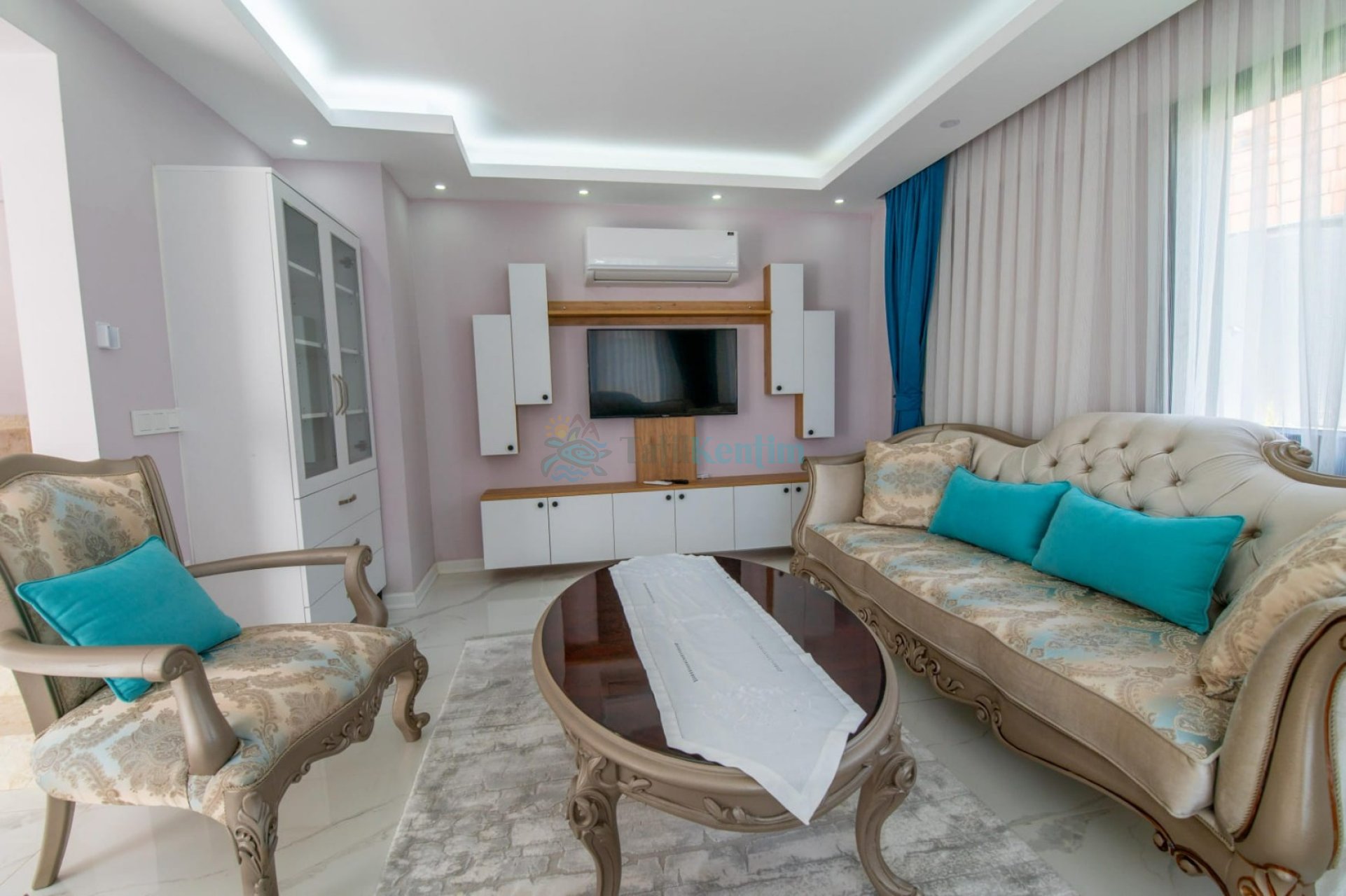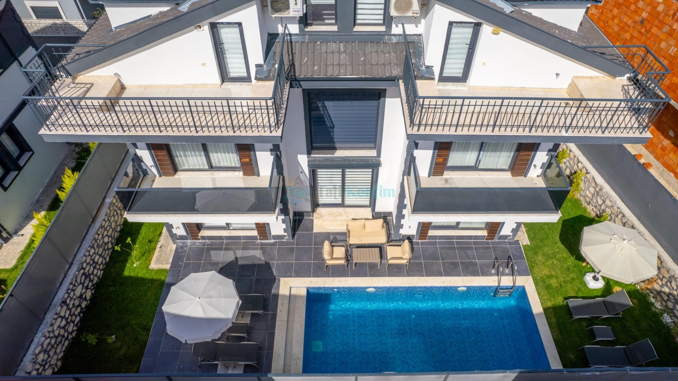 Salon : Modern ve lüks dizayna sahip salon içerisinde konforlu oturma grubu, TV, klima ve internet yer almaktadır. Salondan havuz terasına geçiş vardır.