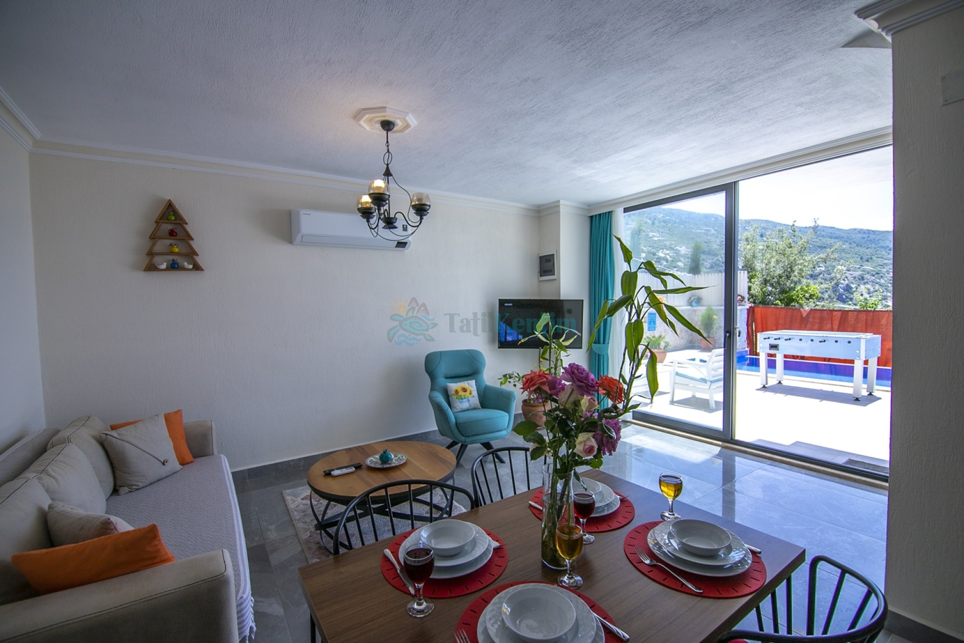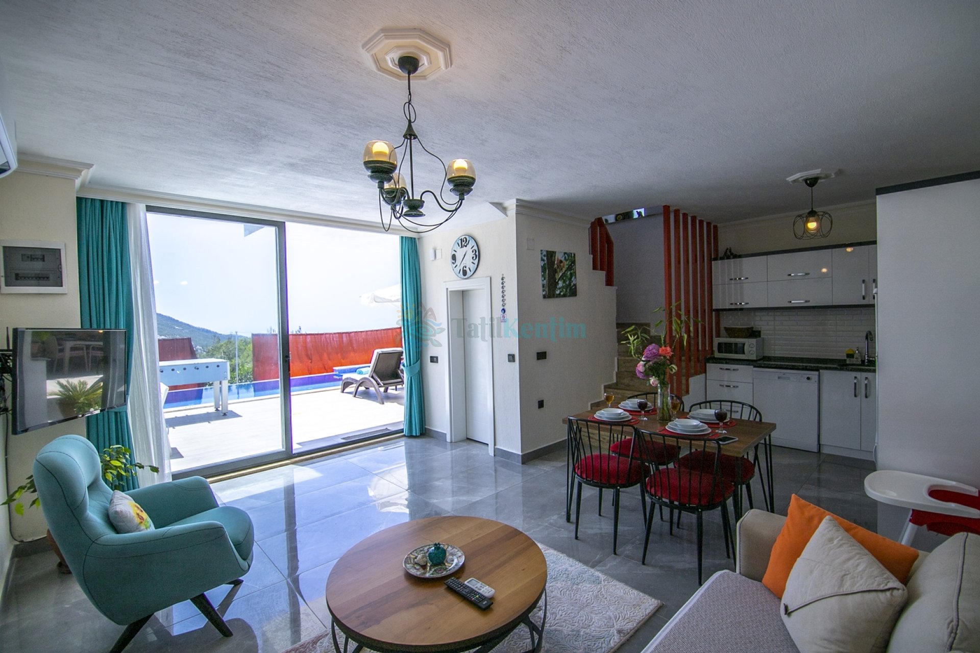 Villamızın salonu içerisinde, koltuk takımı, orta sehpa, TV, TV ünitesi, klima, uydu alıcısı yer almaktadır.