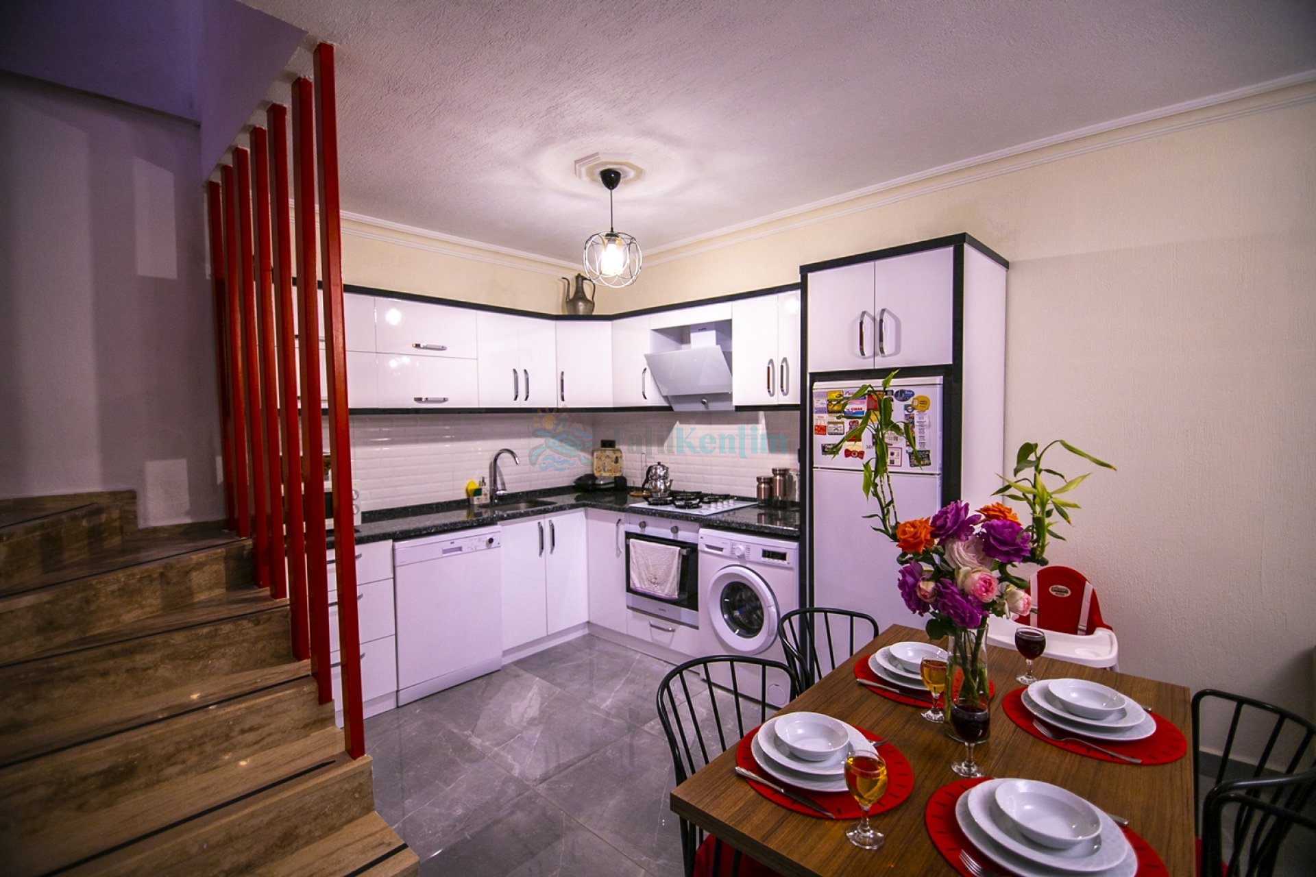 Amerikan mutfak içerisinde, buzdolabı, bulaşık makinası, çamaşır makinası, yemek masası, yemek takımı, ankastre fırın, tost makinası, ankastre ocak, çaydanlık, su ısıtıcısı, mikrodalga fırın, tava, tencere takımı ve gerekli olan tüm mutfak gereçleri yer almaktadır.
