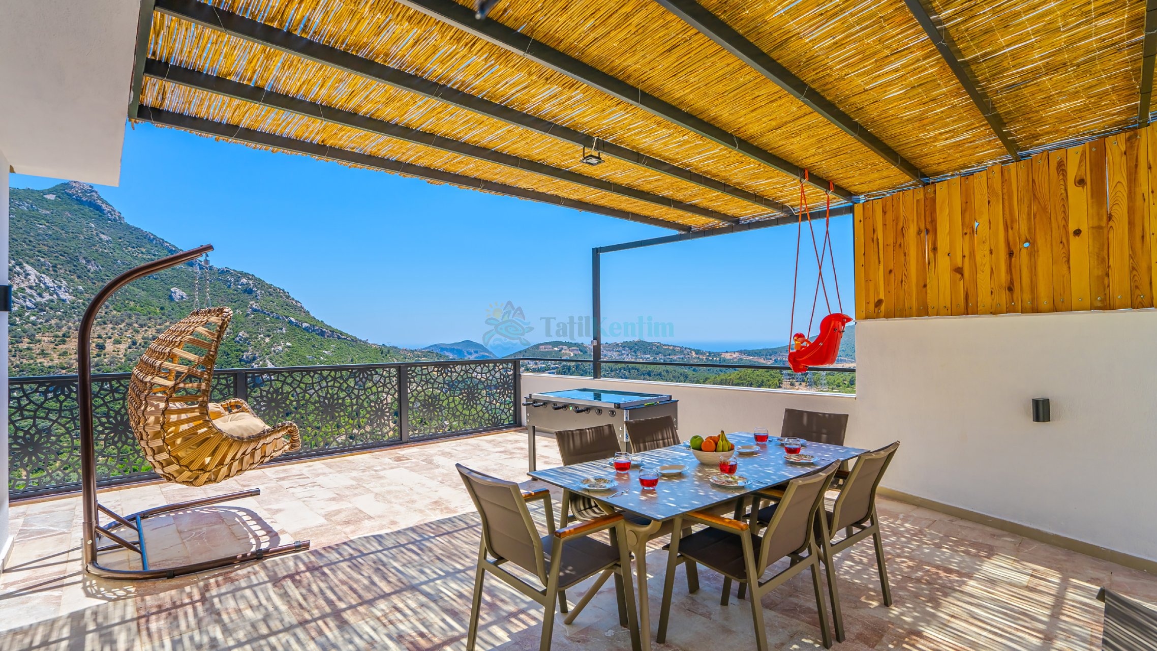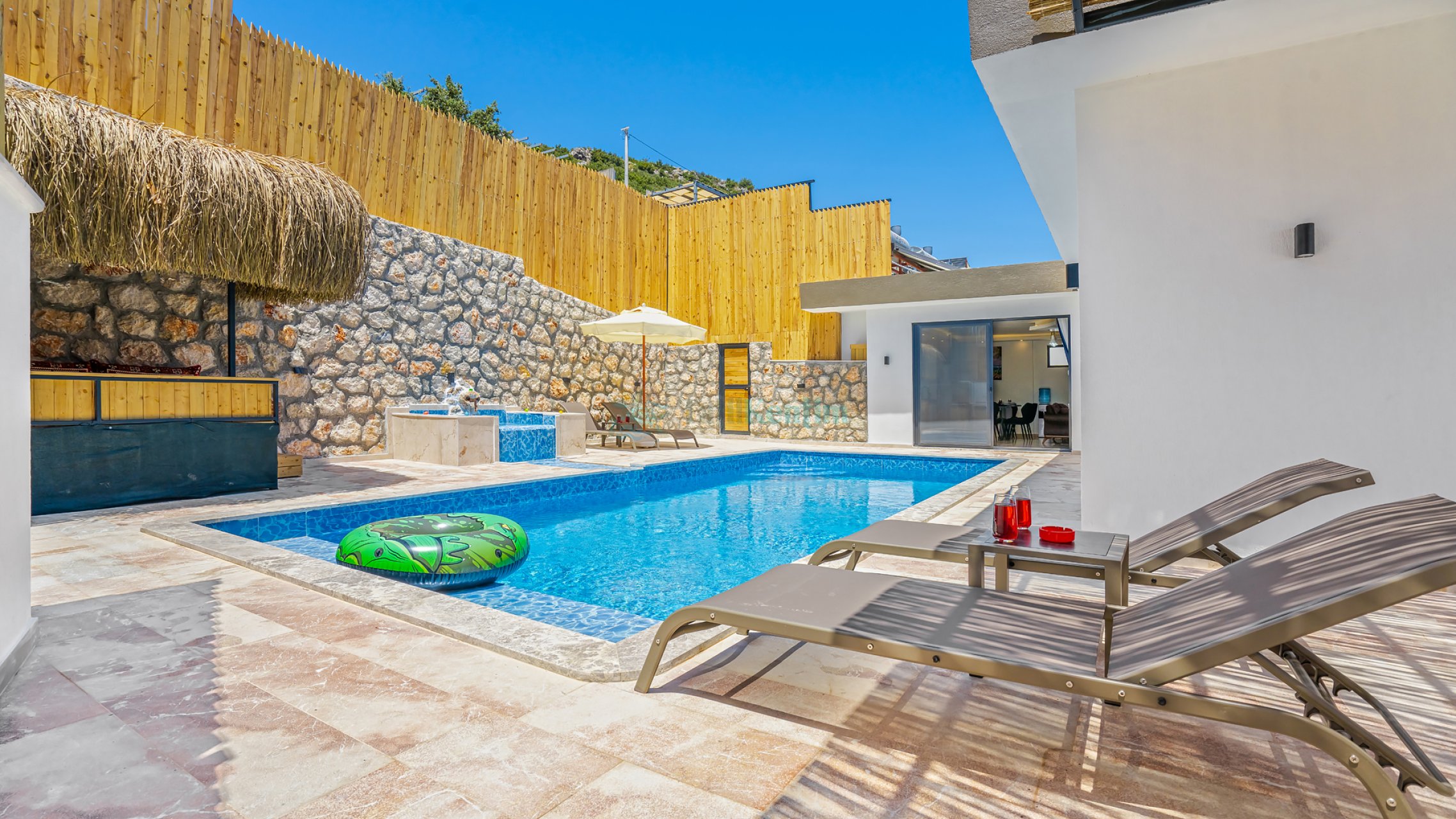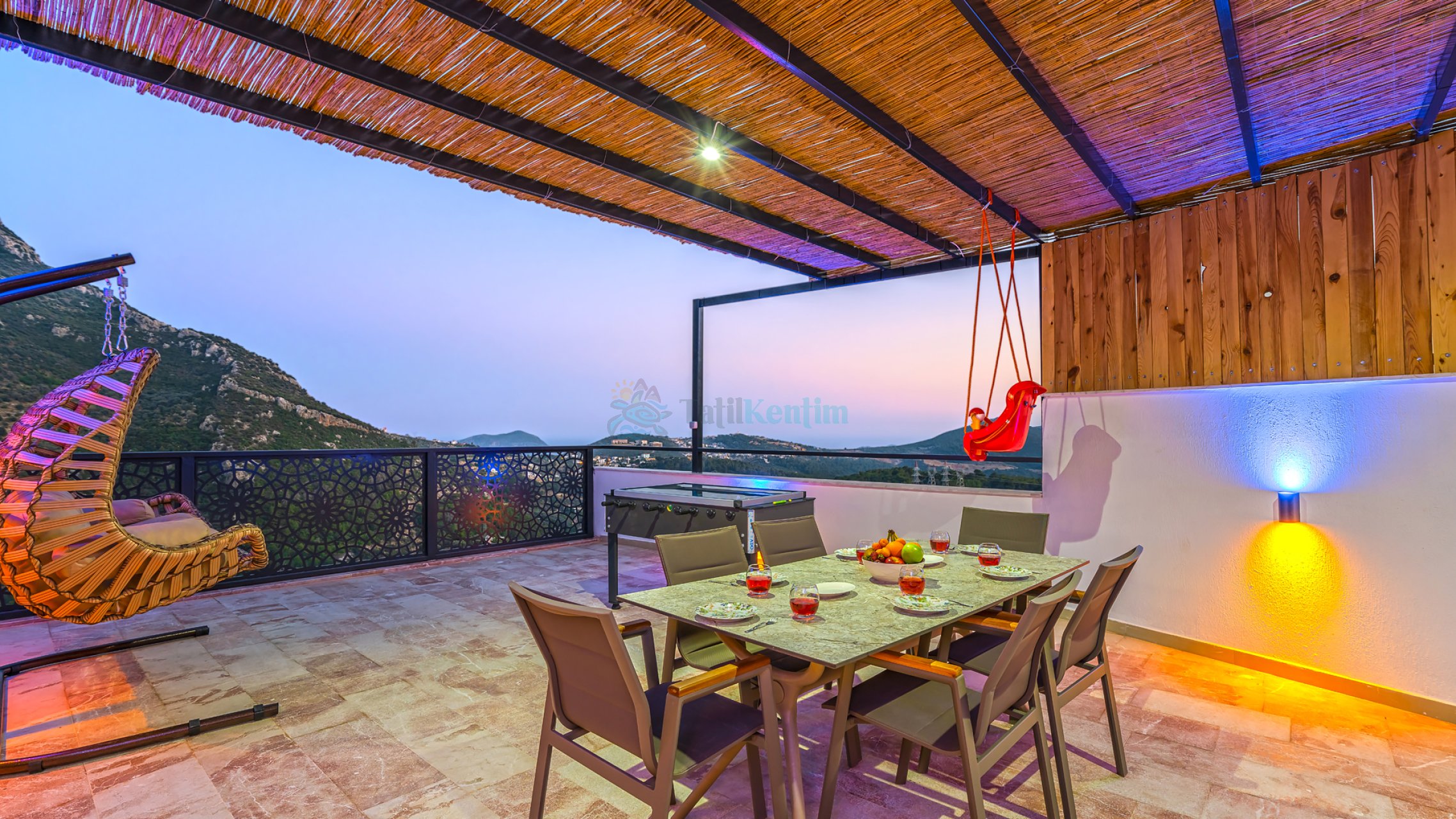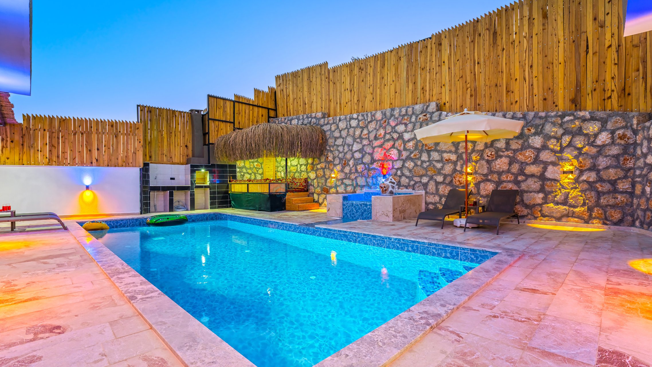 Villa Dimare 3, Kalkan İslamlar Bölgesinde yer alan, doğa içerisinde 2 yatak odalı 5 kişi konaklama kapasiteli kiralık bir villadır. Korunaklı havuzu ile muhafazakar aileler ve balayı çiftleri için ideal bir tatil villasıdır. Villa Dimare 3' ün havuz terası korunaklı olup, özel yüzme havuzu, barbekü alanı, bahçe mobilyaları ve köşk ile keyifli bir tatil imkanı sunar. Ayrıca villamızda langırt, salıncak, köşk, sauna ve tuz odası bulunmaktadır. İslamlar bölgesinin en önemli özelliklerinden birisi de yazın sıcak akşamlarında kalkan merkeze göre daha serin olmasıdır. İslamlar bölgesinin yüksek konumda bulunmasıyla temiz havanın ve eşsiz doğa manzarasının tadını çıkarabileceğiniz harika bir tatil sizleri bekliyor.