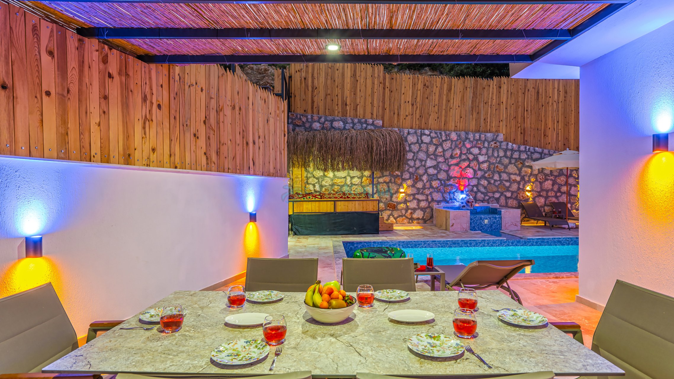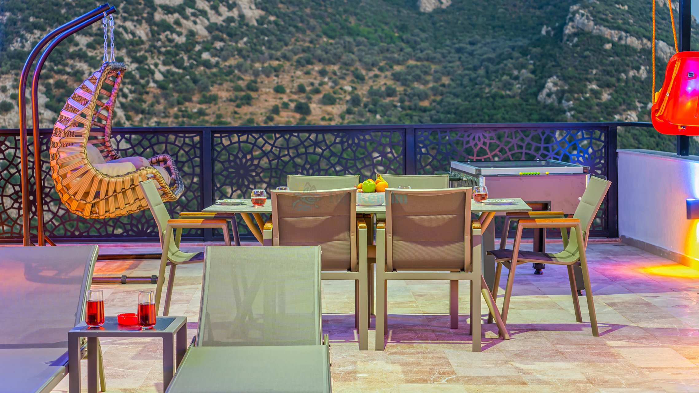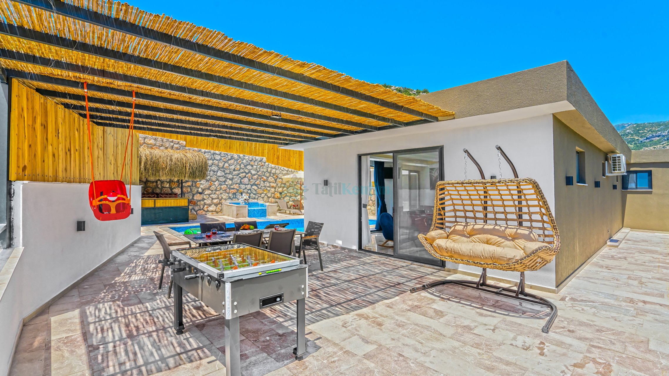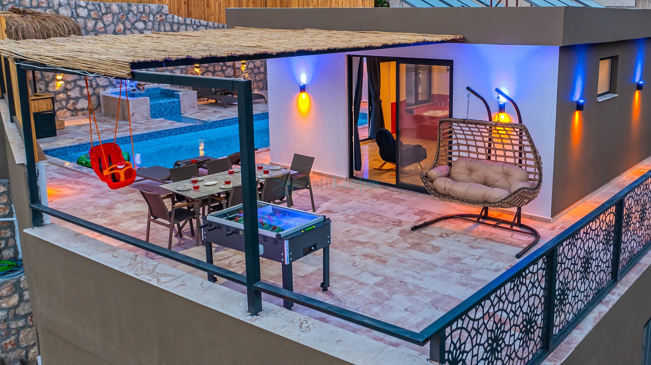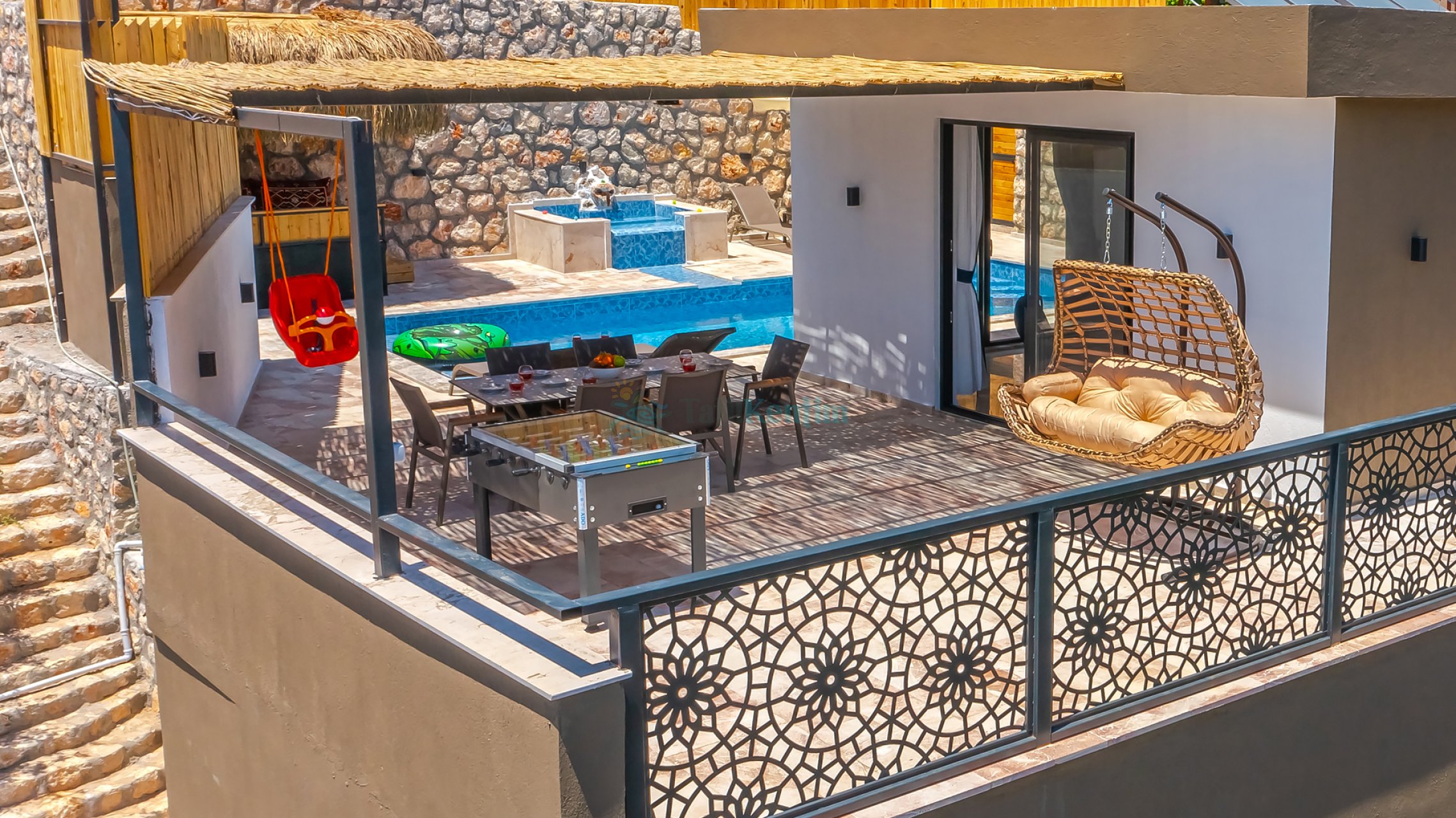 Villa Dimare 3, Kalkan İslamlar Bölgesinde yer alan, doğa içerisinde 2 yatak odalı 5 kişi konaklama kapasiteli kiralık bir villadır. Korunaklı havuzu ile muhafazakar aileler ve balayı çiftleri için ideal bir tatil villasıdır. Villa Dimare 3' ün havuz terası korunaklı olup, özel yüzme havuzu, barbekü alanı, bahçe mobilyaları ve köşk ile keyifli bir tatil imkanı sunar. Ayrıca villamızda langırt, salıncak, köşk, sauna ve tuz odası bulunmaktadır. İslamlar bölgesinin en önemli özelliklerinden birisi de yazın sıcak akşamlarında kalkan merkeze göre daha serin olmasıdır. İslamlar bölgesinin yüksek konumda bulunmasıyla temiz havanın ve eşsiz doğa manzarasının tadını çıkarabileceğiniz harika bir tatil sizleri bekliyor.