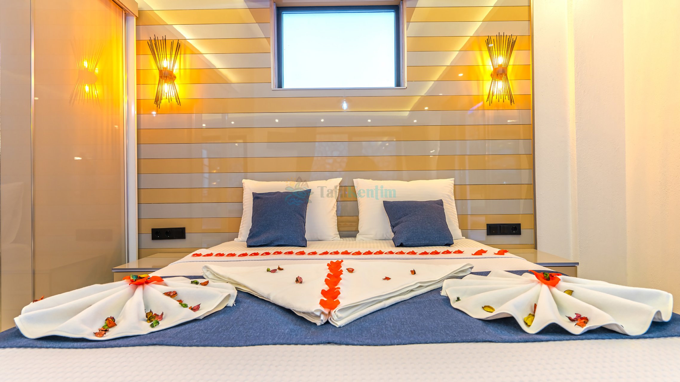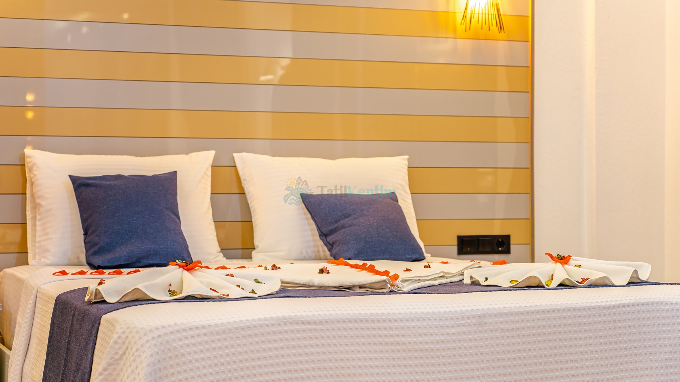1. Yatak Odası : 1 Çift Kişilik Yatak, Klima, Elbise Dolabı, Jakuzi, Komodin, Makyaj Masası, banyo ve tuvalet bulunmaktadır.
