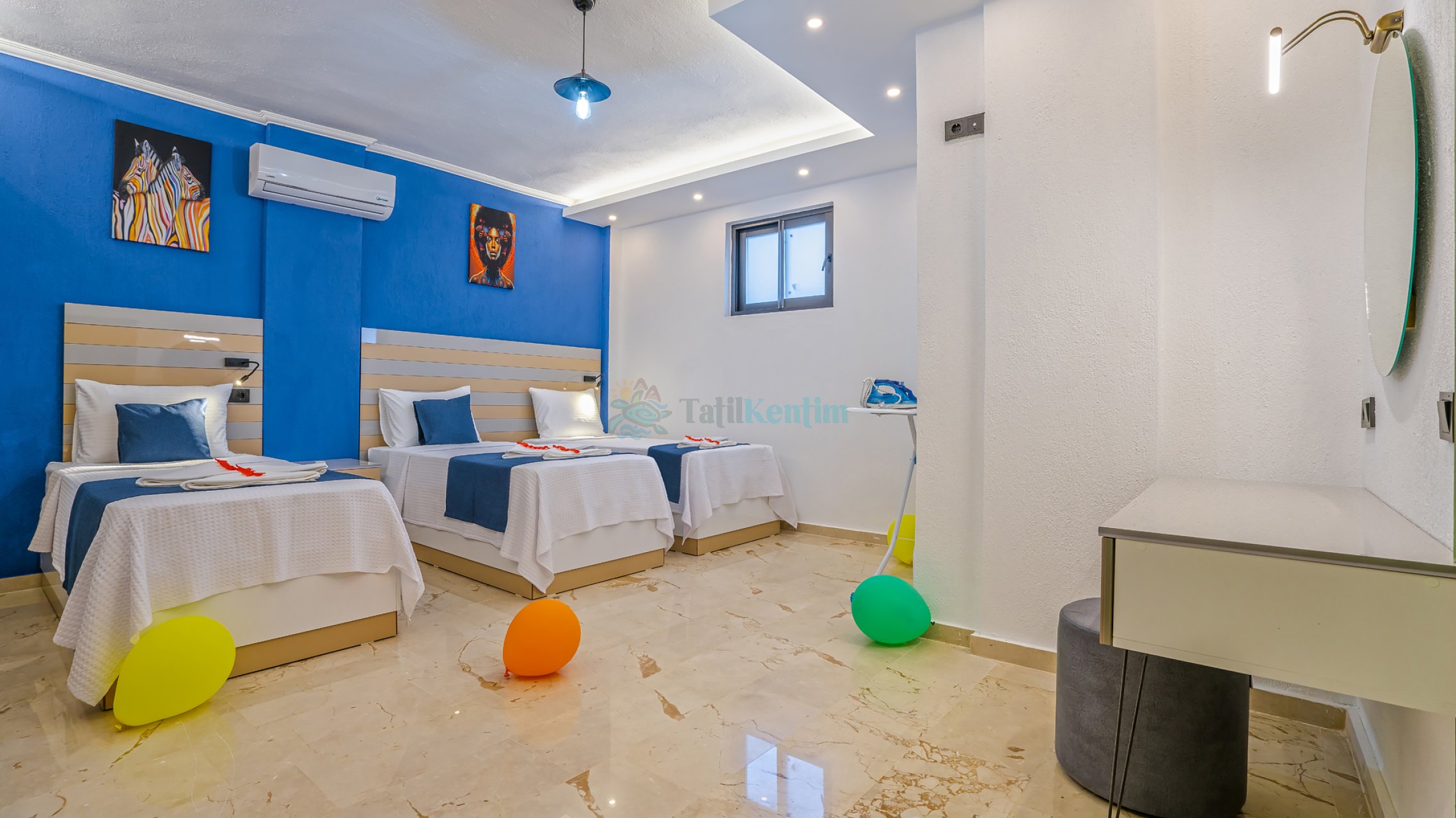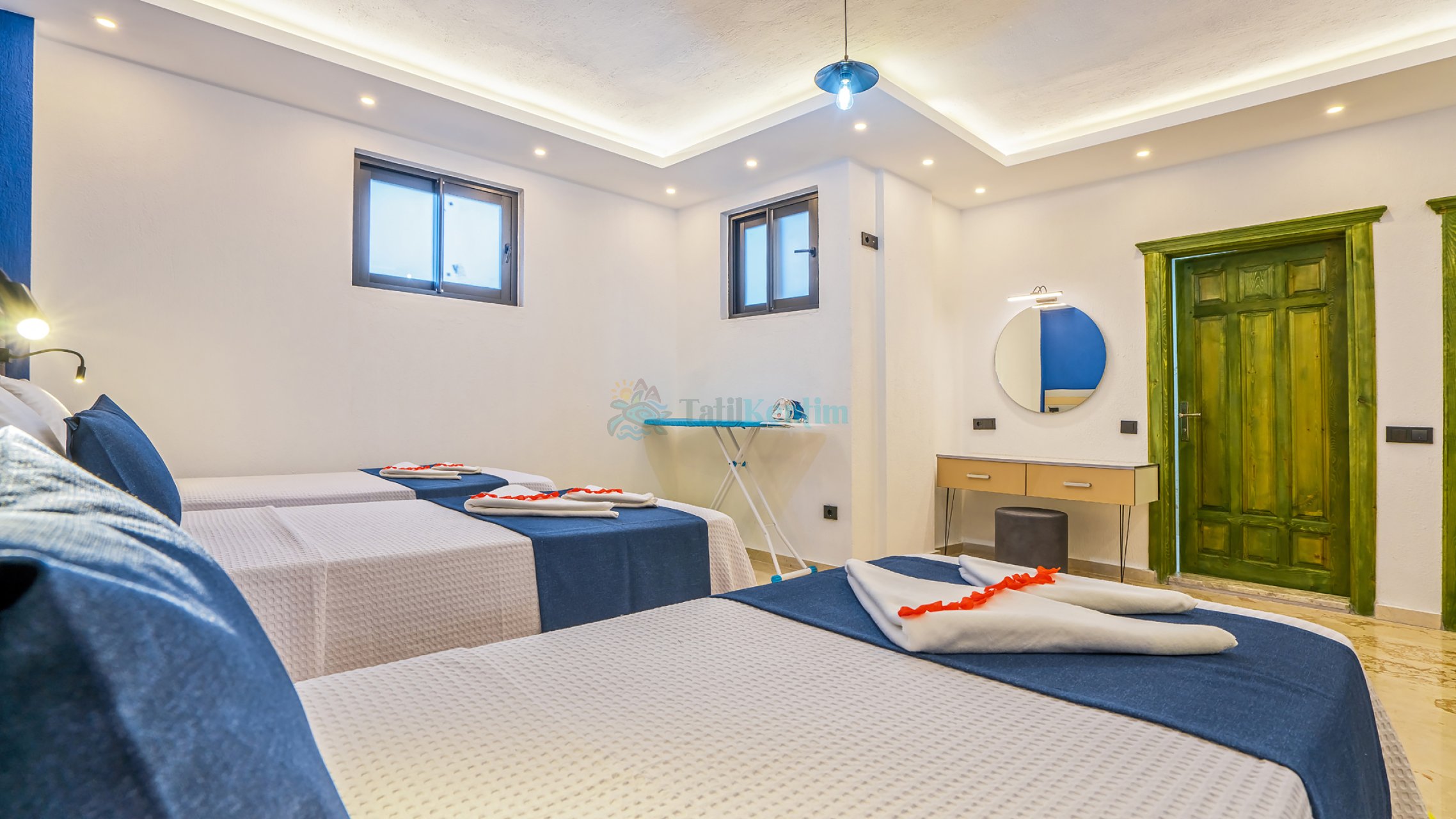 2. Yatak Odası : 3 Tek Kişilik Yatak, Klima, Elbise Dolabı, Komodin, Makyaj Masası, banyo ve tuvalet bulunmaktadır.
