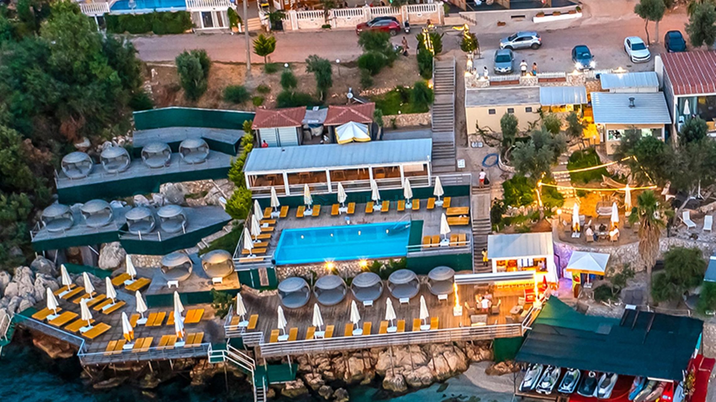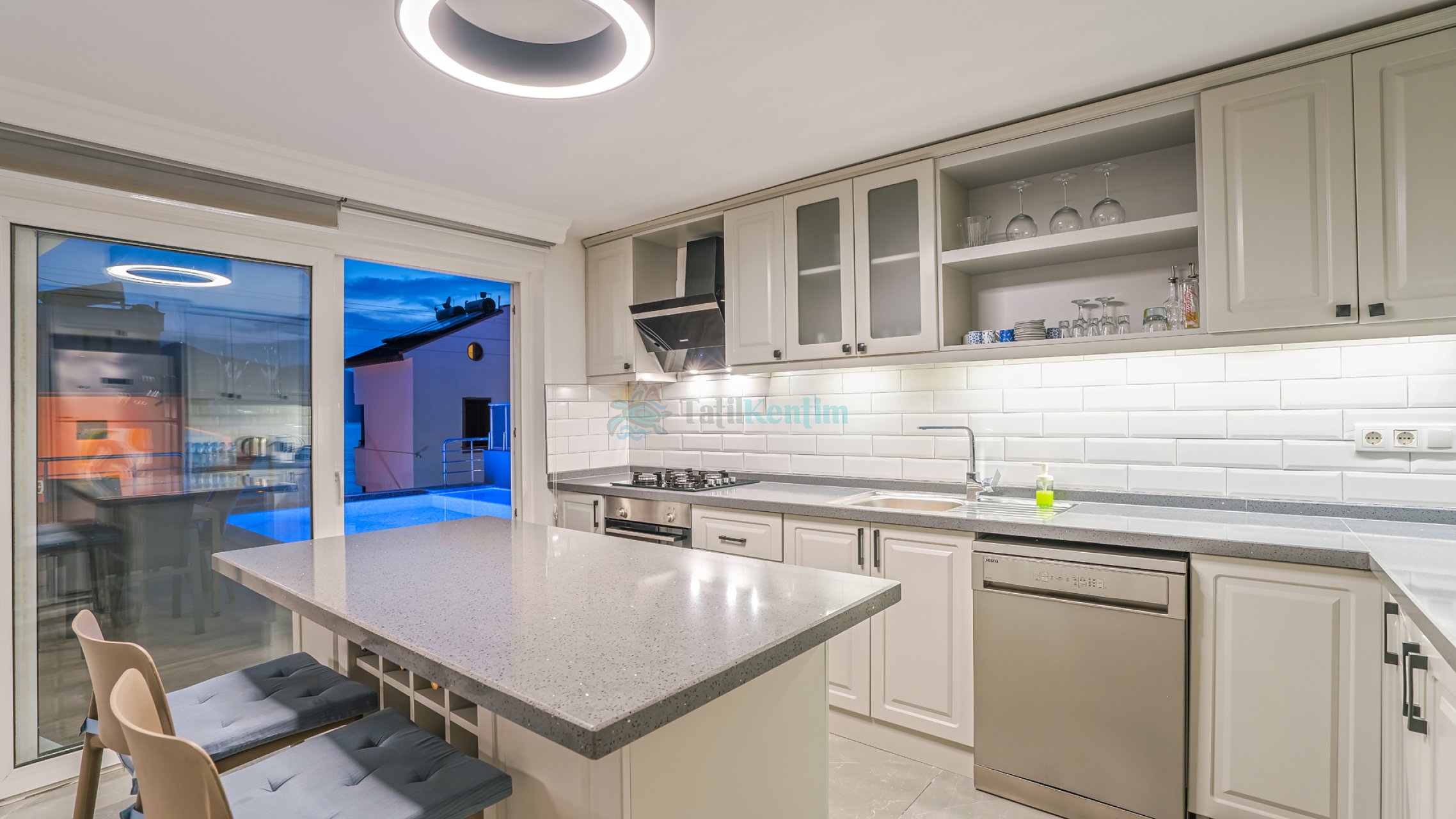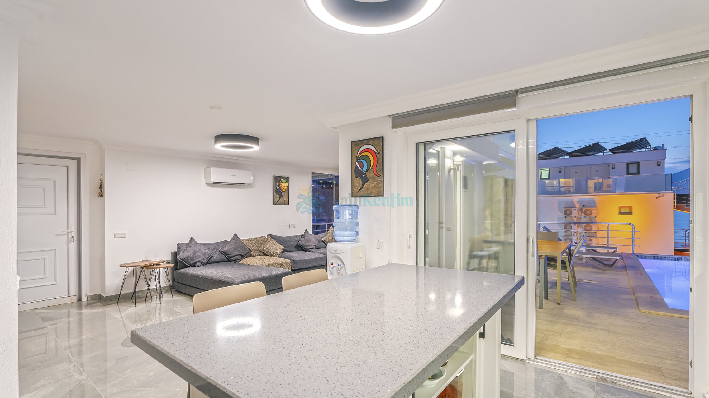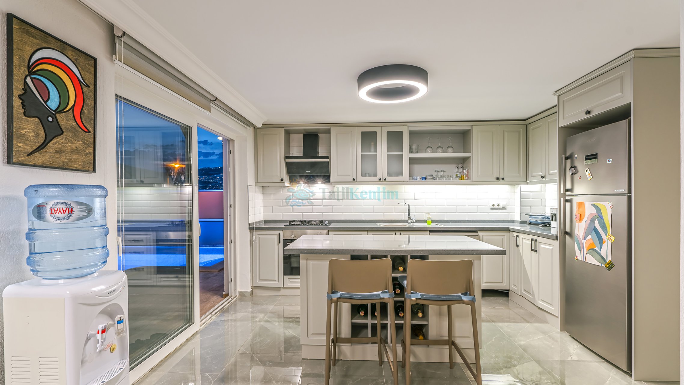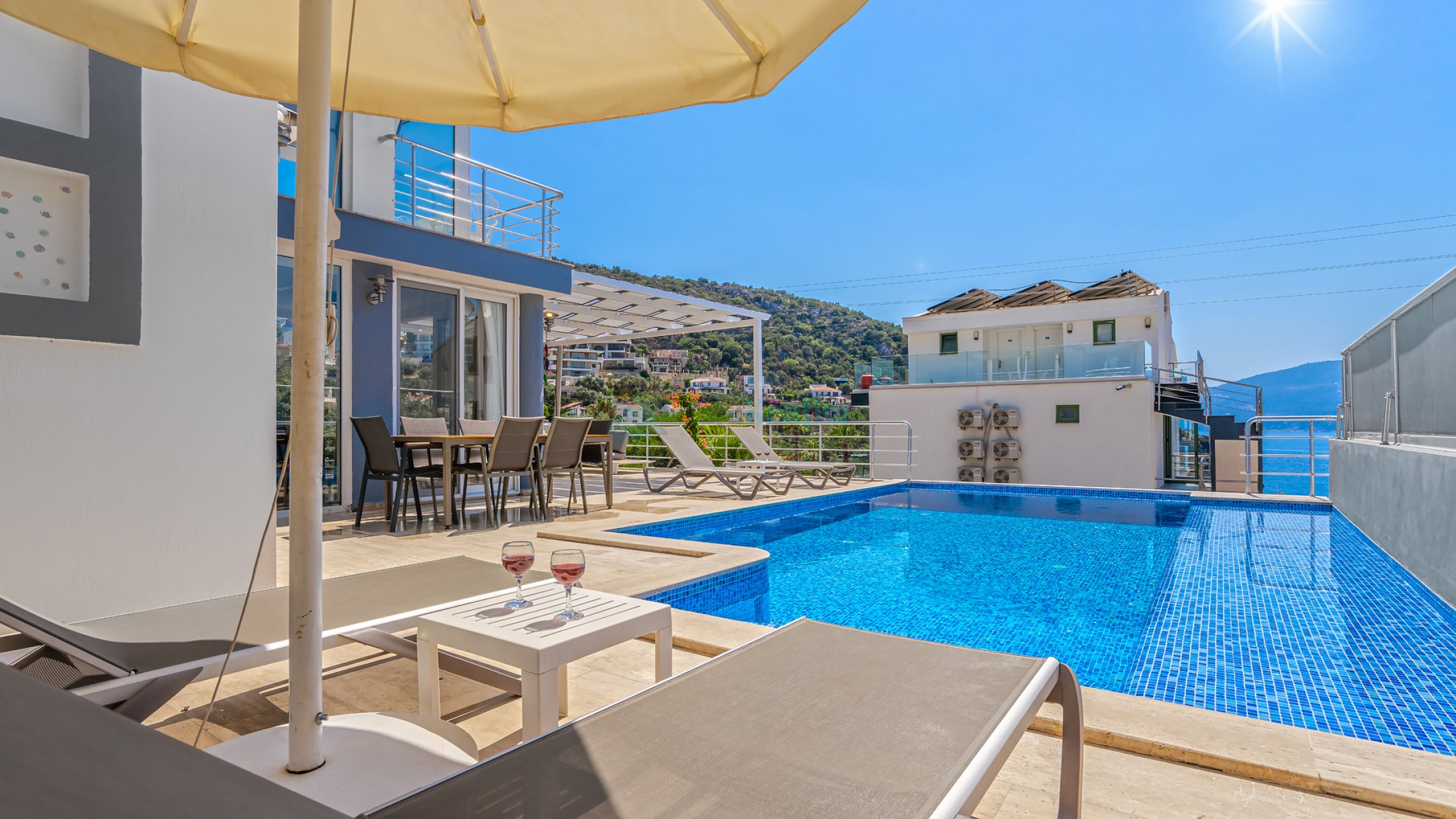 Deniz manzaralı merkeze yakın geniş ailelere uygun lüks korunaklı özel havuzlu tatil villası