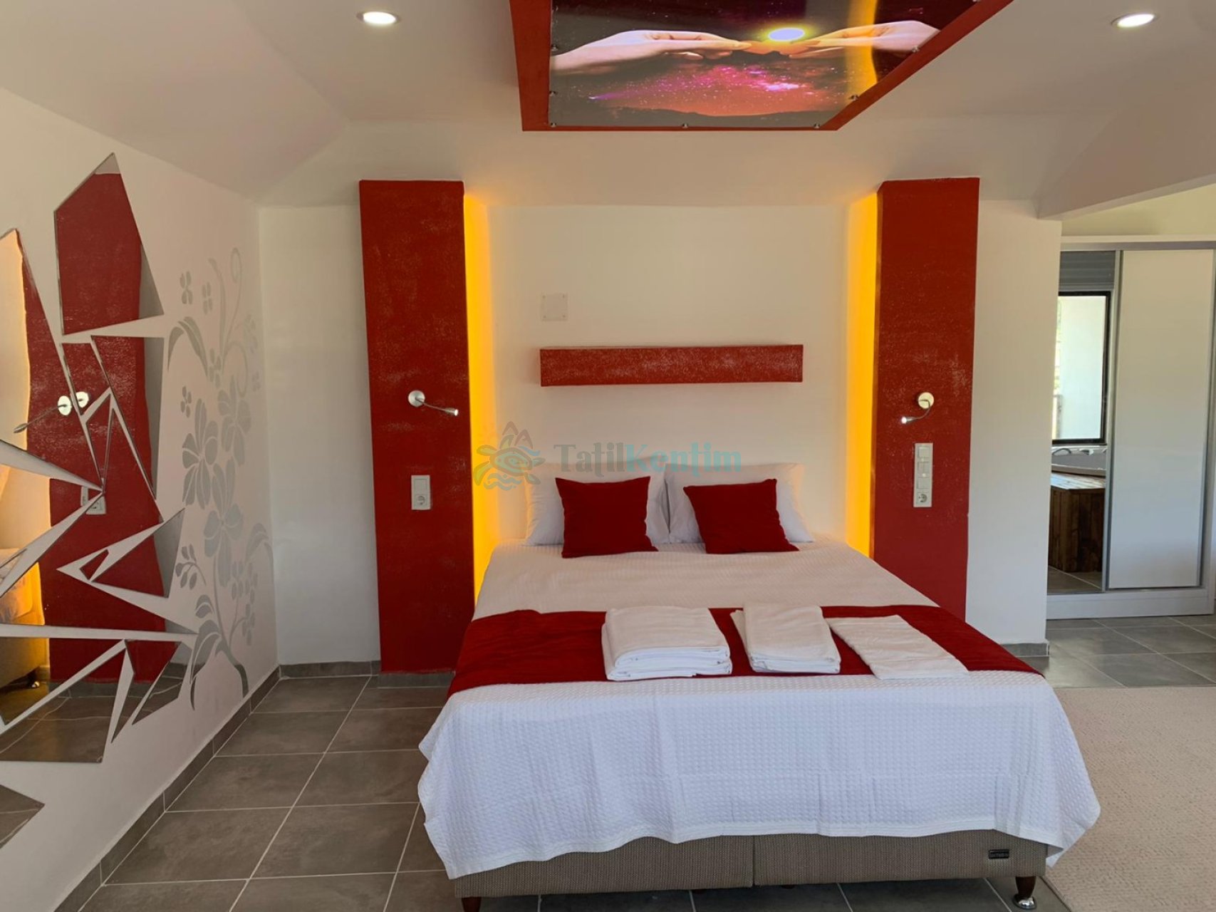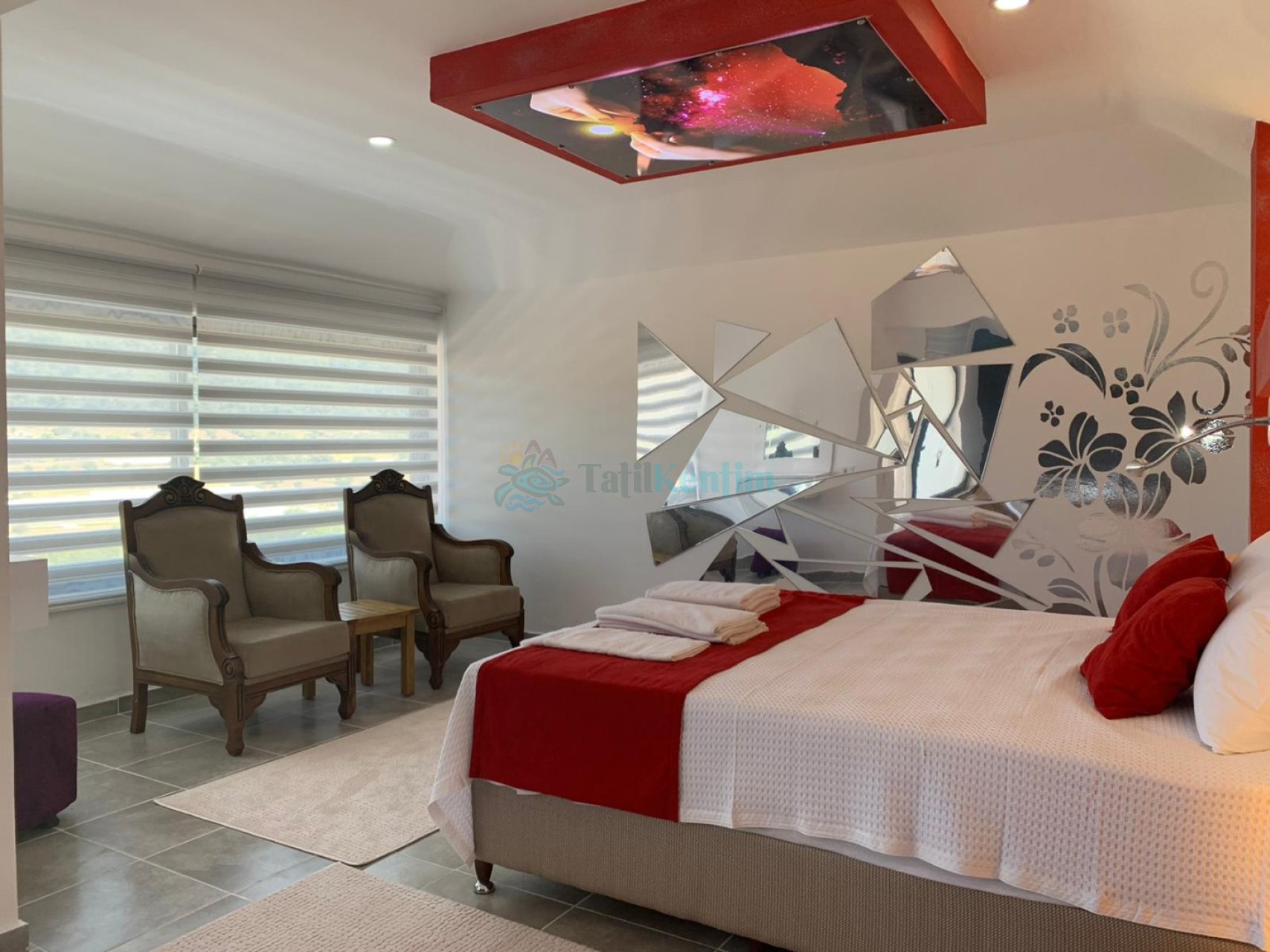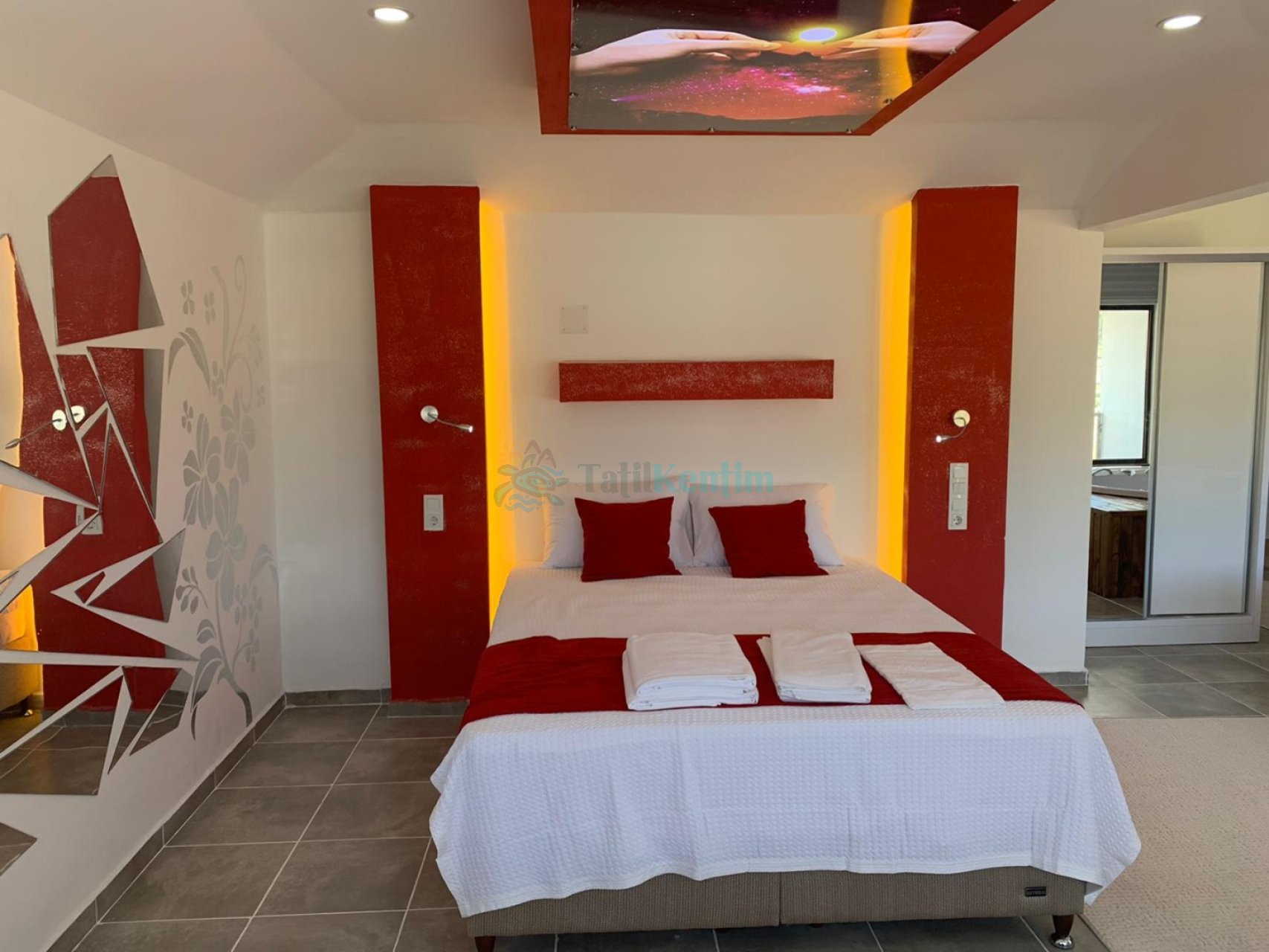 Yatak odası içerisinde, 1 adet çift kişilik yatak, klima, elbise dolabı, komodin, makyaj masası, jakuzi, banyo ve tuvalet yer almaktadır.