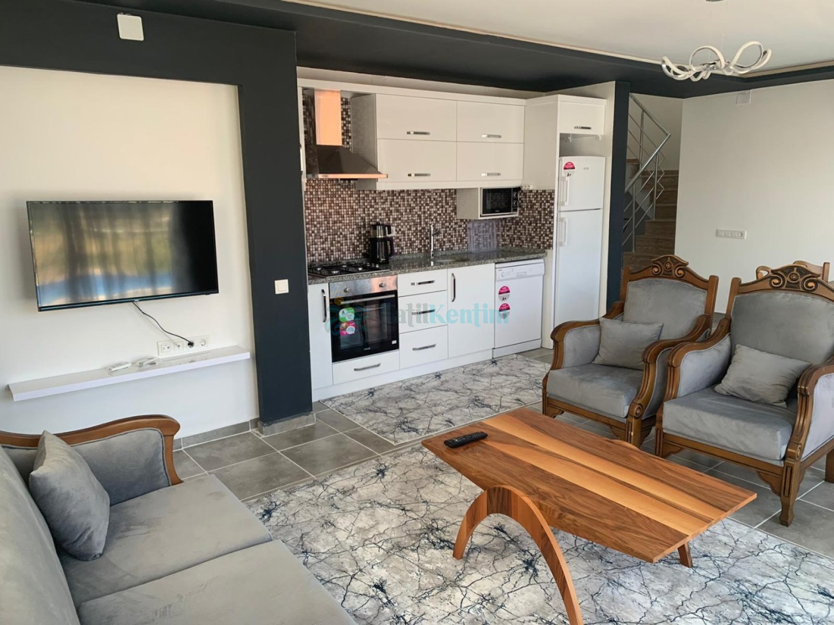 Villamızın salonu içerisinde, koltuk takımı, orta sehpa, TV, TV ünitesi, klima, uydu alıcısı yer almaktadır.