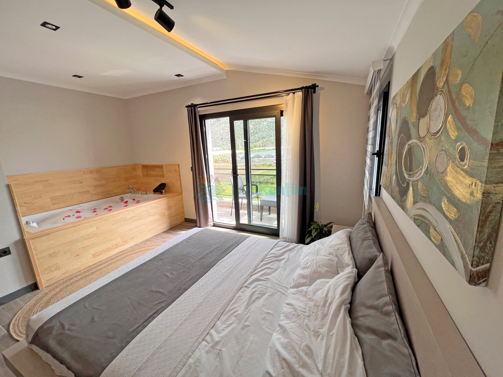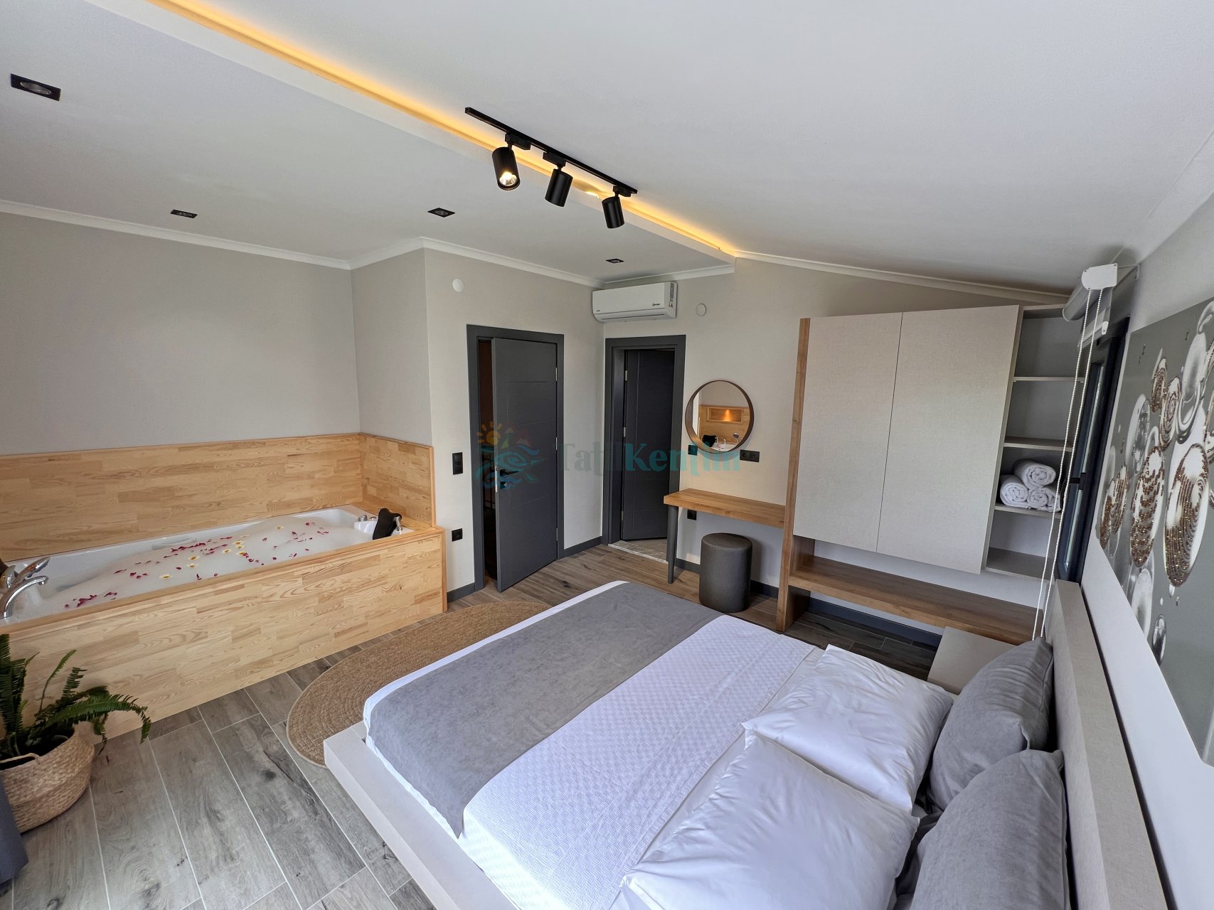2.Yatak Odası: 1 adet çift kişilik yatak, makyaj masası, komodin, klima, elbise dolabı, jakuzi, banyo ve tuvalet bulunmaktadır.