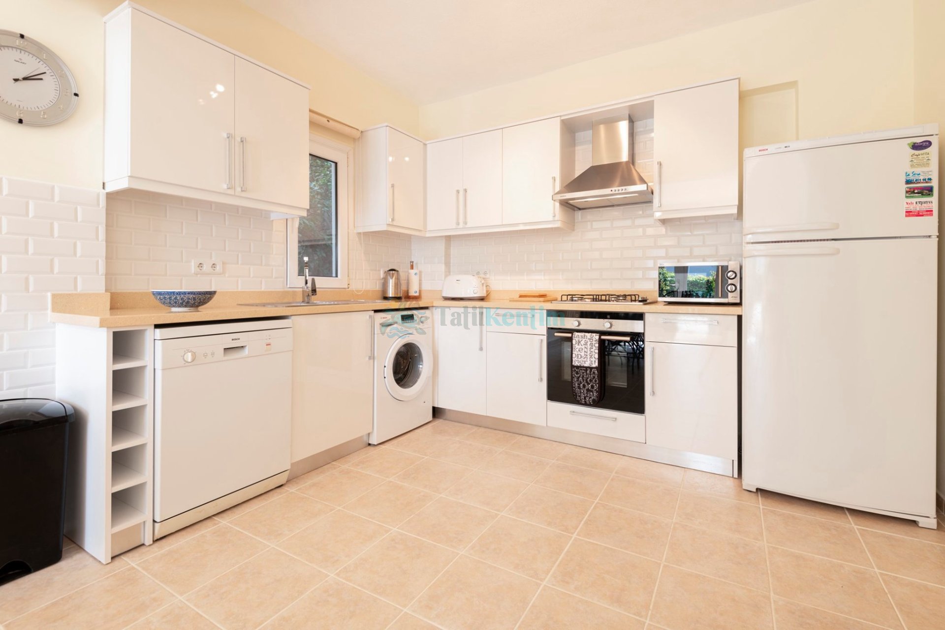 Yazlığımızın Amerikan mutfağı içerisinde, buzdolabı, bulaşık makinası, çamaşır makinası, yemek masası, yemek takımı, ankastre fırın, tost makinası, ankastre ocak, çaydanlık, su ısıtıcısı, tava, tencere takımı ve gerekli olan tüm mutfak gereçleri yer almaktadır.
