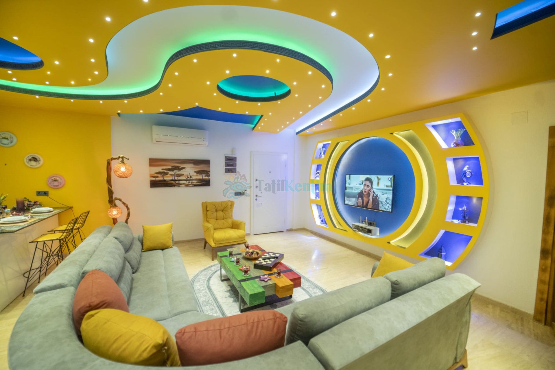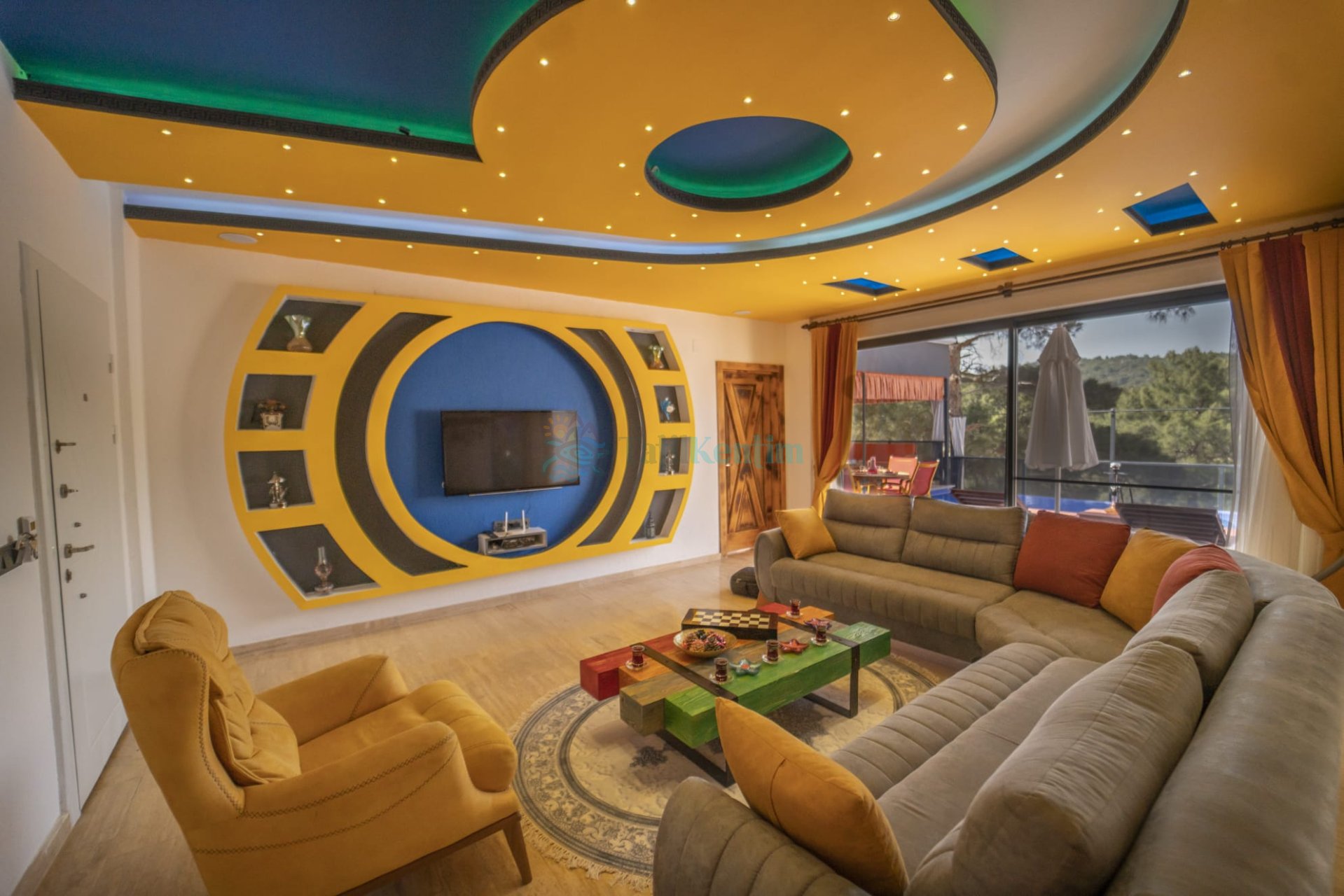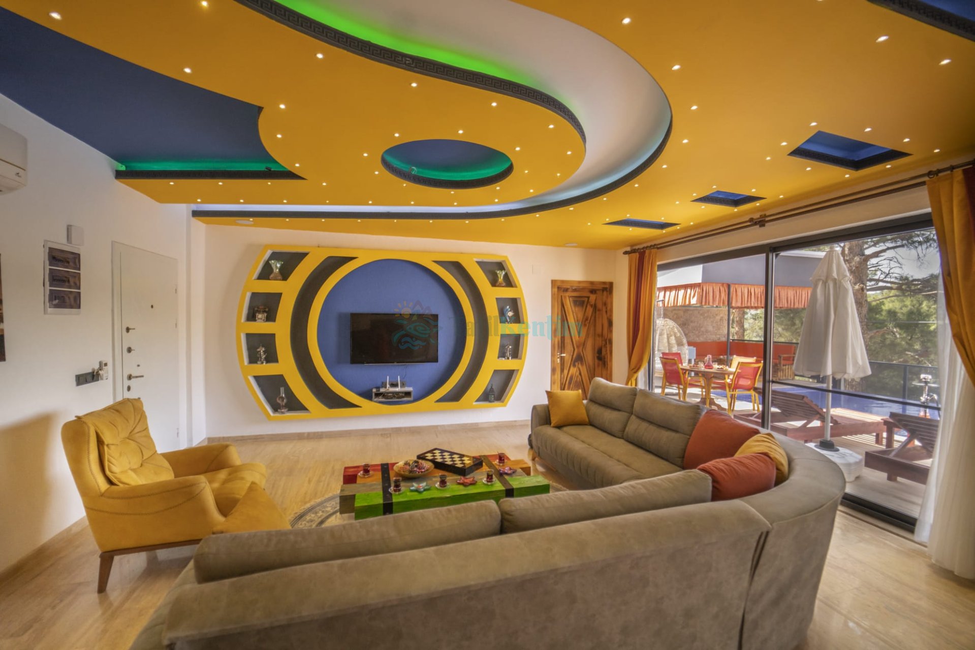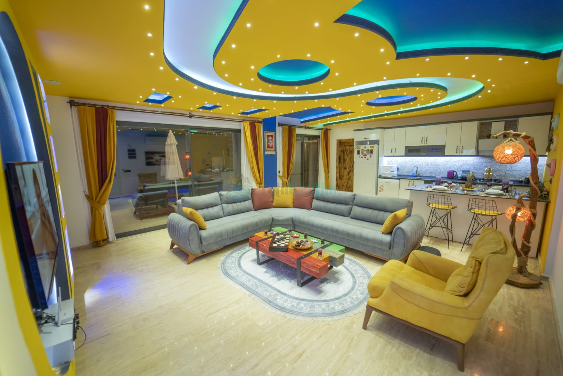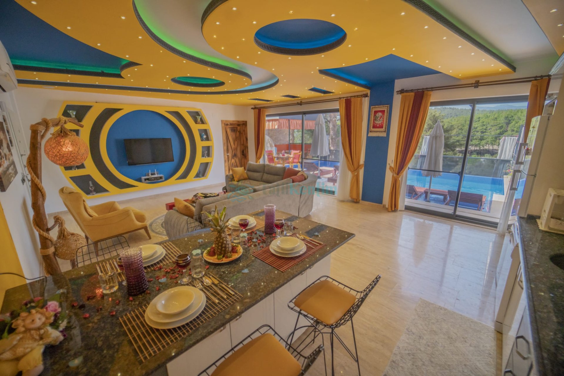 Salon: Konforlu bir oturma grubu, uydu TV (LCD), kablosuz internet ve klima bulunan lüks bir salona sahip olan Villa Fenomen, rahatça oturup dinlenebileceğiniz ve özel anlarınızı paylaşabileceğiniz bir alan sunmaktadır.