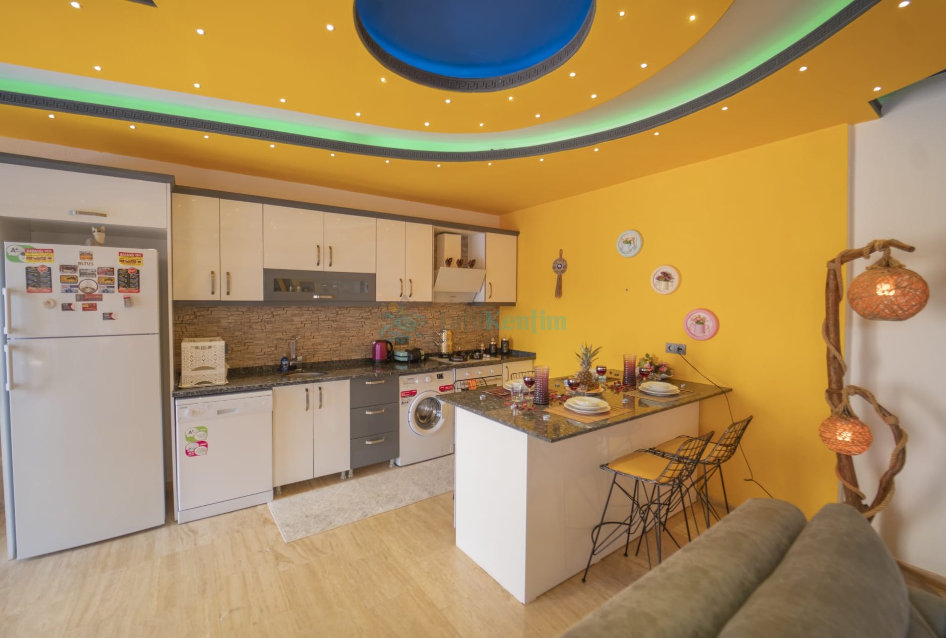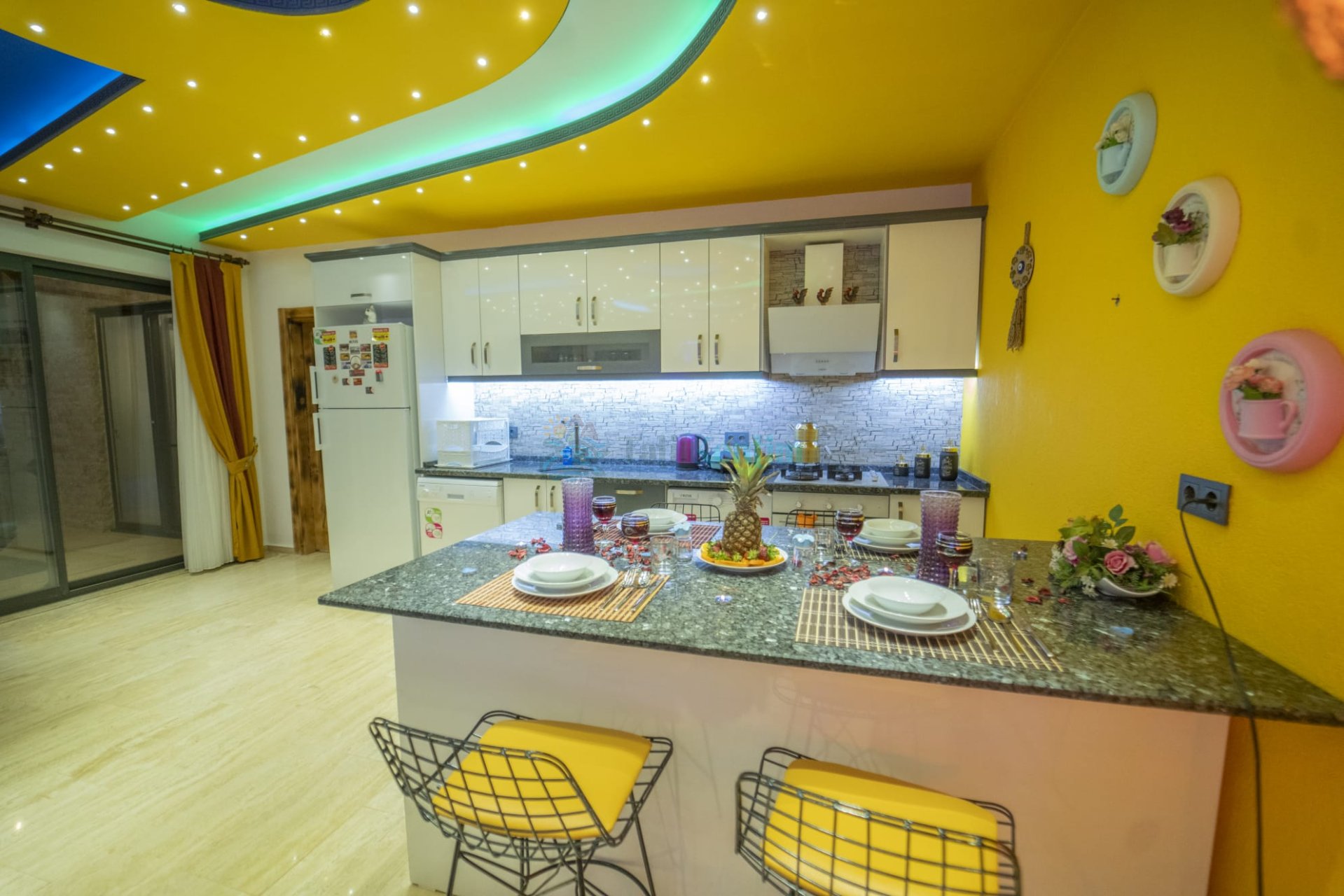 Mutfak: Villa Fenomen, modern bir Amerikan mutfağa sahiptir. Bu modern mutfak, buzdolabı, bulaşık makinesi, çamaşır makinesi, fırın, 4’lü ankastre ocak, elektrikli su ısıtıcısı, yemek pişirme takımları, mutfak ekipmanları ve yemek takımı gibi tüm ihtiyaçları karşılayacak araç gereçleri içerir. Konuklar kendilerine özel yemekler hazırlayabilirler.