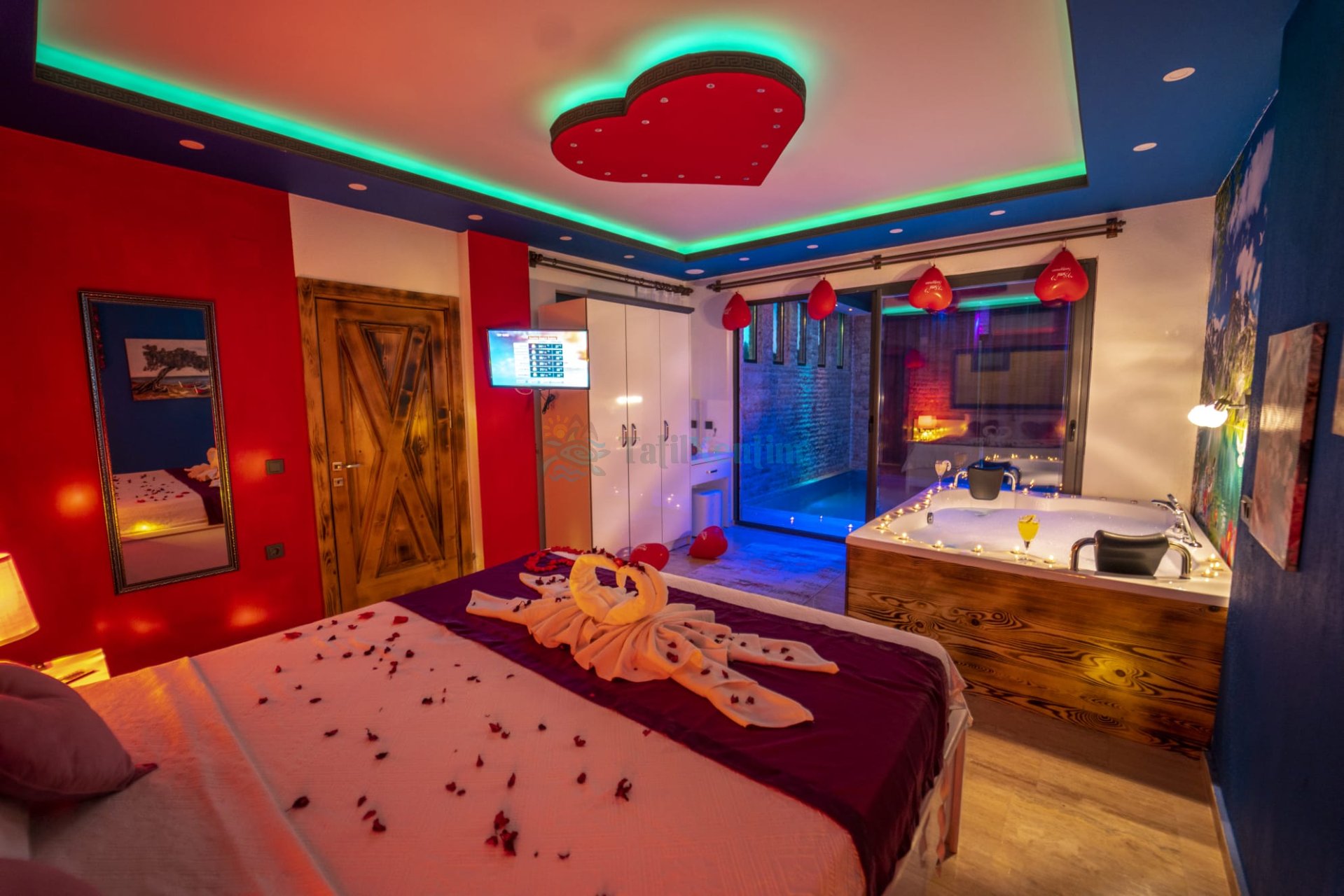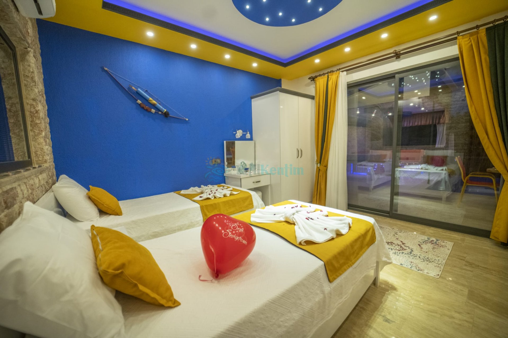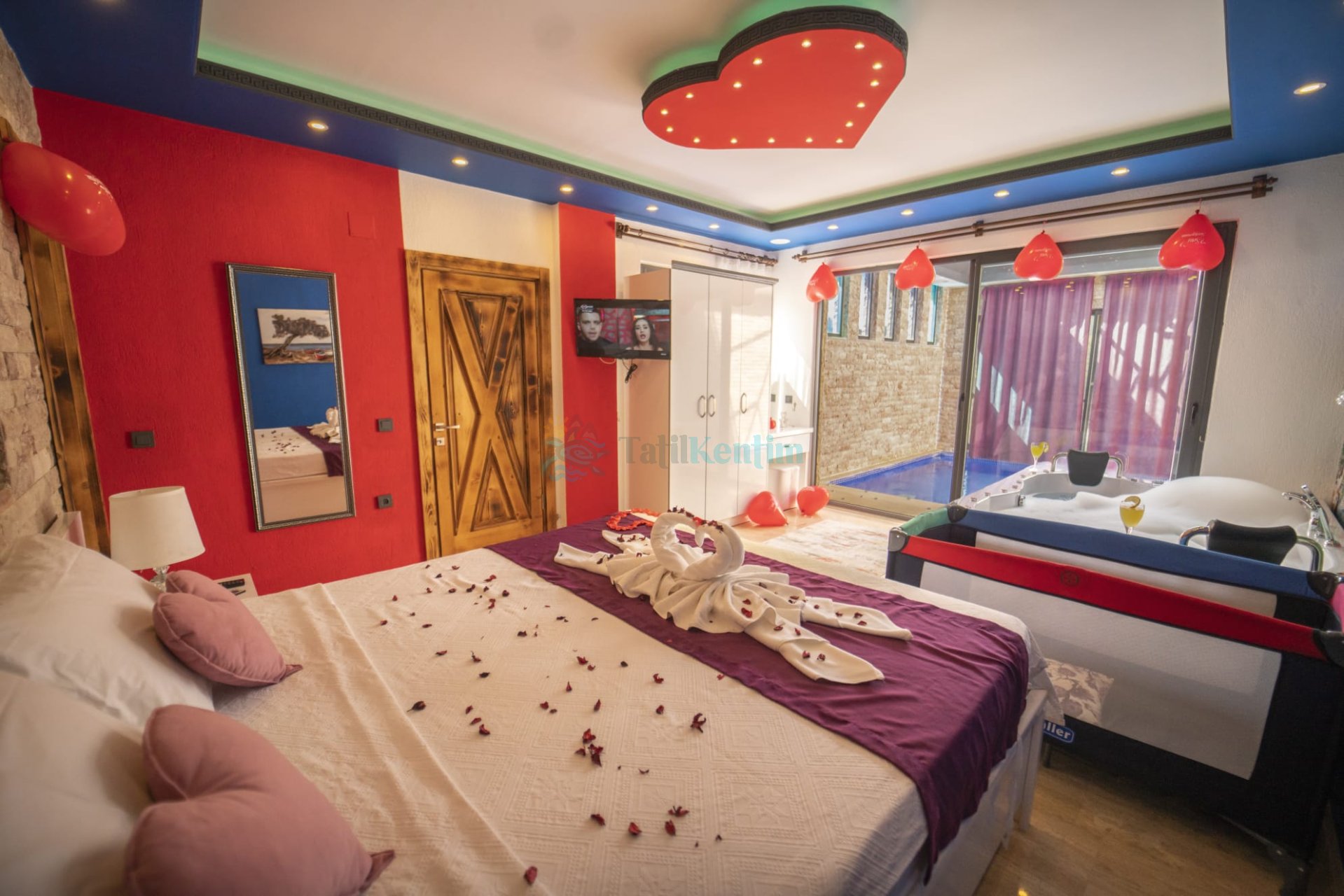1. Yatak Odası : Odada çift kişilik yatak, komodin, klima, jakuzi, banyo ve tuvalet bulunmaktadır.
