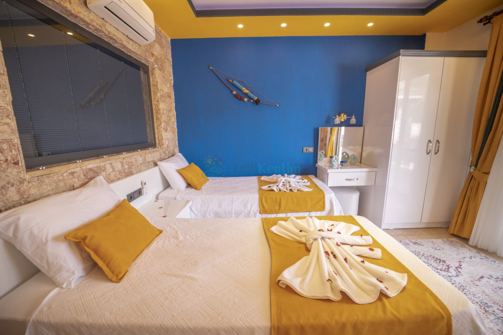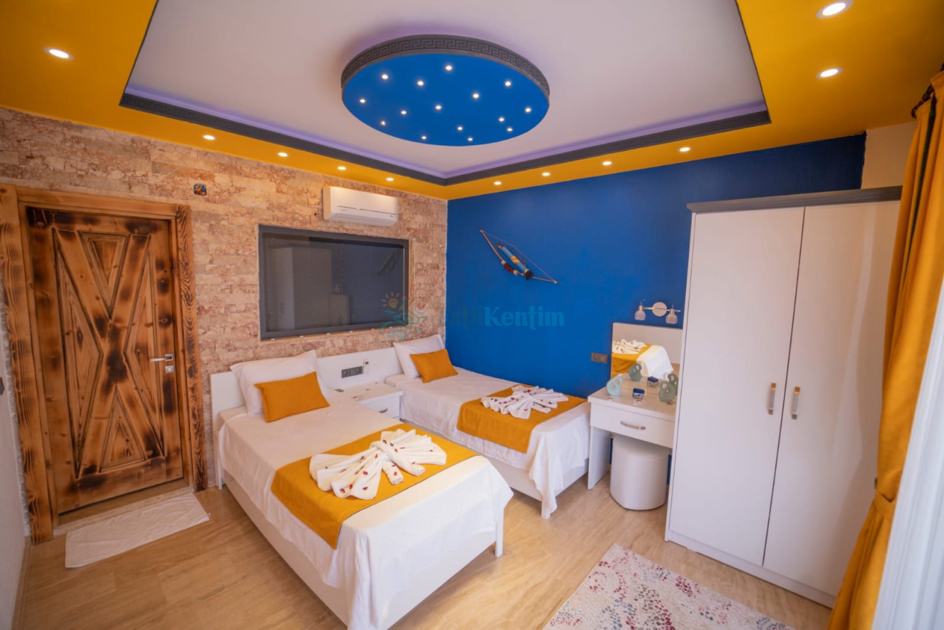2. Yatak Odası : Odada iki adet tek kişilik yatak, komodin, klima, banyo ve tuvalet bulunmaktadır.
