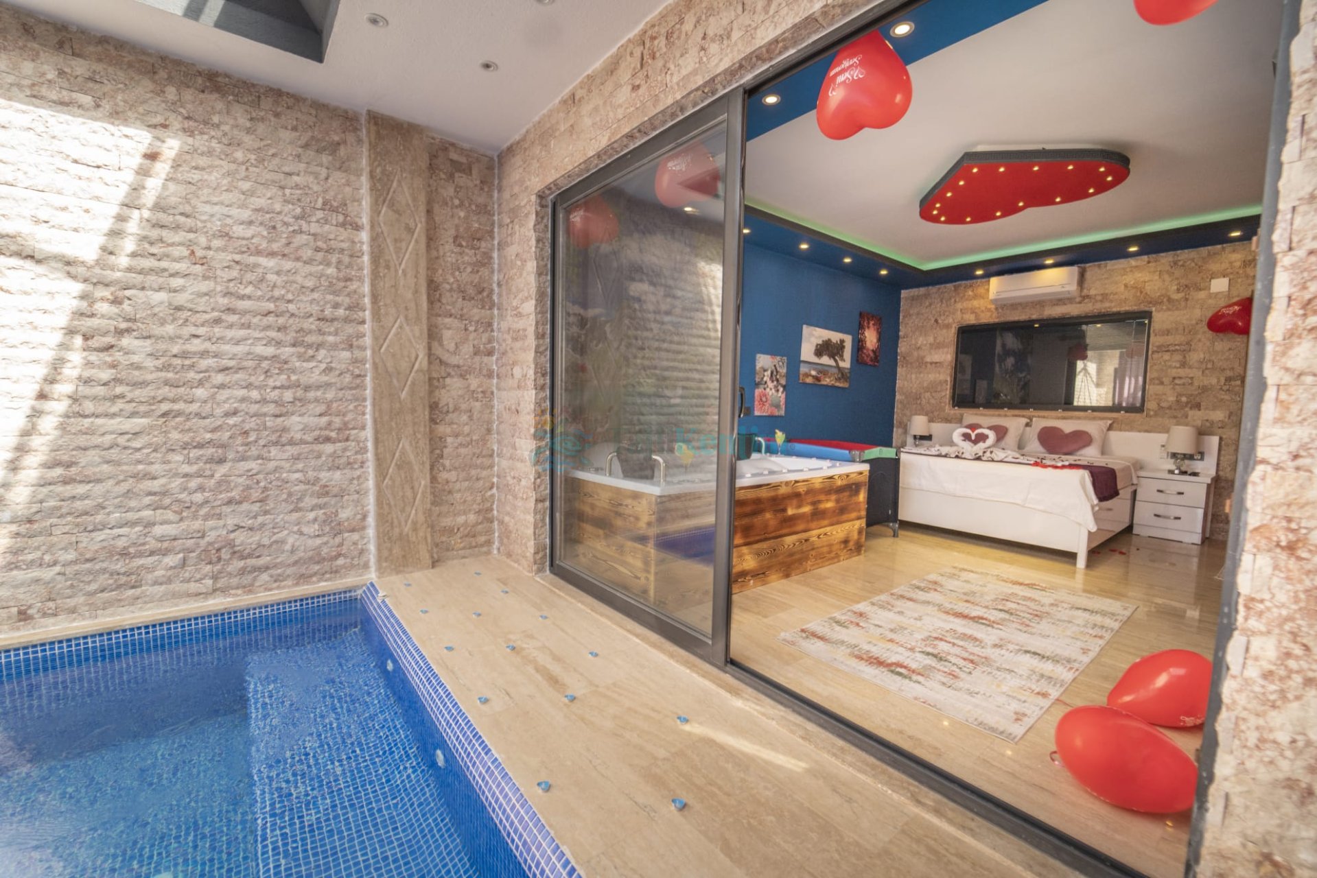 Villa Fenomen, Kalkan Akbel mevkiinde merkeze yakın konumuyla dikkat çeken, 2 yatak odası ve 4 kişi konaklama kapasitesiyle konforlu bir tatil deneyimi sunuyor. Muhafazakar aileler ve balayı çiftleri için özel olarak tasarlanmış Villa Fenomen, doğanın içinde huzurlu bir atmosfer vadediyor. Villa Fenomen havuzu korunaklı bir alanda yer almakla birlikte ayrıca kapalı bir havuza da sahiptir. Bu sayede misafirlerine gizlilik ve özel bir tatil deneyimi sunar. Villa Fenomen konforu zirveye taşıyan detaylardan biri de jakuzili yatak odası, burada kendinizi şımartabilir tatilin keyfini doyasıya çıkarabilirsiniz.