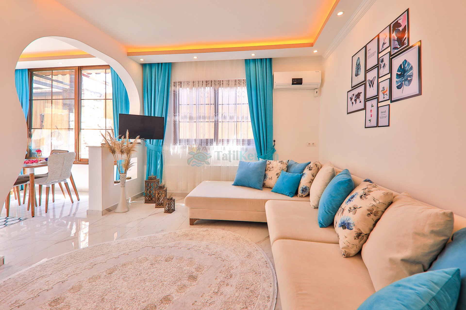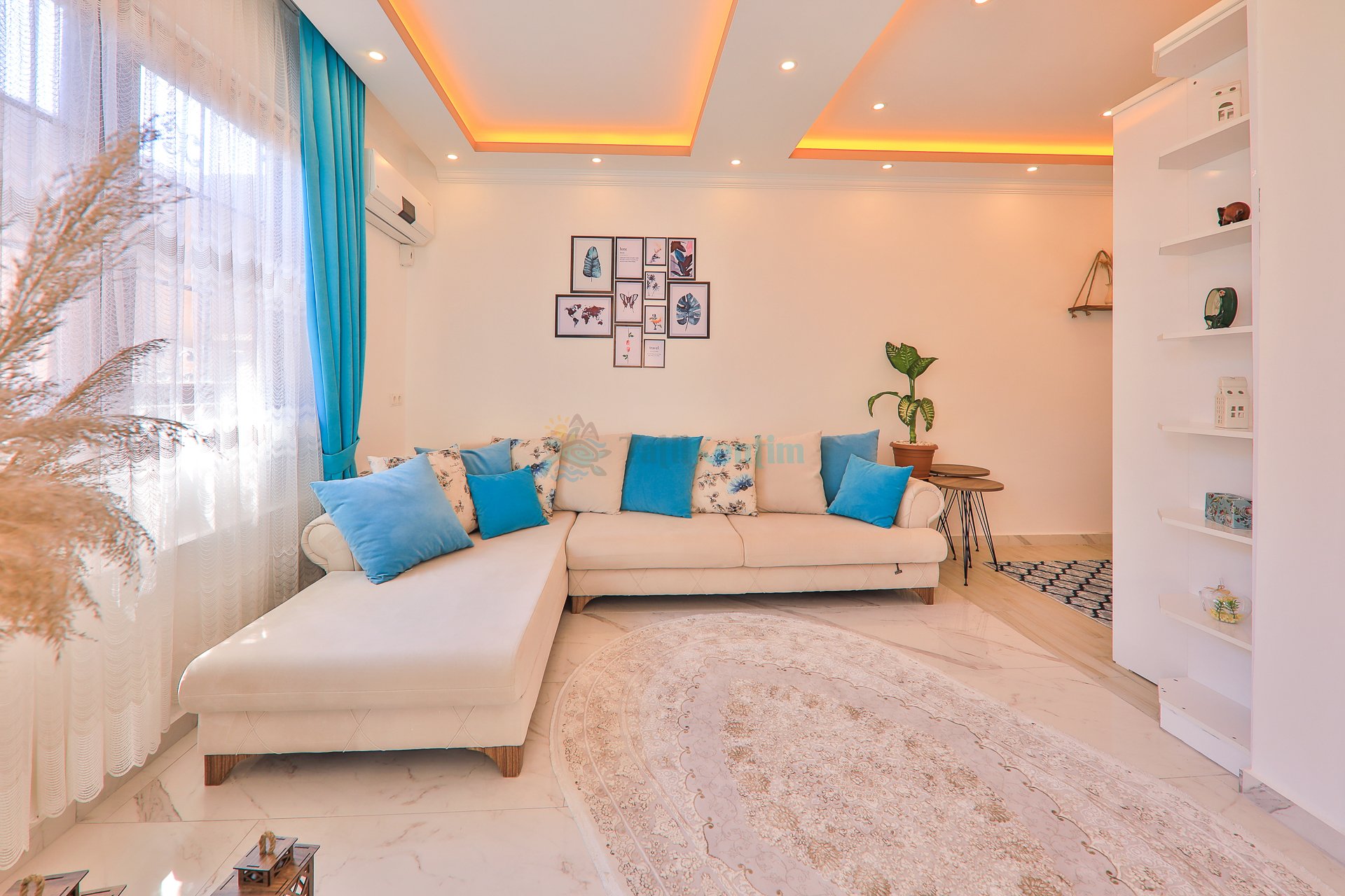 Villamızın salonu içerisinde, koltuk takımı, orta sehpa, TV, TV ünitesi, klima, uydu alıcısı yer almaktadır.